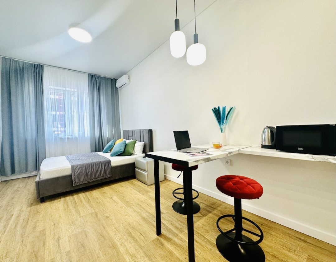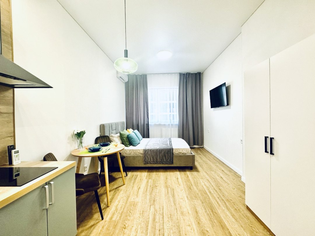 Остановились здесь с молодым человеком. Апартаменты нам понравились. предоставляемая техника и мебель в хорошем состоянии. На кухне есть всё необходимое для приготовления еды. Рядом магазины, кафе, остановки. Рекомендуем!