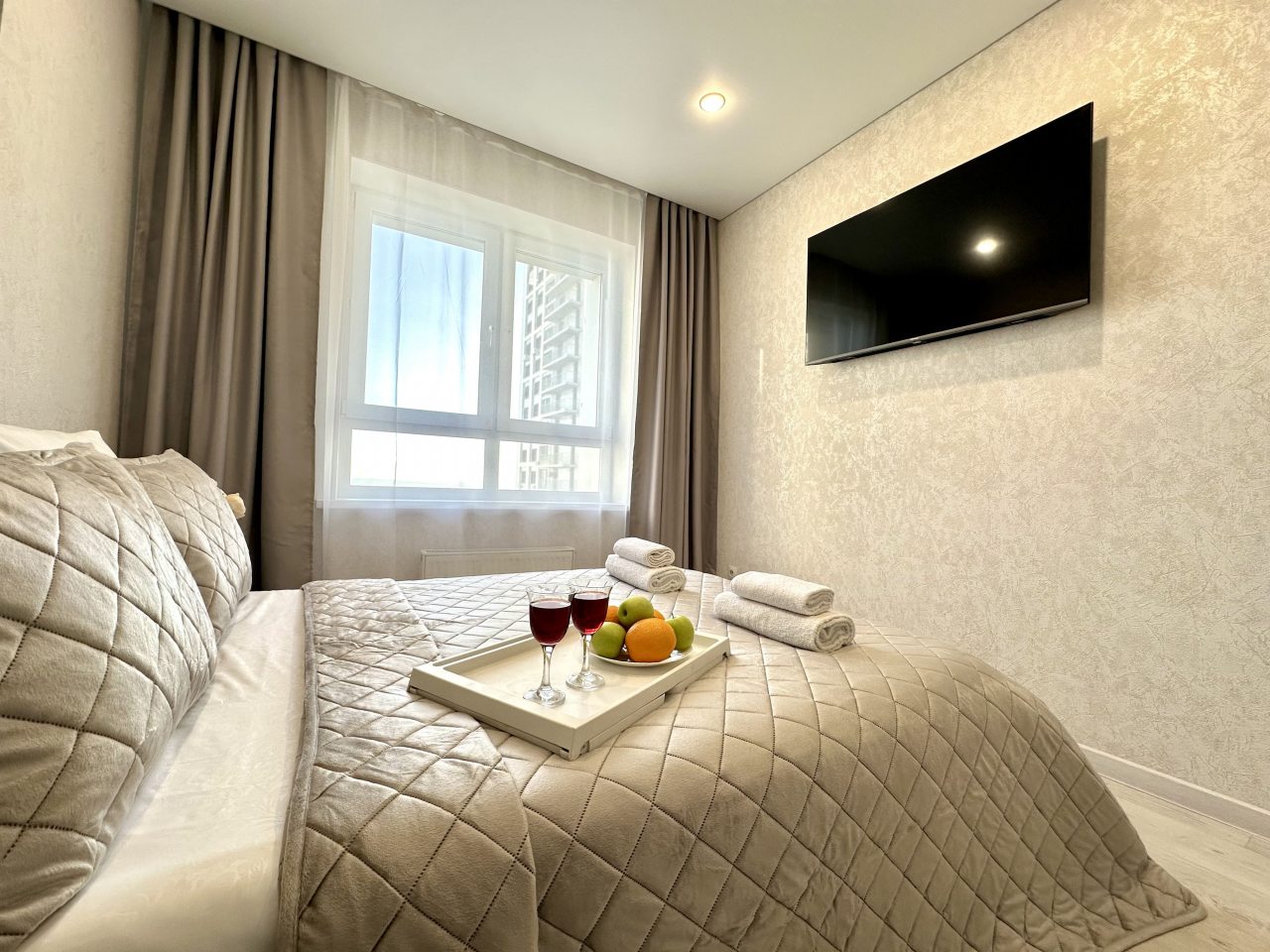 Для гостей предлагается разместиться в уютных апартаментах оборудованных двуспальной кроватью с чистым комплектом постельного белья, прикроватной мебелью, телевизором, затемненными шторами, шкафом, кондиционером, вешалками для верхней одежды и точкой высокоскоростного интернета. Ванная комната укомплектована современной сантехникой, стиральной машиной, феном и гигиеническими средствами.