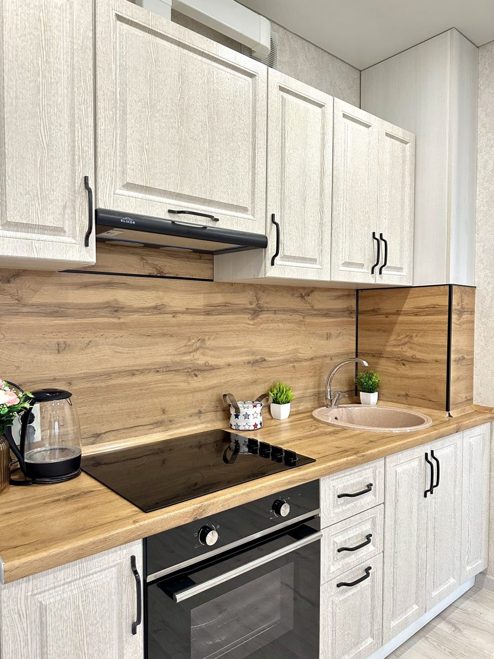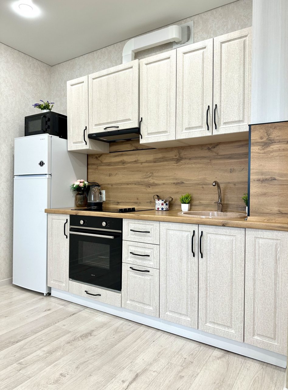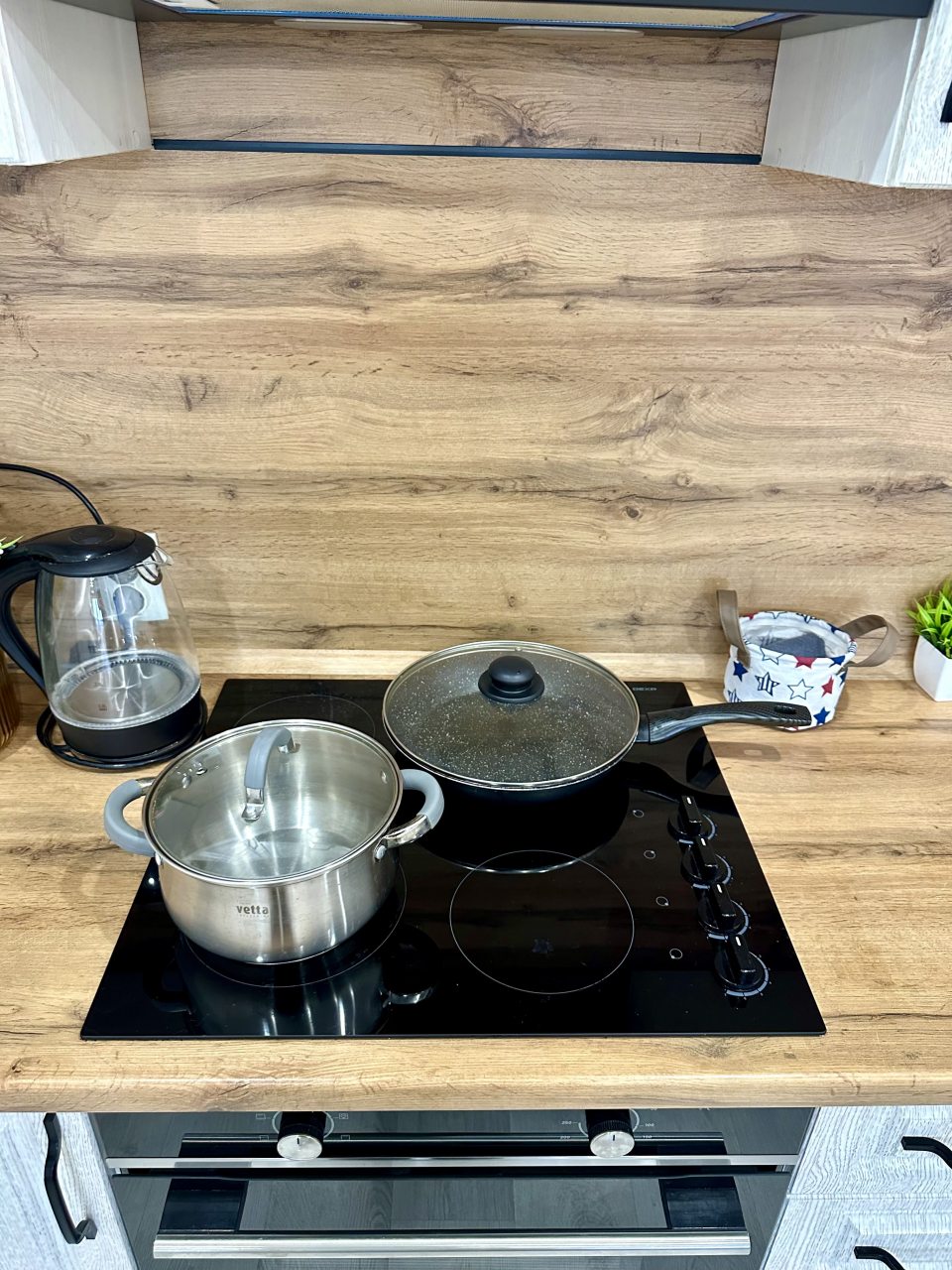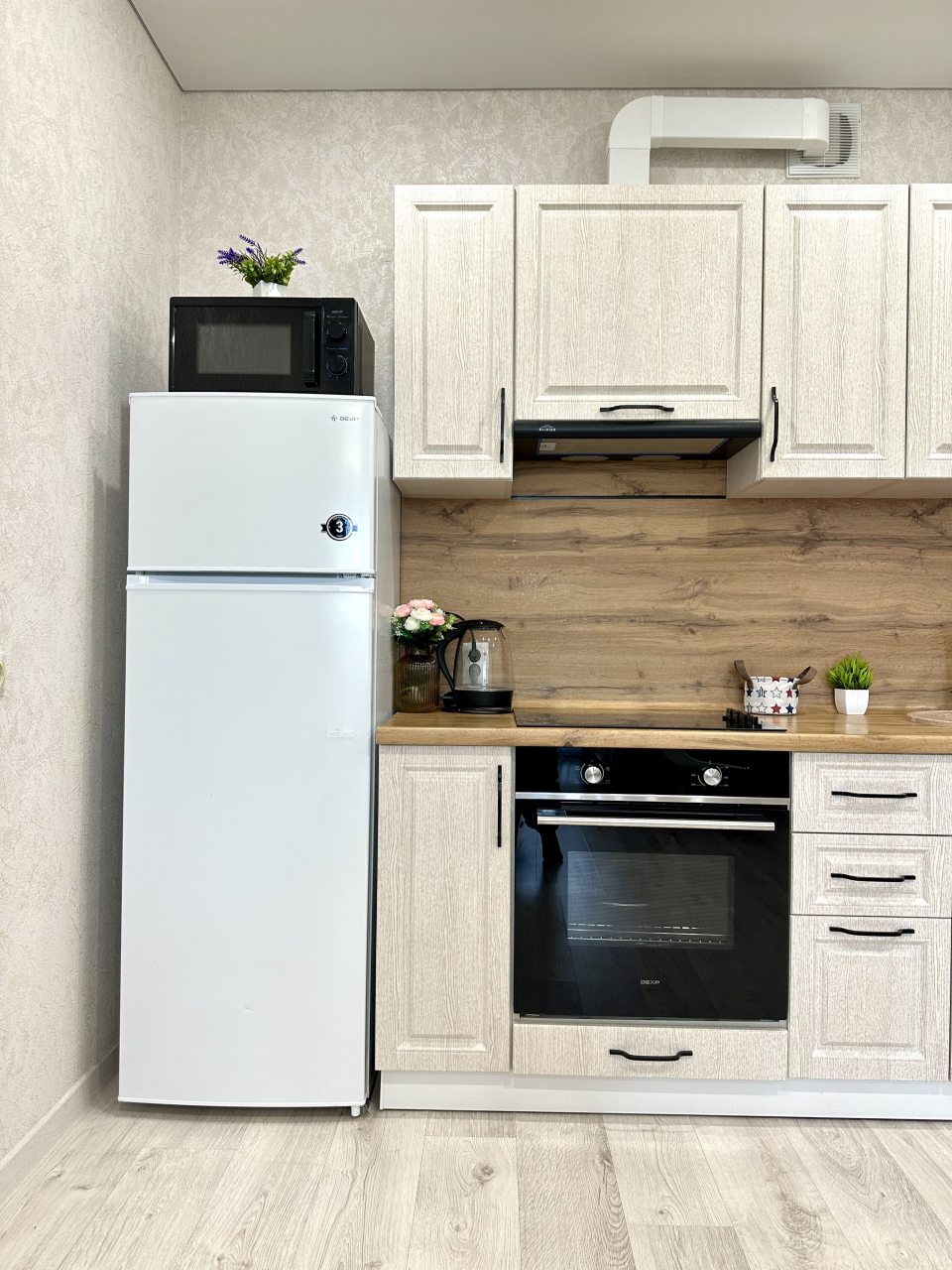 Просторная кухня имеет всю необходимую мебель и бытовую технику, например: варочную панель, холодильник, микроволновую печь, вытяжку и др. Пообедать можно в одном из множества кафе неподалеку.