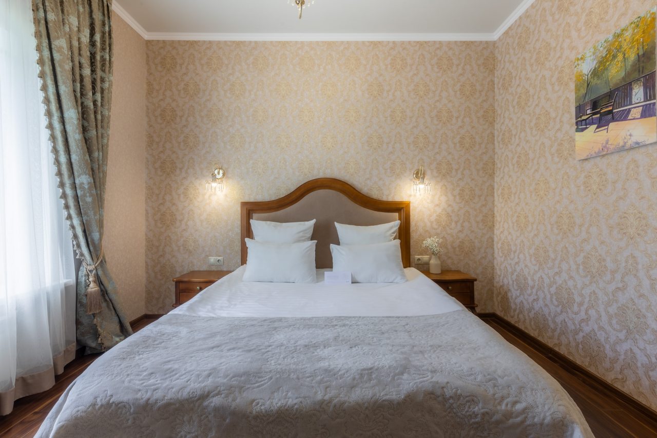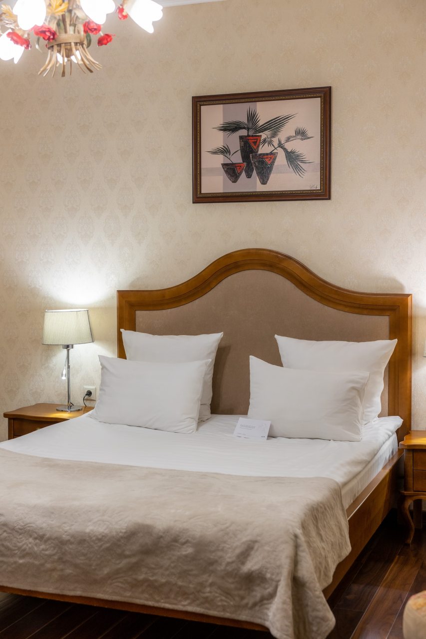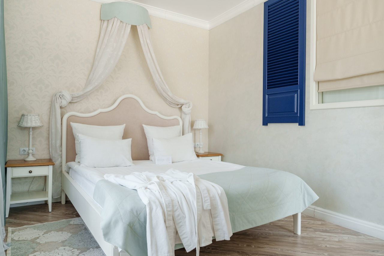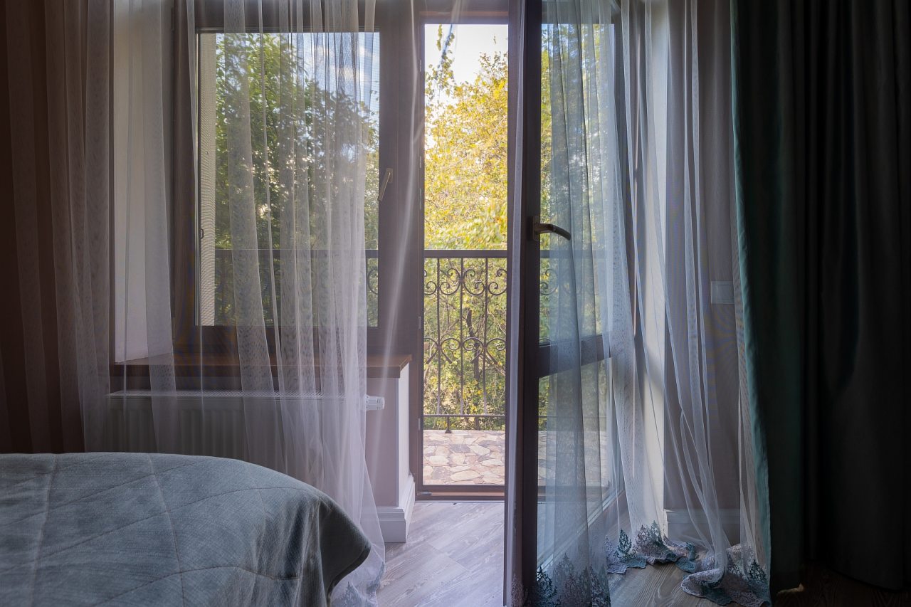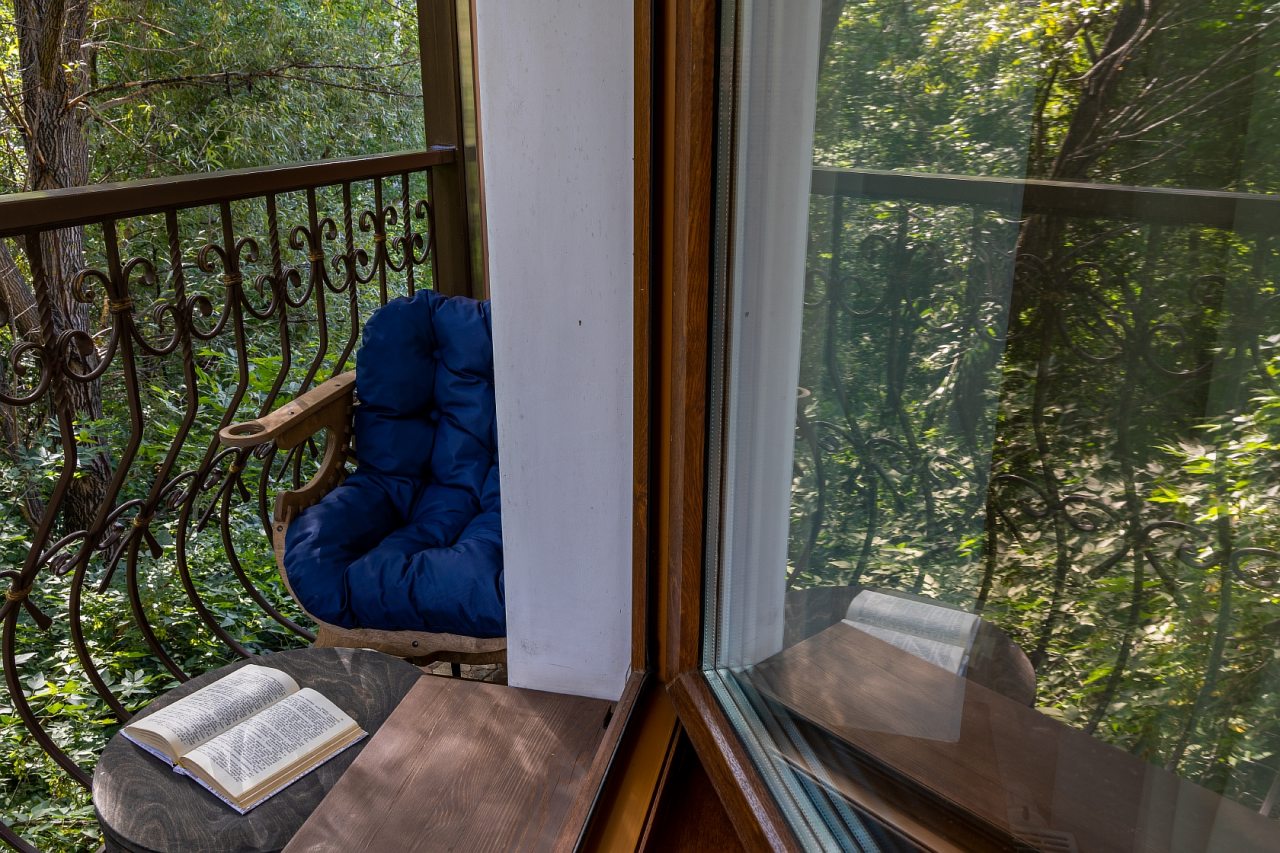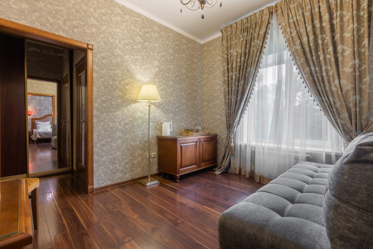 В малом отеле 12 просторных дизайнерских номеров с видом на реку и лес. К услугам: мебель ручной работы из массива дерева, качественные косметические принадлежности, белые махровые полотенца, фен, кондиционер, встроенный шкаф для багажа, утюг с гладильной доской, сейф. Также есть уютные спальные места с ортопедическим матрасом, шкаф для бережного хранения личных вещей, спутниковое телевидение, письменный стол, мягкое кресло, ванная комната.