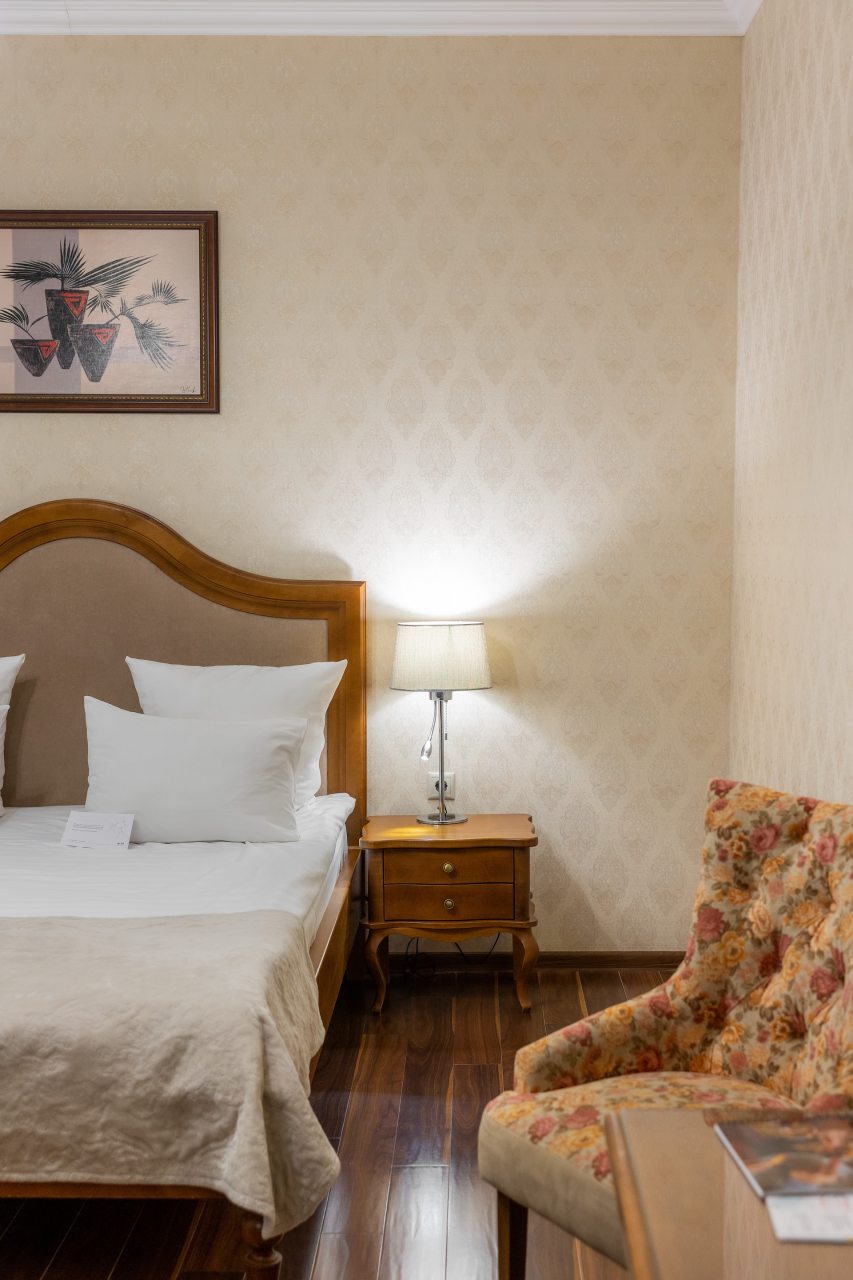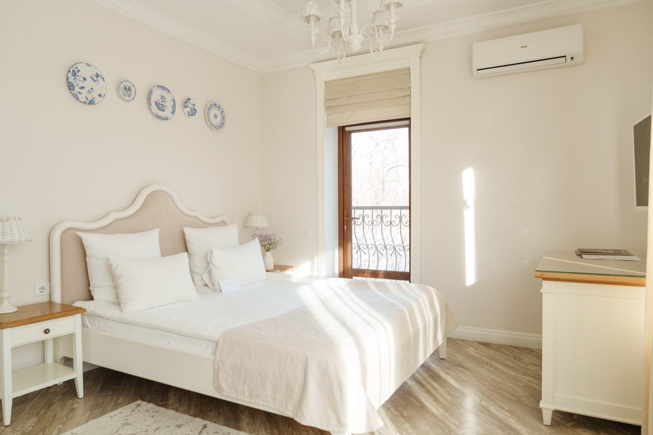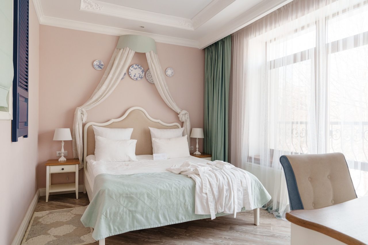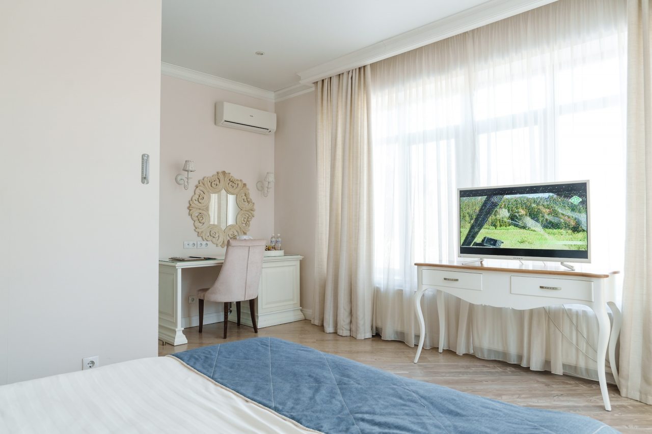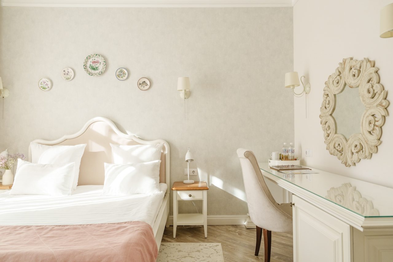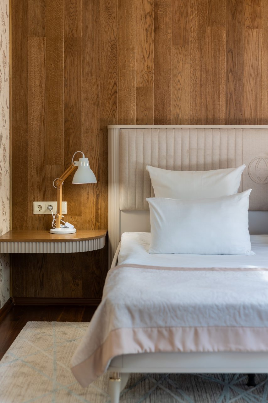 В малом отеле 12 просторных дизайнерских номеров с видом на реку и лес. К услугам: мебель ручной работы из массива дерева, качественные косметические принадлежности, белые махровые полотенца, фен, кондиционер, встроенный шкаф для багажа, утюг с гладильной доской, сейф. Также есть уютные спальные места с ортопедическим матрасом, шкаф для бережного хранения личных вещей, спутниковое телевидение, письменный стол, мягкое кресло, ванная комната.