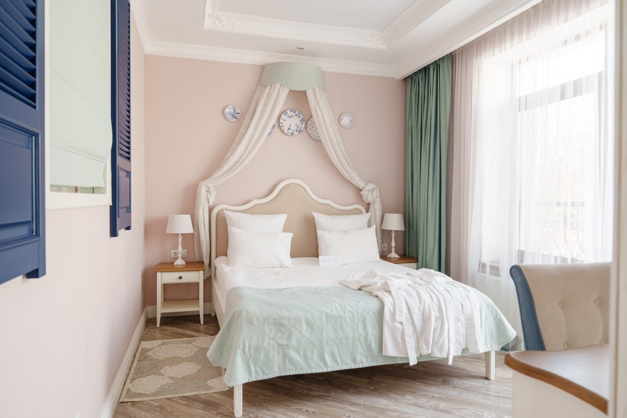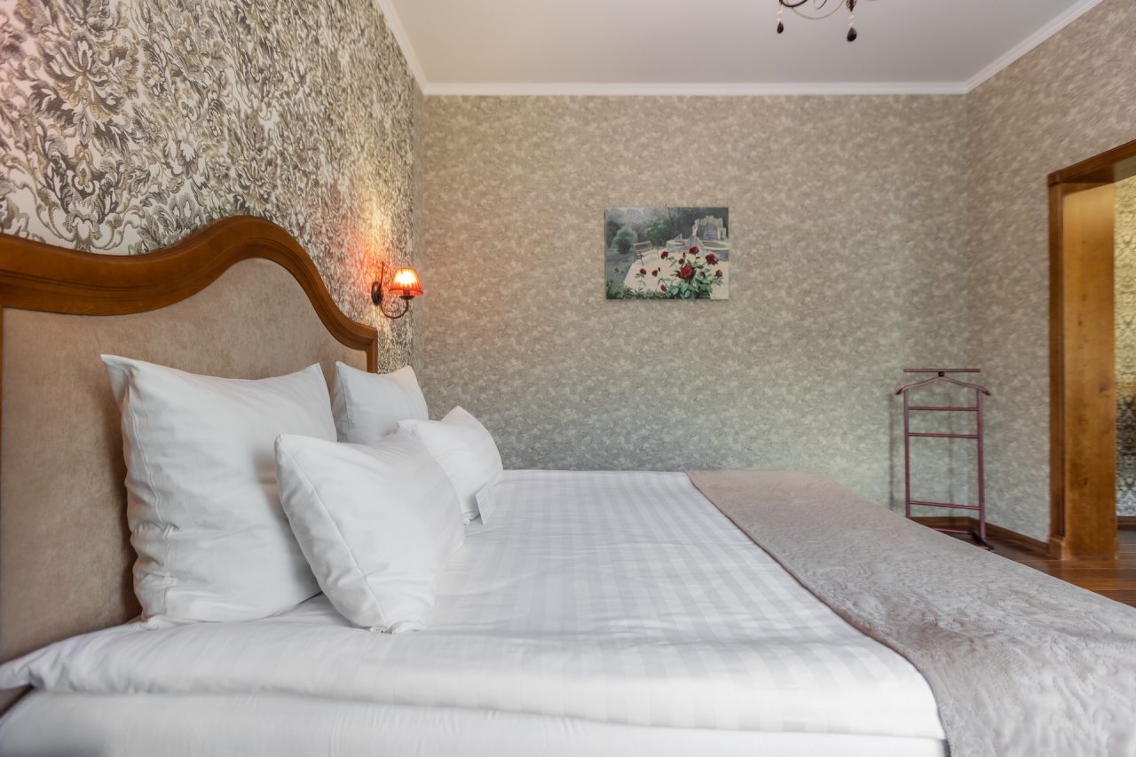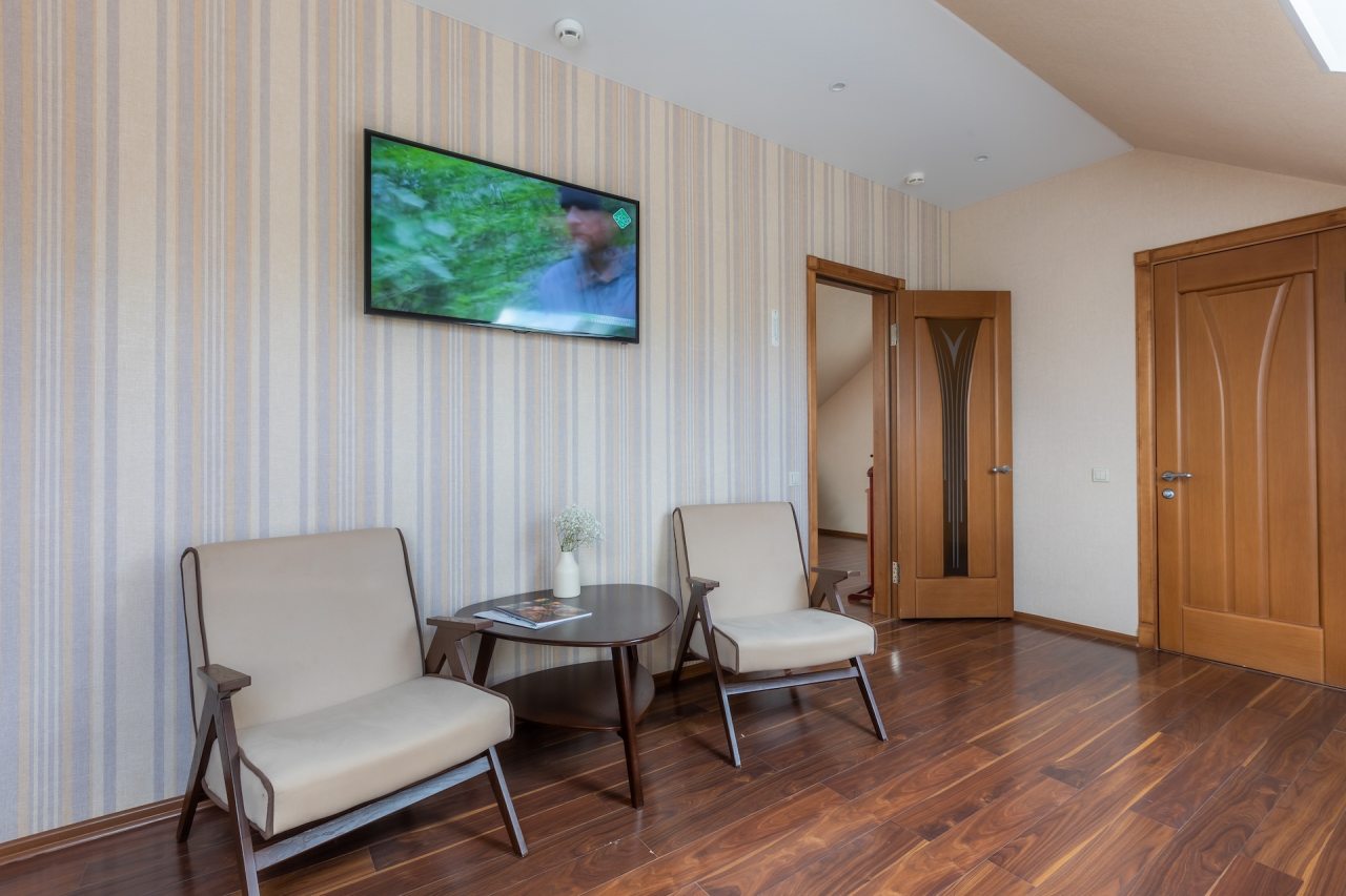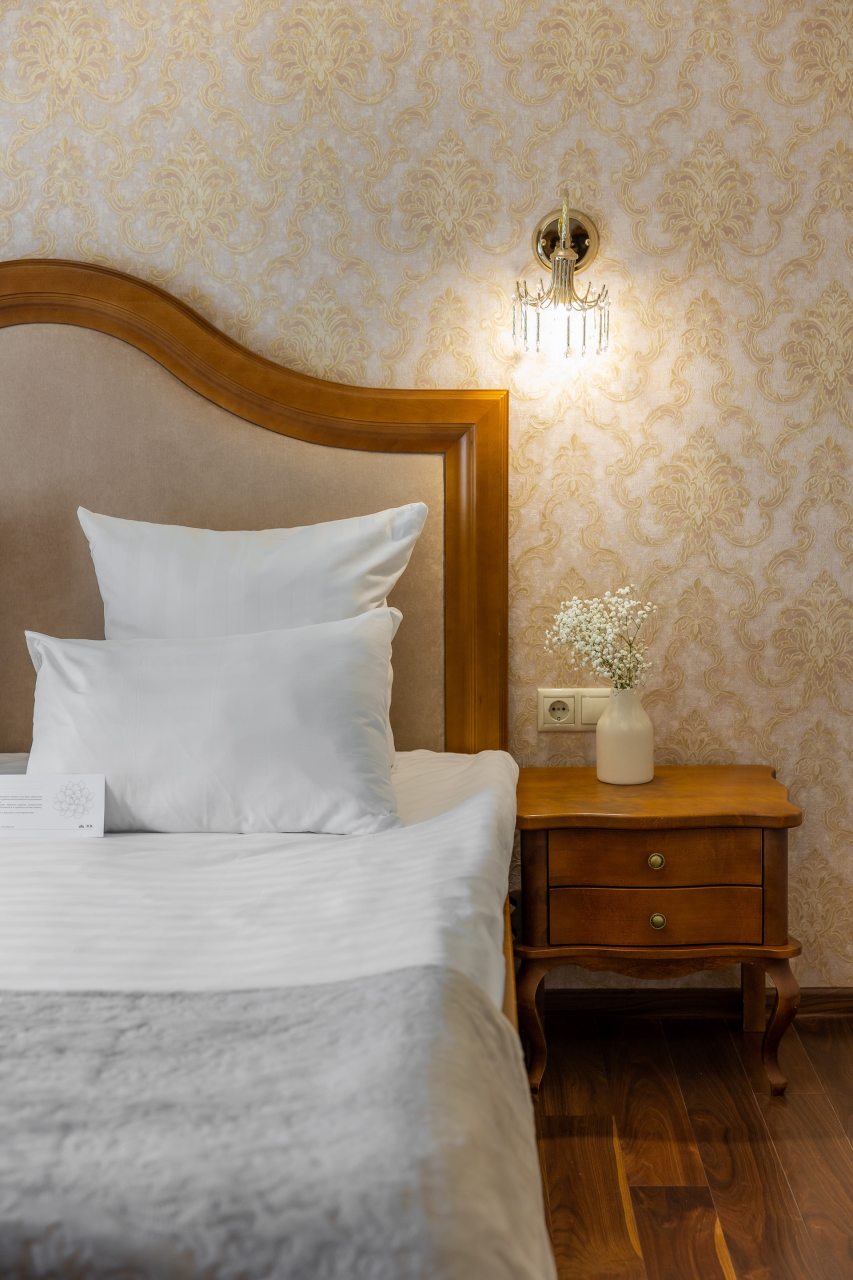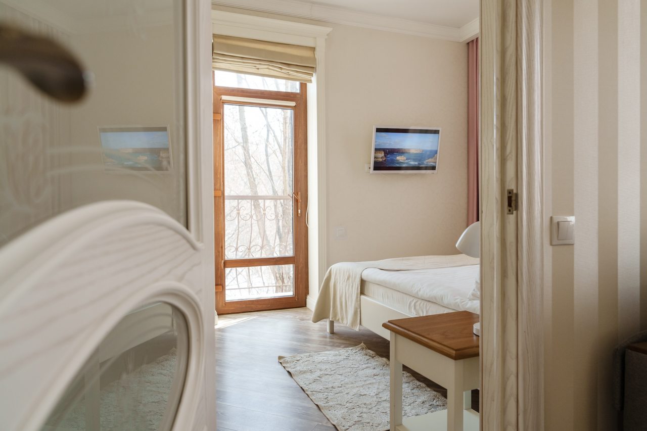 В малом отеле 12 просторных дизайнерских номеров с видом на реку и лес. К услугам: мебель ручной работы из массива дерева, качественные косметические принадлежности, белые махровые полотенца, фен, кондиционер, встроенный шкаф для багажа, утюг с гладильной доской, сейф. Также есть уютные спальные места с ортопедическим матрасом, шкаф для бережного хранения личных вещей, спутниковое телевидение, письменный стол, мягкое кресло, ванная комната.