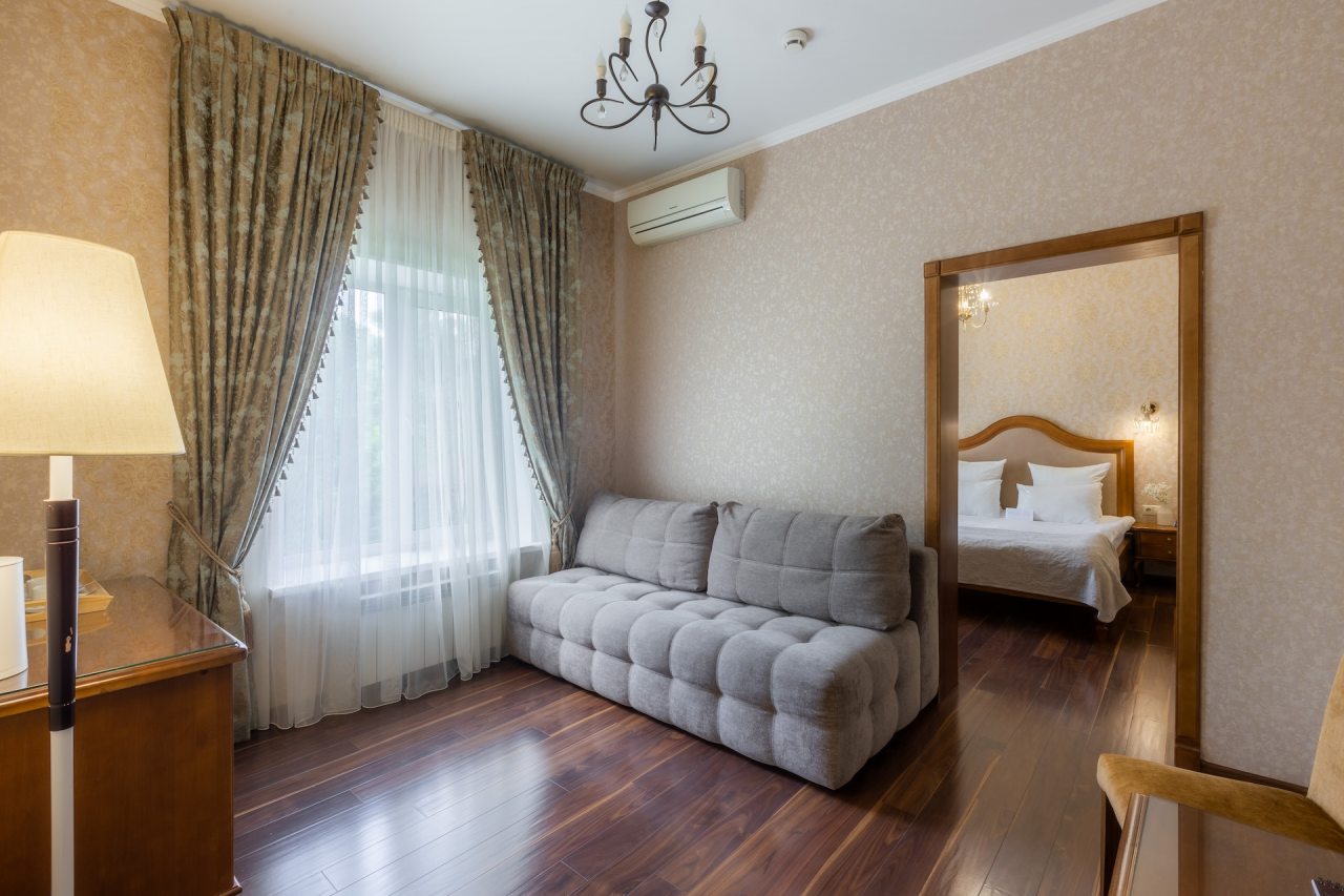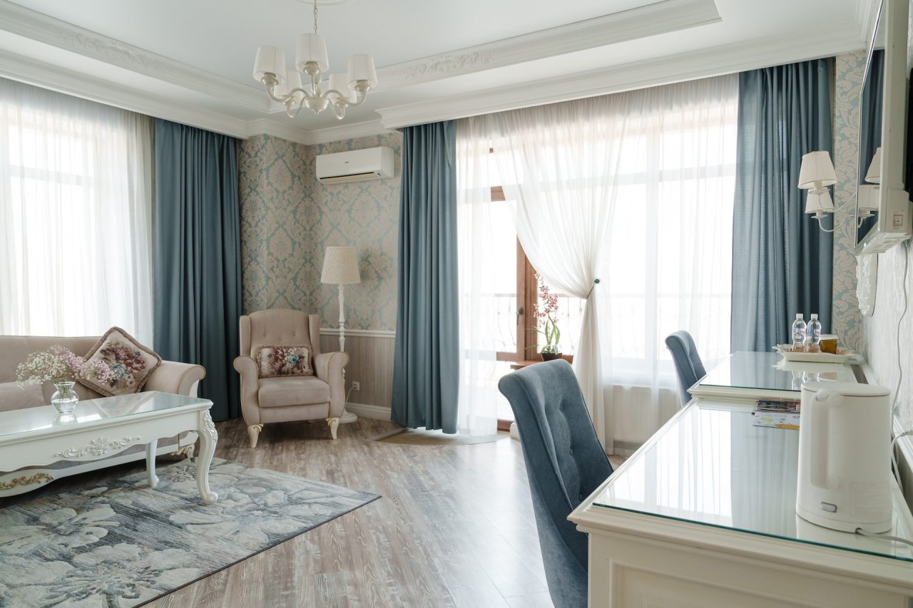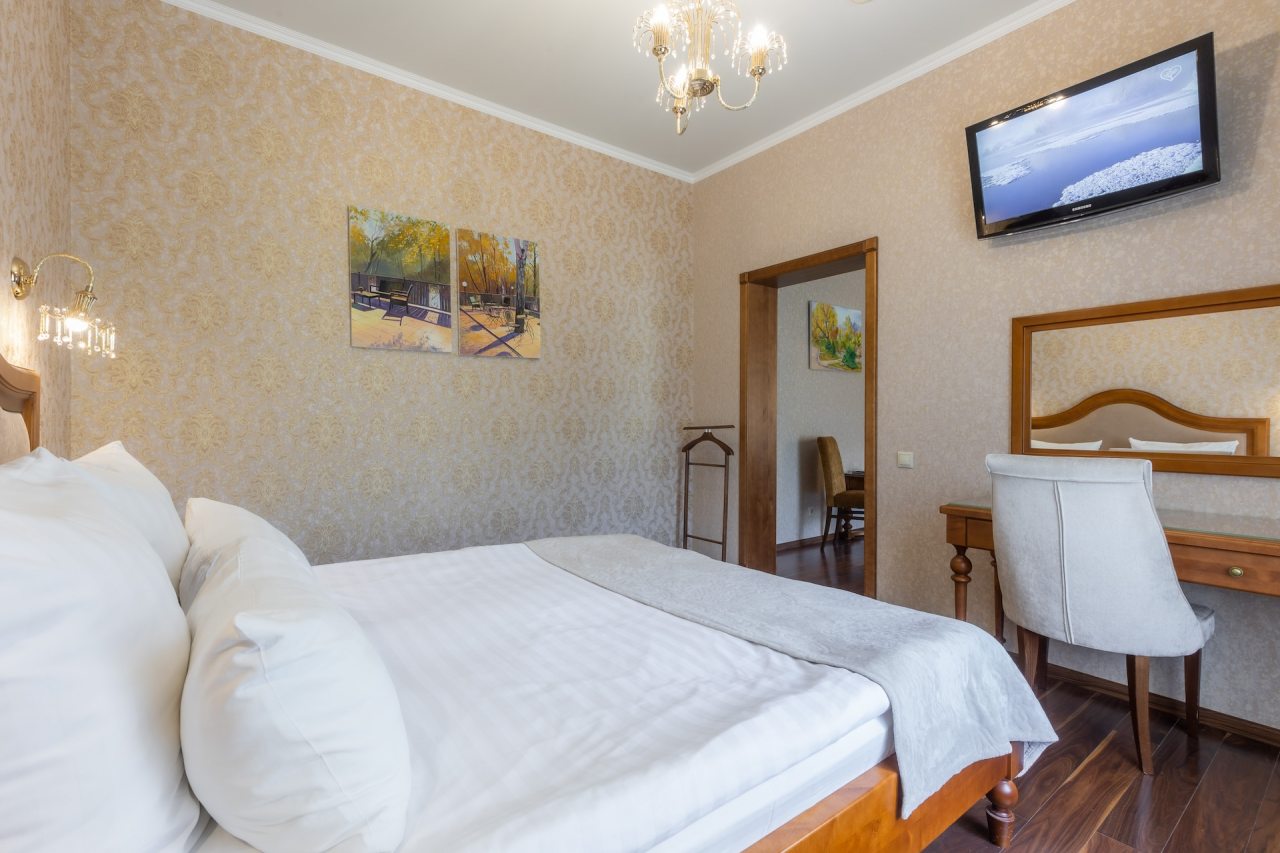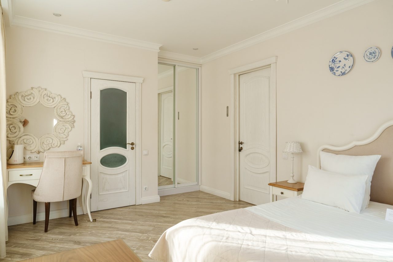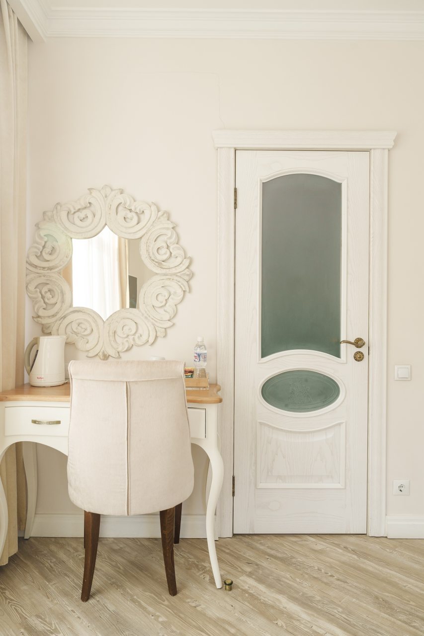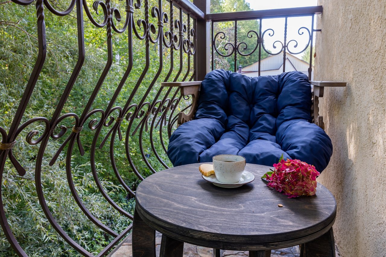 В малом отеле 12 просторных дизайнерских номеров с видом на реку и лес. К услугам: мебель ручной работы из массива дерева, качественные косметические принадлежности, белые махровые полотенца, фен, кондиционер, встроенный шкаф для багажа, утюг с гладильной доской, сейф. Также есть уютные спальные места с ортопедическим матрасом, шкаф для бережного хранения личных вещей, спутниковое телевидение, письменный стол, мягкое кресло, ванная комната.