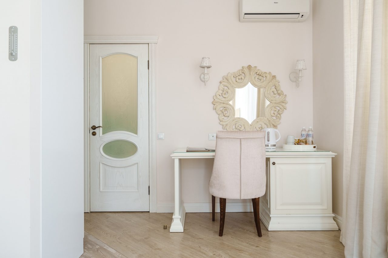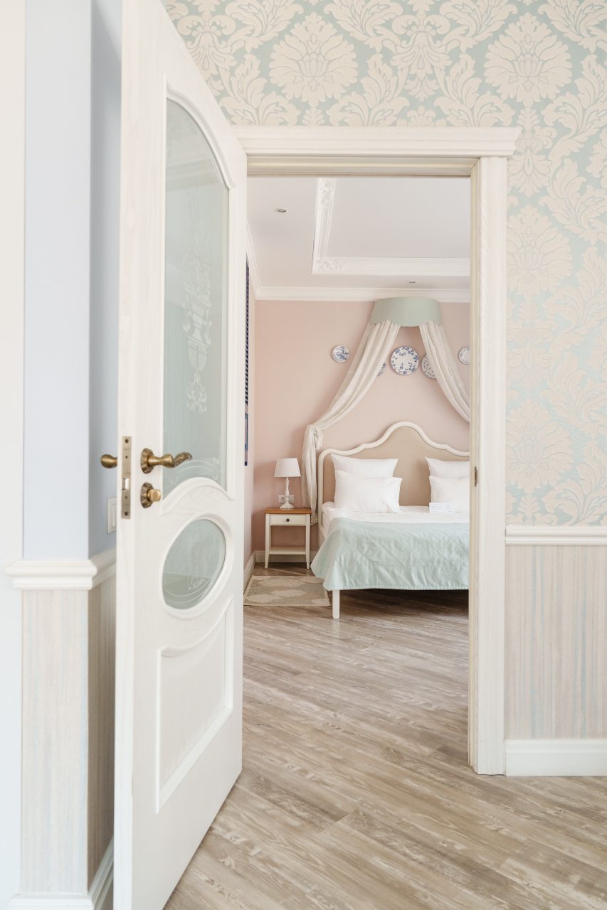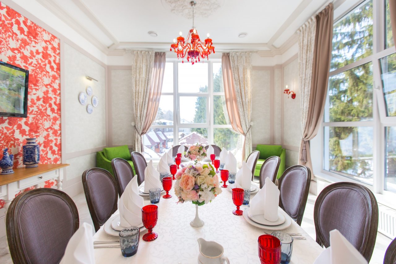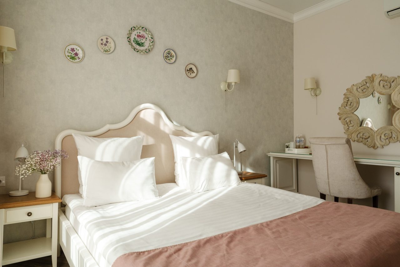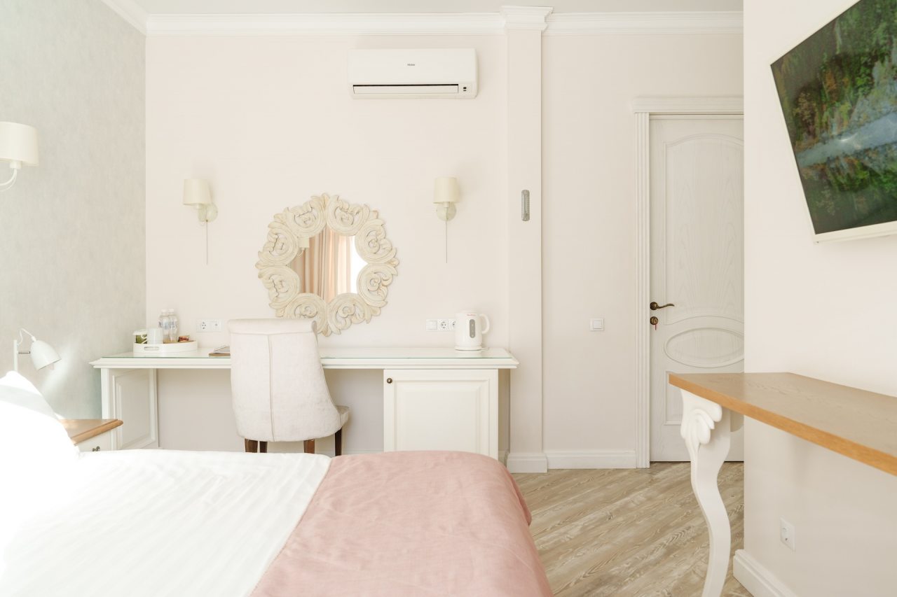 В малом отеле 12 просторных дизайнерских номеров с видом на реку и лес. К услугам: мебель ручной работы из массива дерева, качественные косметические принадлежности, белые махровые полотенца, фен, кондиционер, встроенный шкаф для багажа, утюг с гладильной доской, сейф. Также есть уютные спальные места с ортопедическим матрасом, шкаф для бережного хранения личных вещей, спутниковое телевидение, письменный стол, мягкое кресло, ванная комната.