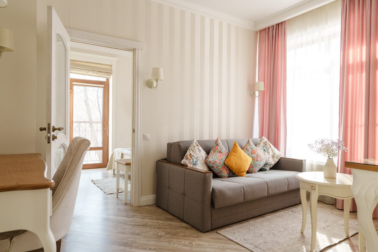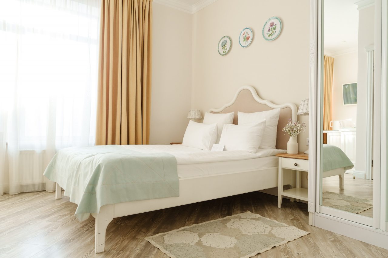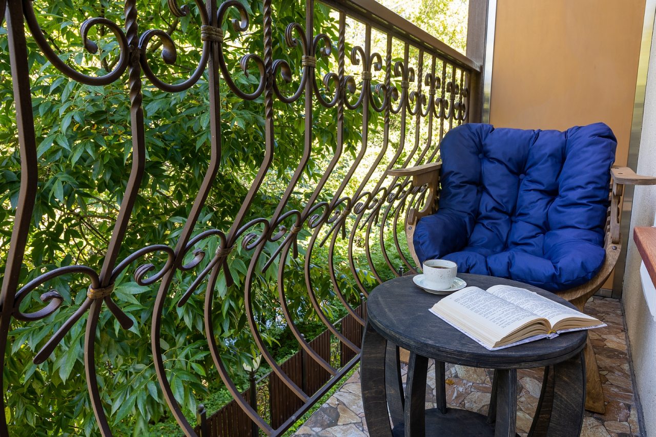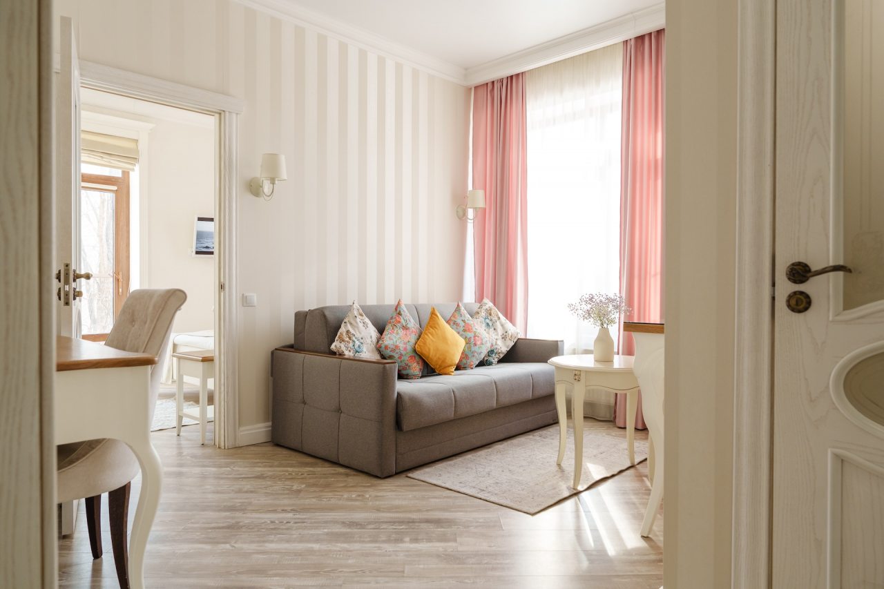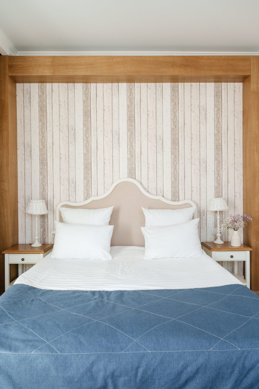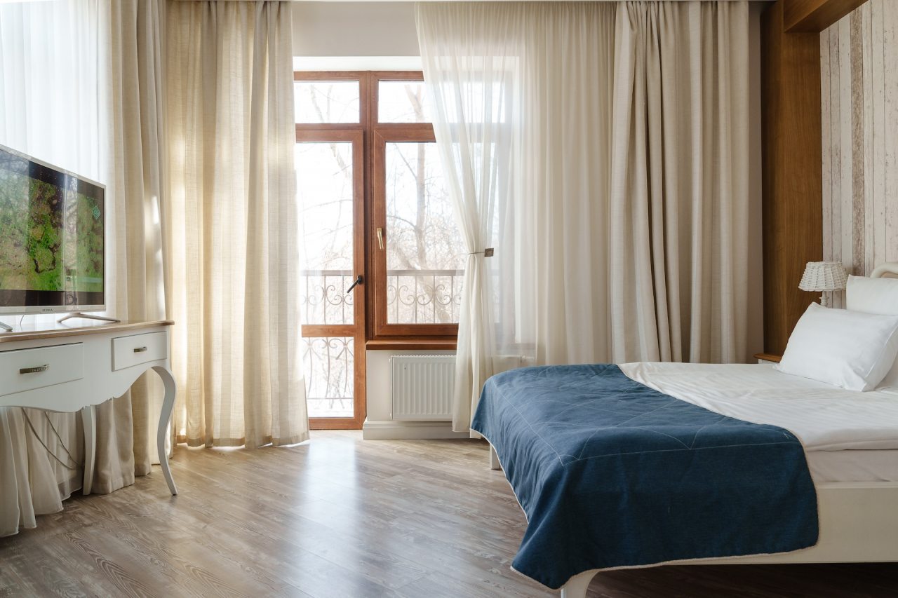 В малом отеле 12 просторных дизайнерских номеров с видом на реку и лес. К услугам: мебель ручной работы из массива дерева, качественные косметические принадлежности, белые махровые полотенца, фен, кондиционер, встроенный шкаф для багажа, утюг с гладильной доской, сейф. Также есть уютные спальные места с ортопедическим матрасом, шкаф для бережного хранения личных вещей, спутниковое телевидение, письменный стол, мягкое кресло, ванная комната.