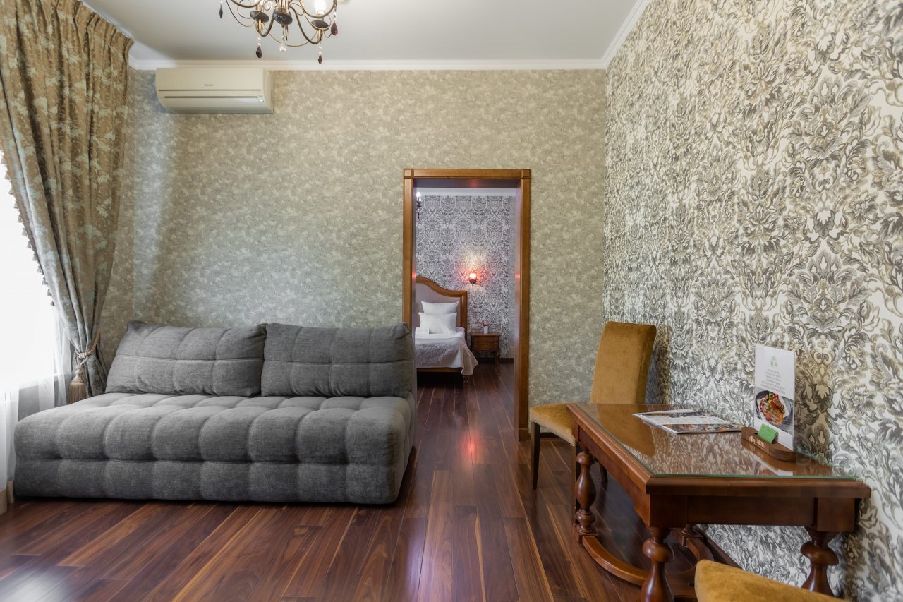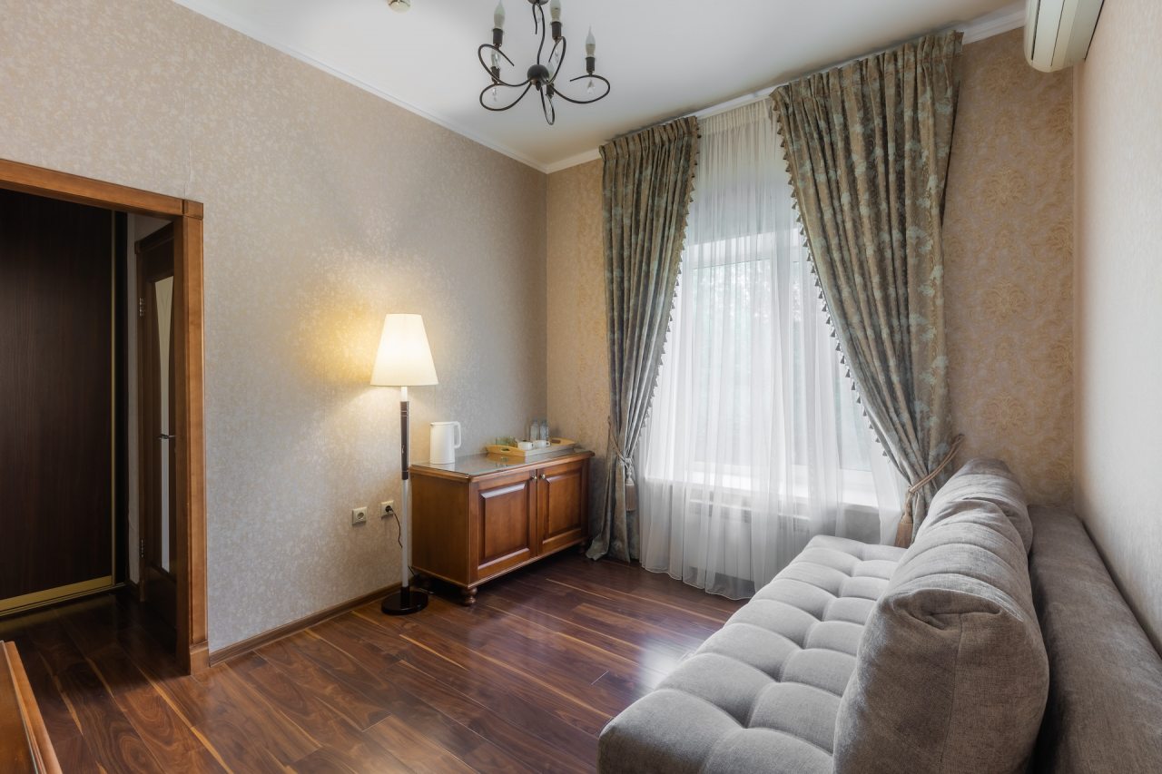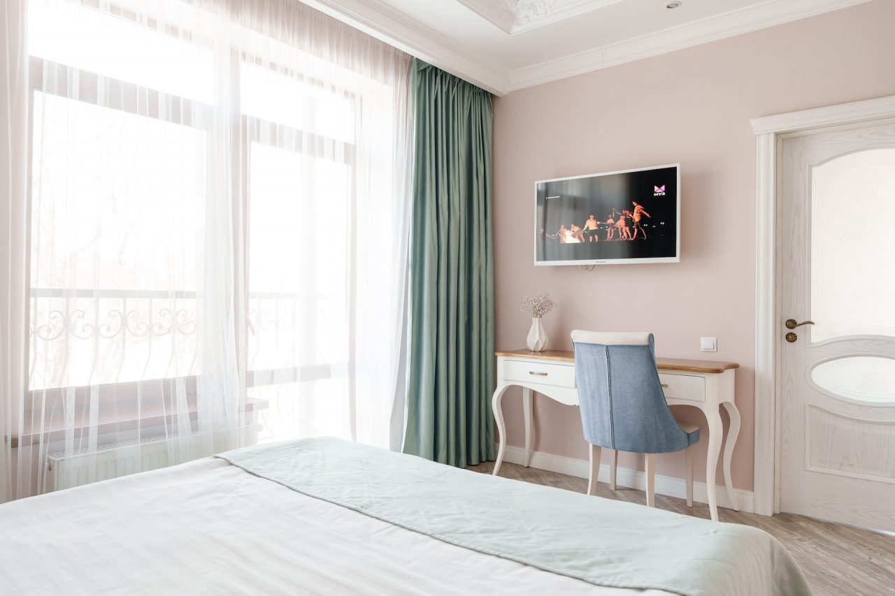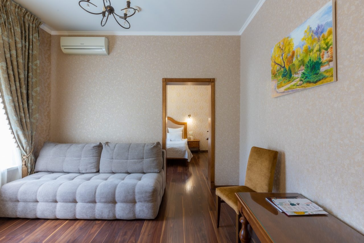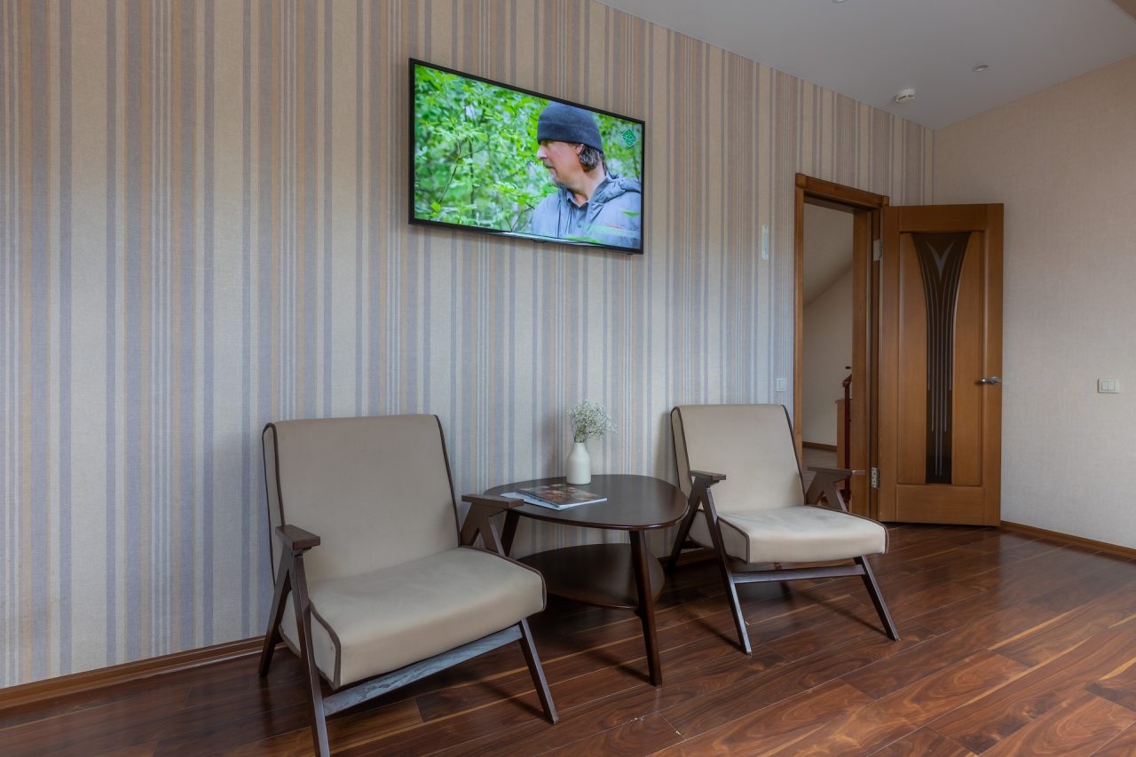 В малом отеле 12 просторных дизайнерских номеров с видом на реку и лес. К услугам: мебель ручной работы из массива дерева, качественные косметические принадлежности, белые махровые полотенца, фен, кондиционер, встроенный шкаф для багажа, утюг с гладильной доской, сейф. Также есть уютные спальные места с ортопедическим матрасом, шкаф для бережного хранения личных вещей, спутниковое телевидение, письменный стол, мягкое кресло, ванная комната.