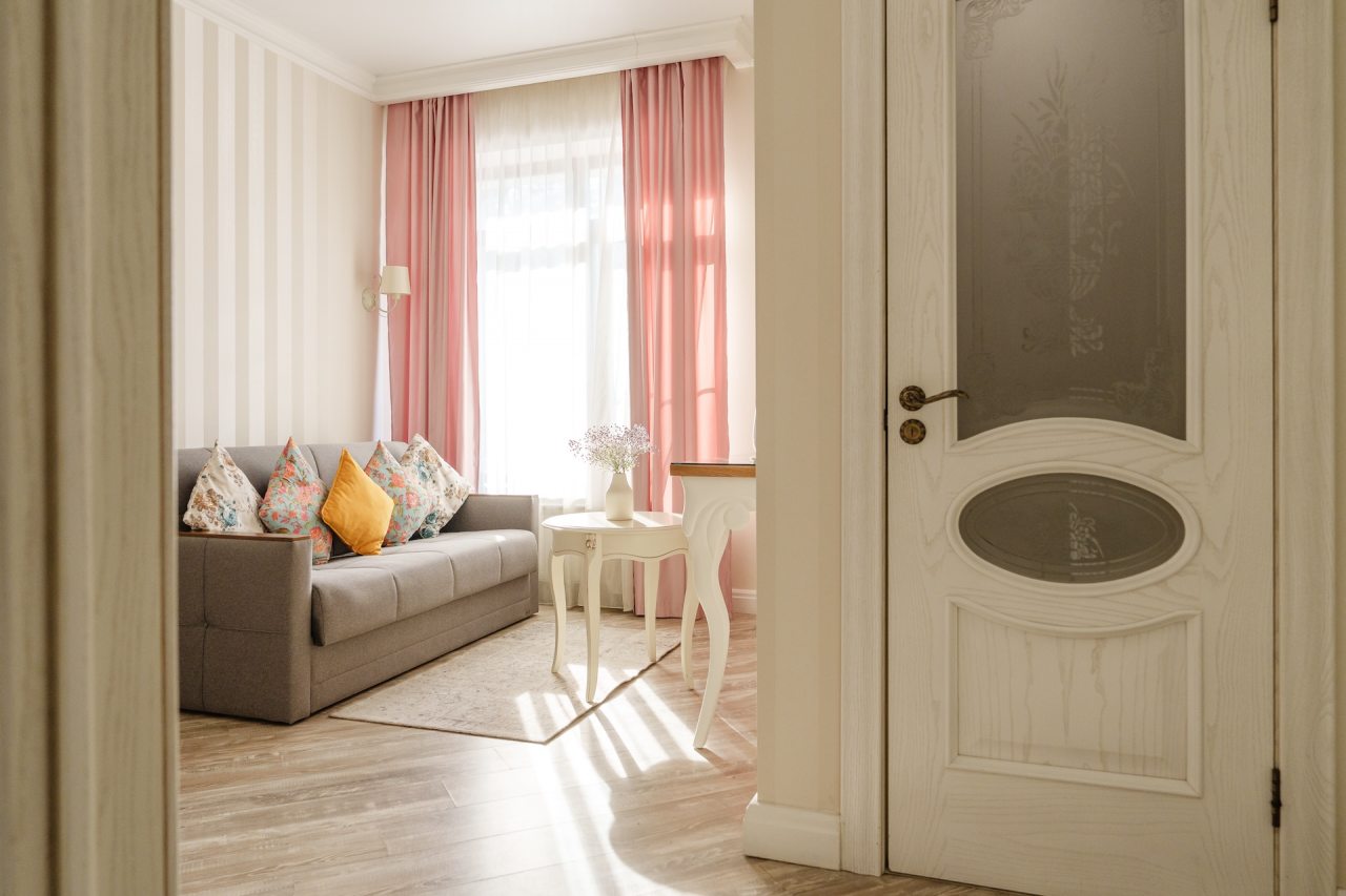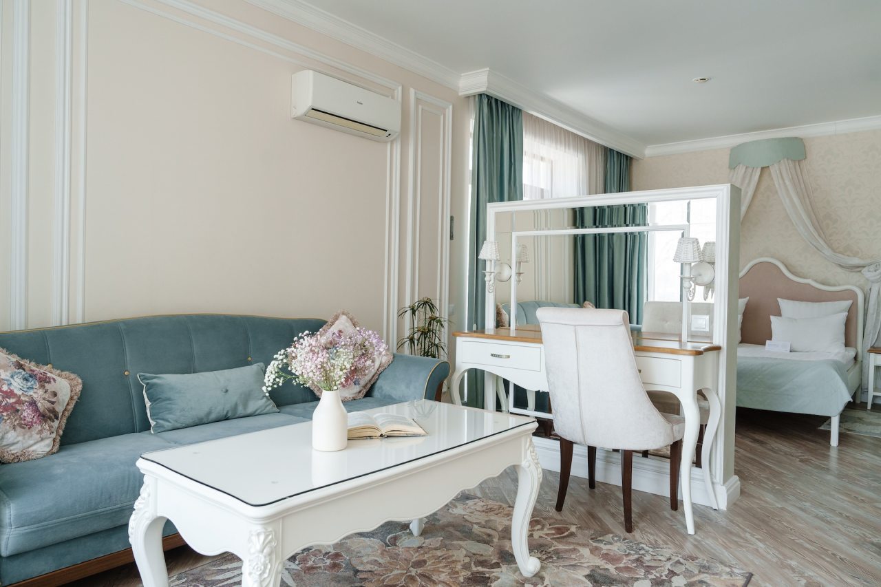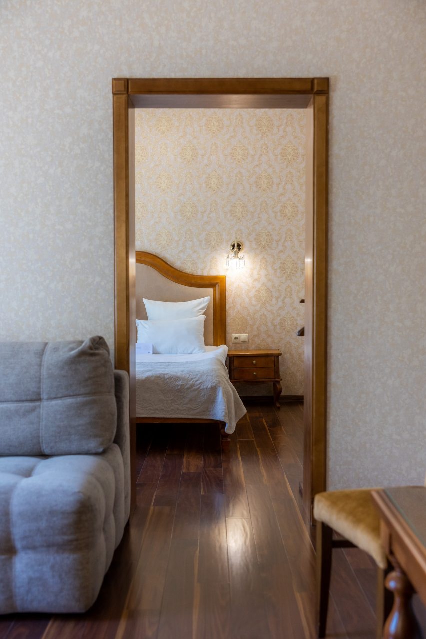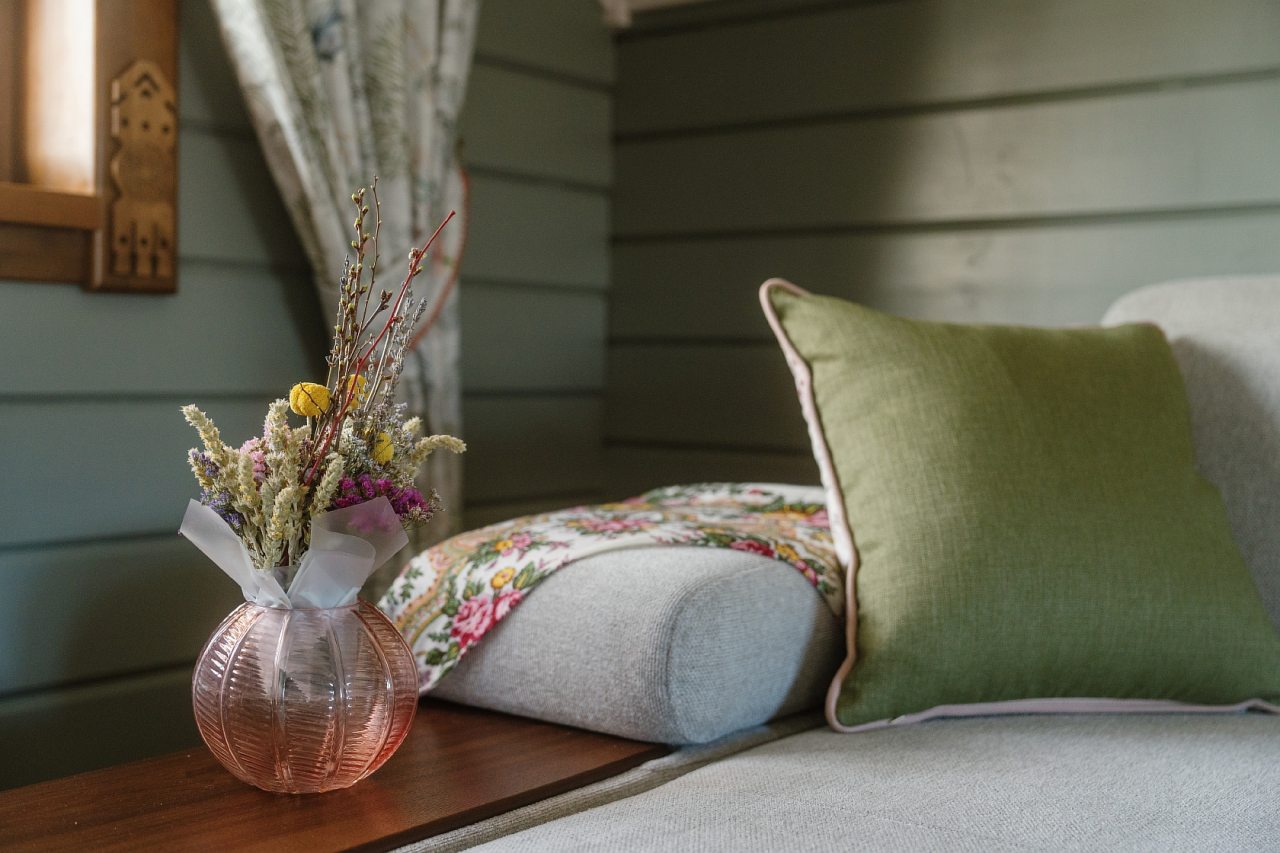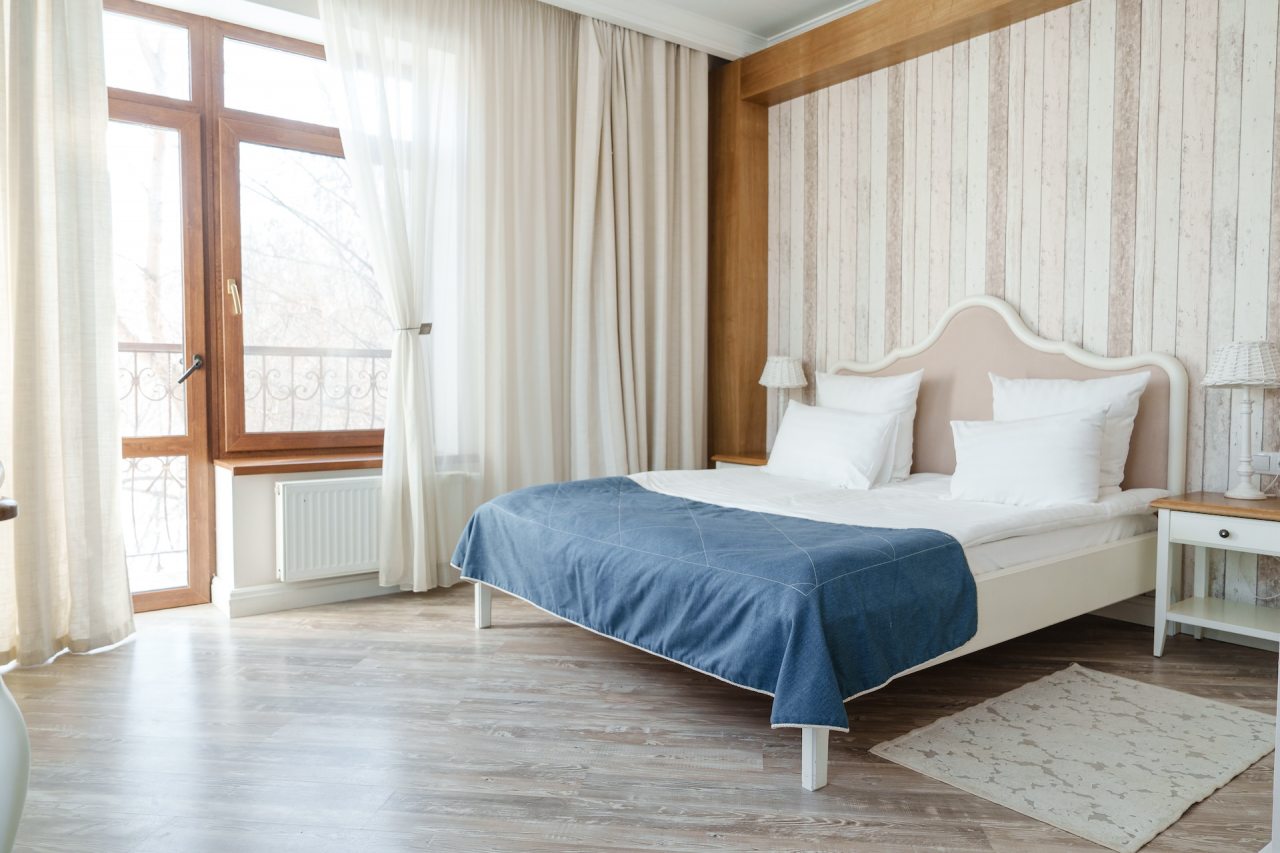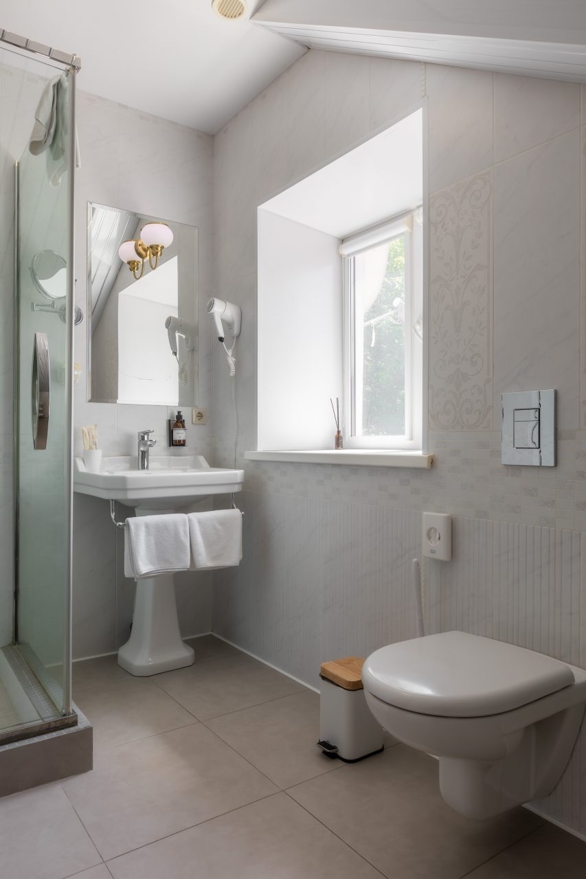 В малом отеле 12 просторных дизайнерских номеров с видом на реку и лес. К услугам: мебель ручной работы из массива дерева, качественные косметические принадлежности, белые махровые полотенца, фен, кондиционер, встроенный шкаф для багажа, утюг с гладильной доской, сейф. Также есть уютные спальные места с ортопедическим матрасом, шкаф для бережного хранения личных вещей, спутниковое телевидение, письменный стол, мягкое кресло, ванная комната.