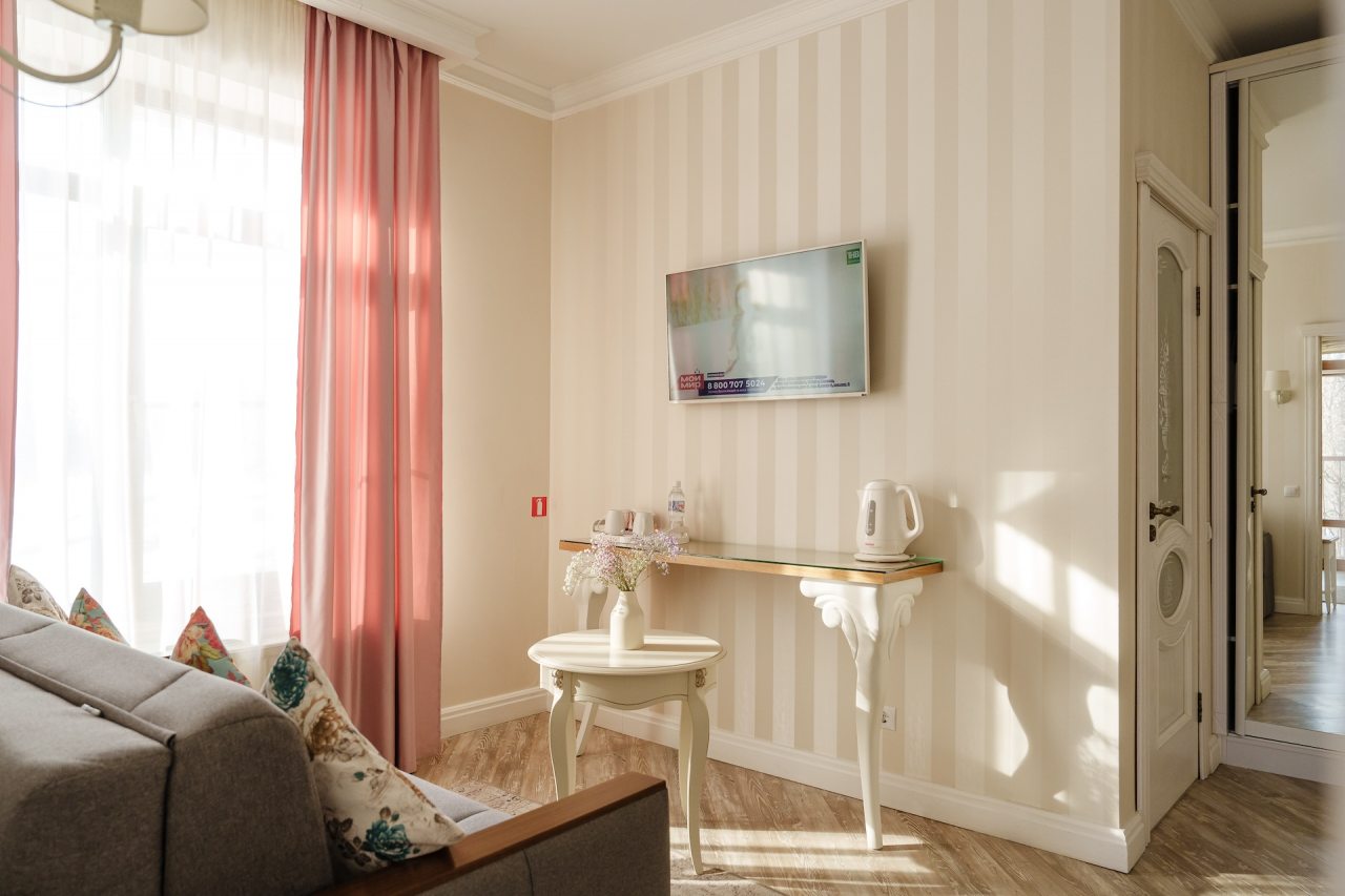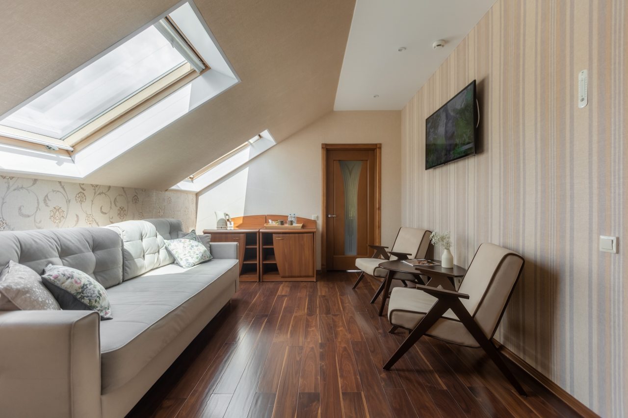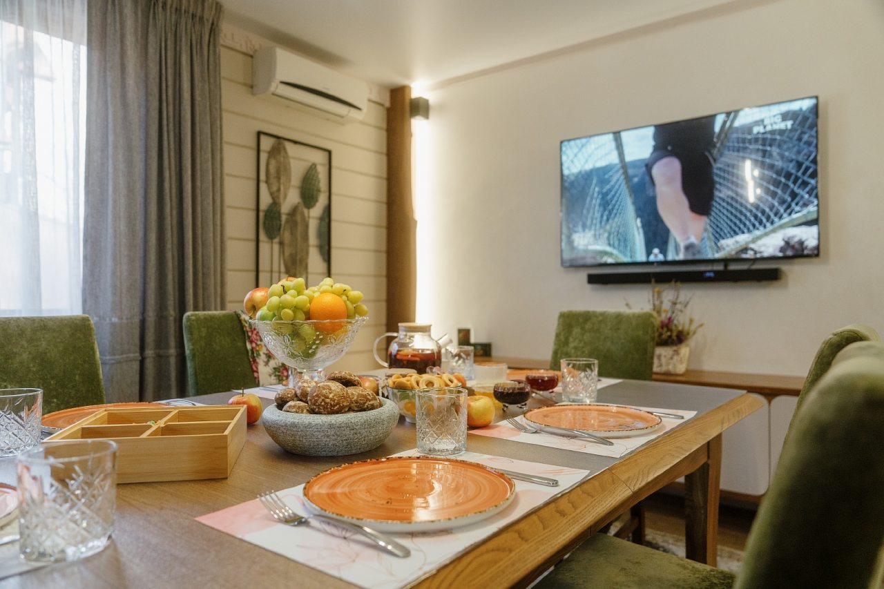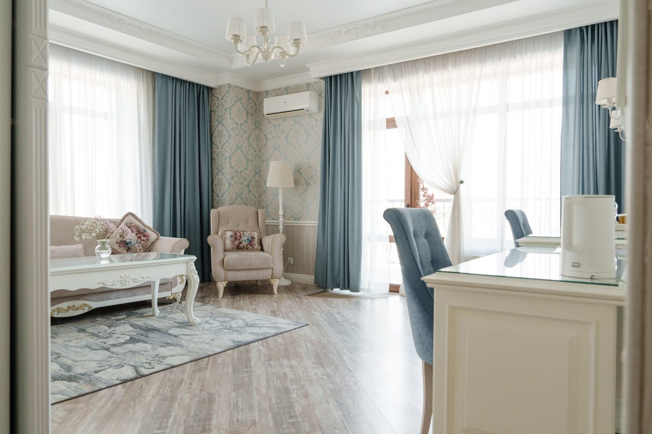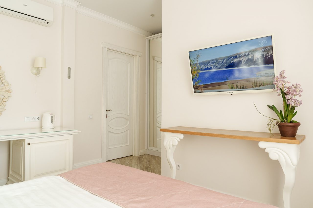 В малом отеле 12 просторных дизайнерских номеров с видом на реку и лес. К услугам: мебель ручной работы из массива дерева, качественные косметические принадлежности, белые махровые полотенца, фен, кондиционер, встроенный шкаф для багажа, утюг с гладильной доской, сейф. Также есть уютные спальные места с ортопедическим матрасом, шкаф для бережного хранения личных вещей, спутниковое телевидение, письменный стол, мягкое кресло, ванная комната.