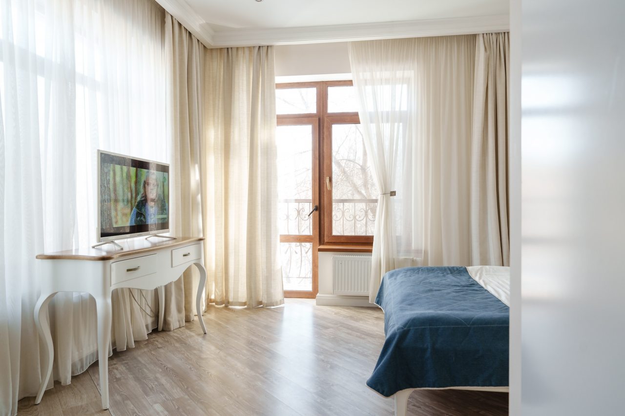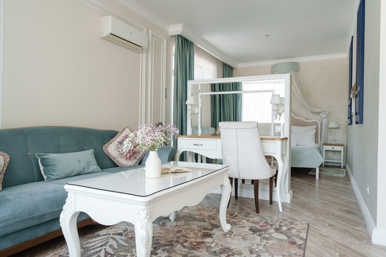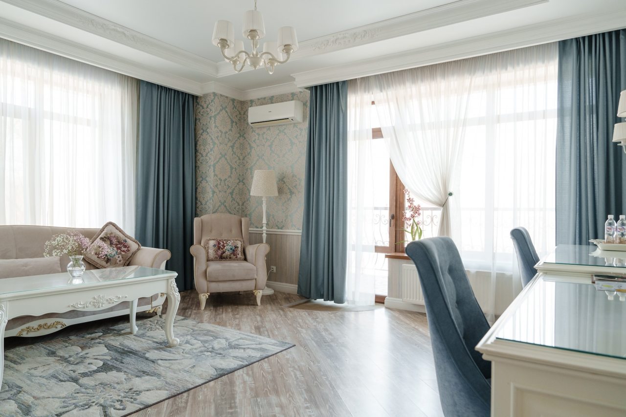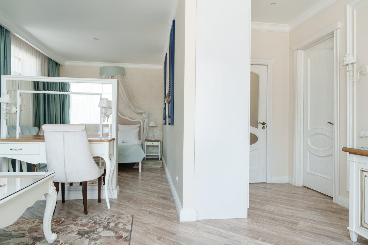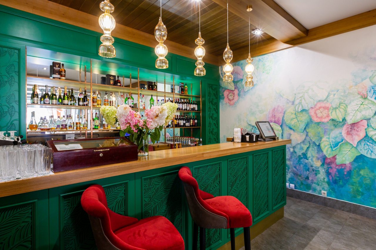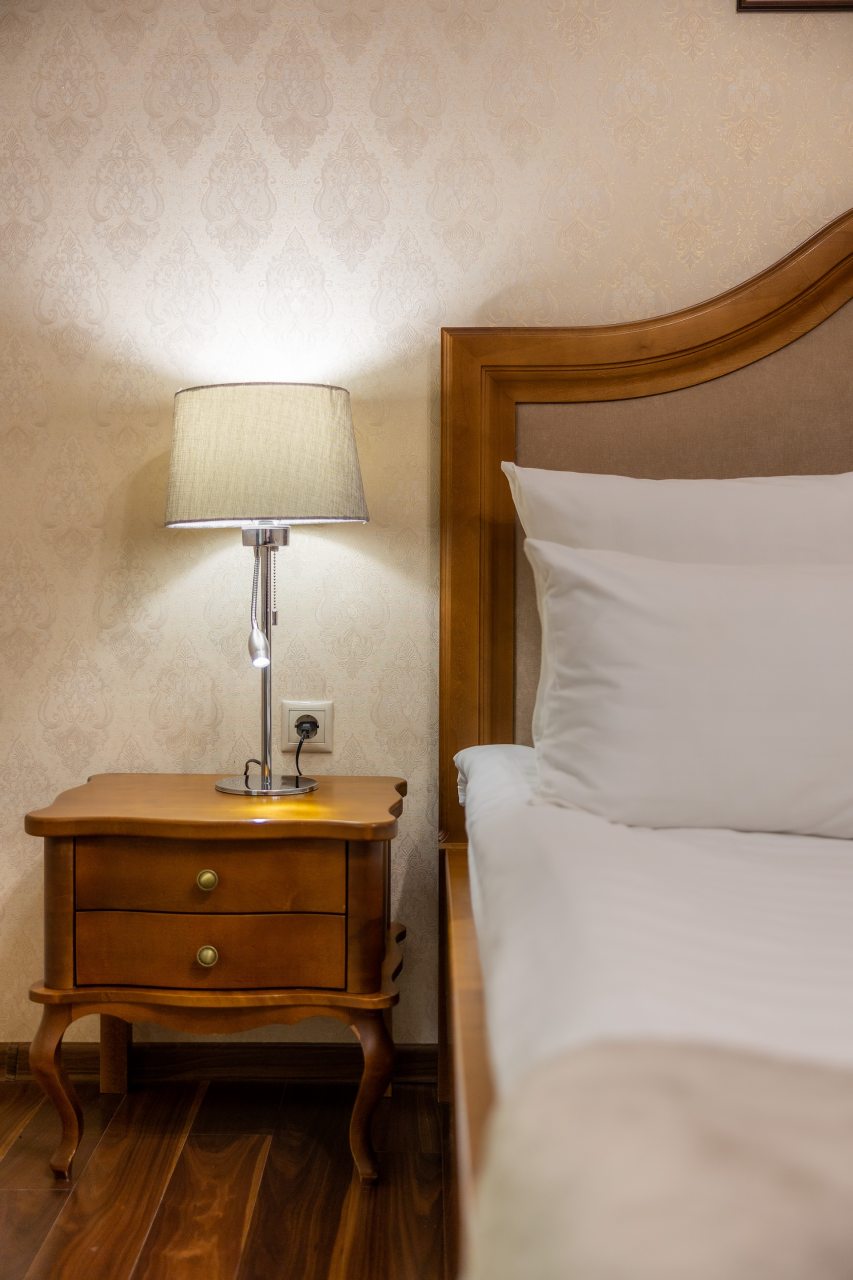 В малом отеле 12 просторных дизайнерских номеров с видом на реку и лес. К услугам: мебель ручной работы из массива дерева, качественные косметические принадлежности, белые махровые полотенца, фен, кондиционер, встроенный шкаф для багажа, утюг с гладильной доской, сейф. Также есть уютные спальные места с ортопедическим матрасом, шкаф для бережного хранения личных вещей, спутниковое телевидение, письменный стол, мягкое кресло, ванная комната.