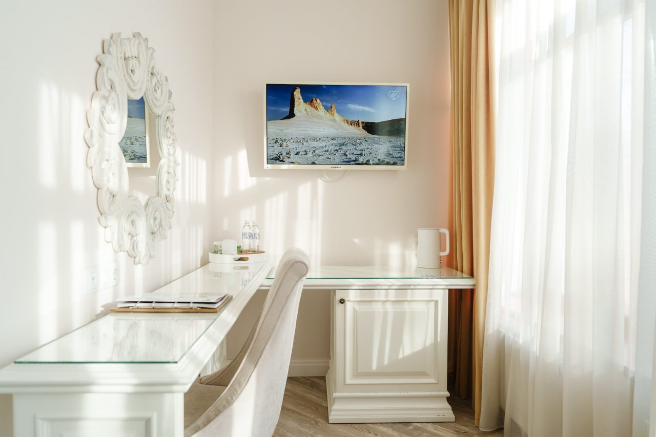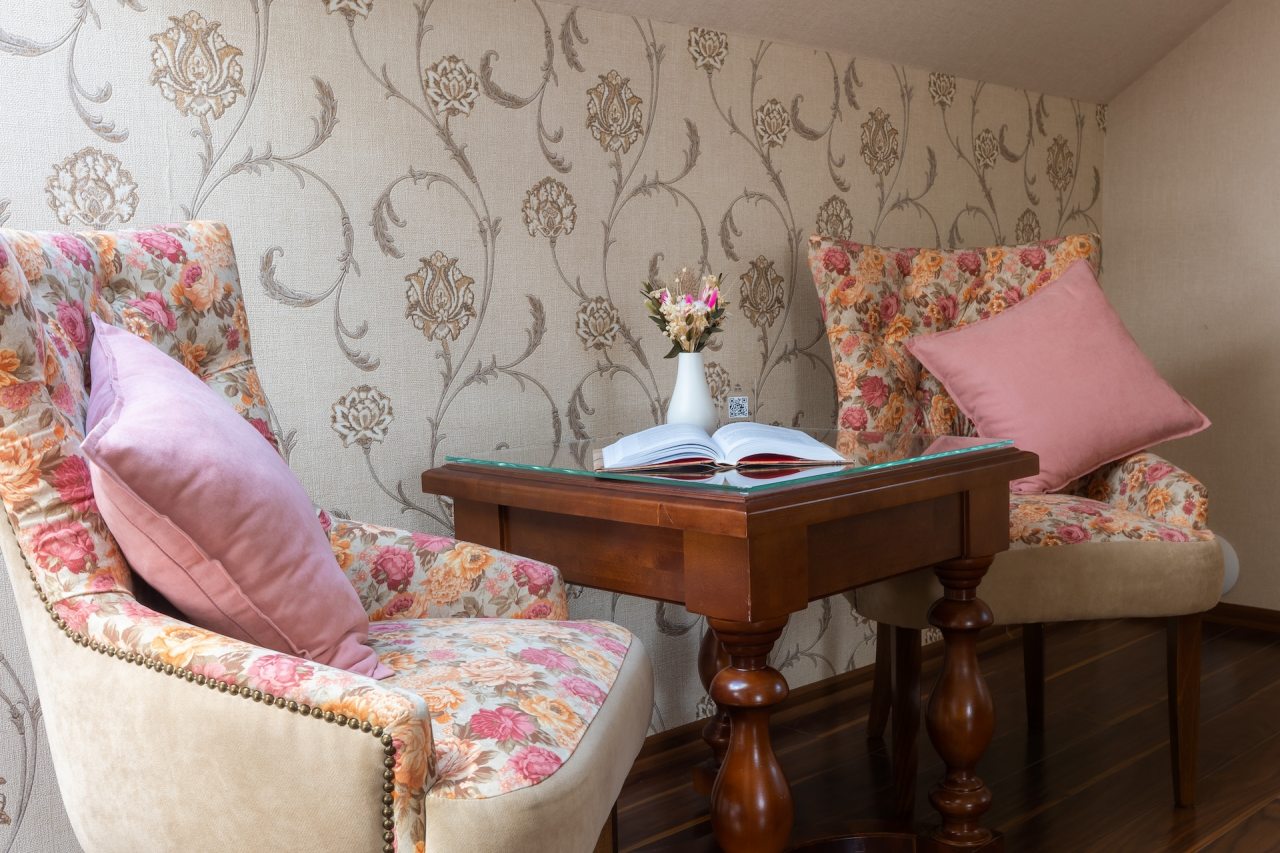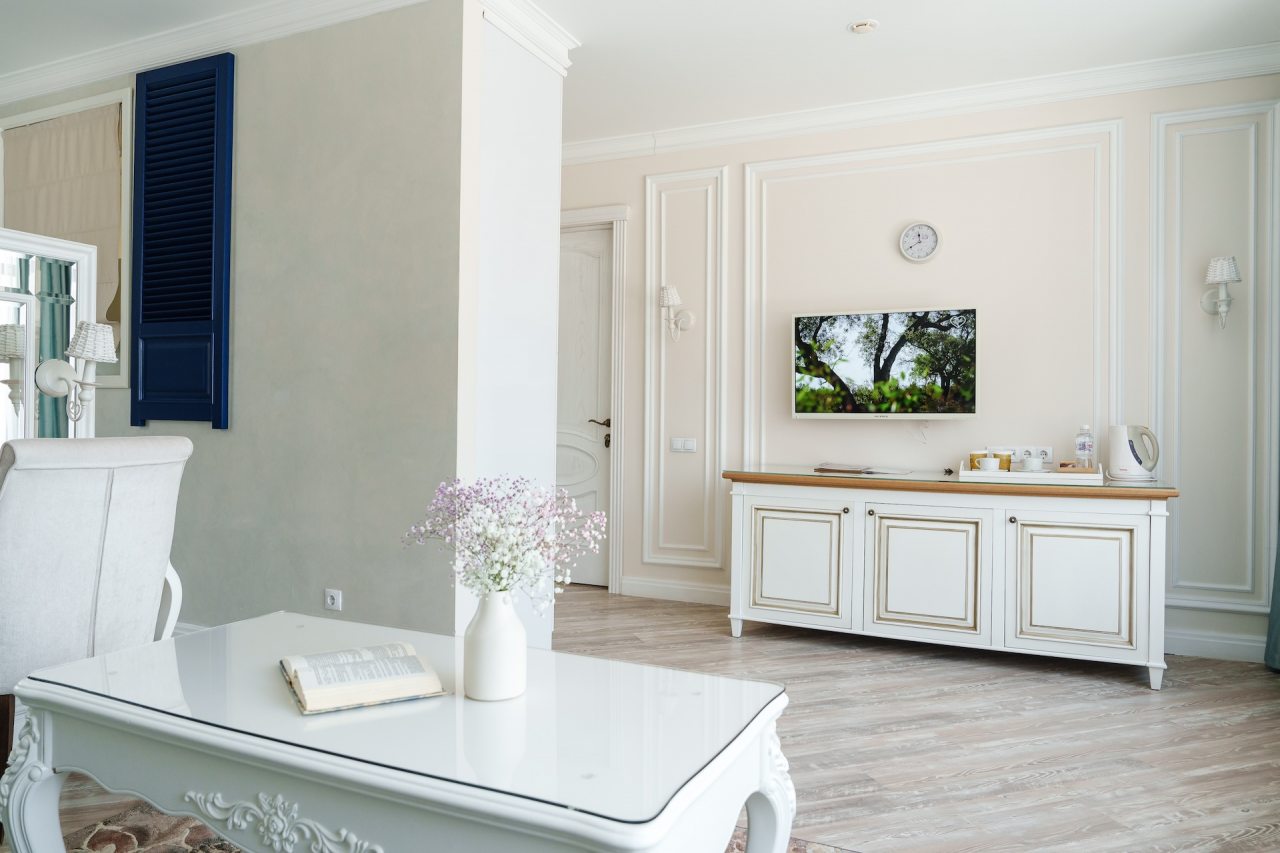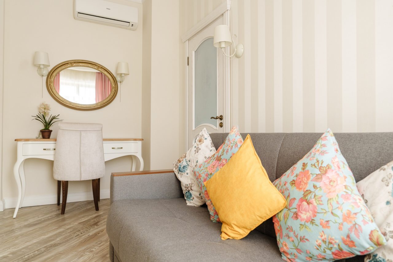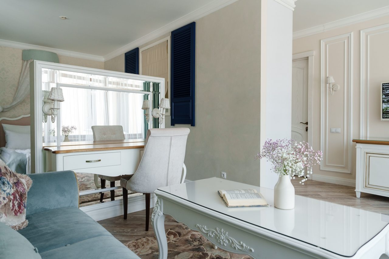 В малом отеле 12 просторных дизайнерских номеров с видом на реку и лес. К услугам: мебель ручной работы из массива дерева, качественные косметические принадлежности, белые махровые полотенца, фен, кондиционер, встроенный шкаф для багажа, утюг с гладильной доской, сейф. Также есть уютные спальные места с ортопедическим матрасом, шкаф для бережного хранения личных вещей, спутниковое телевидение, письменный стол, мягкое кресло, ванная комната.