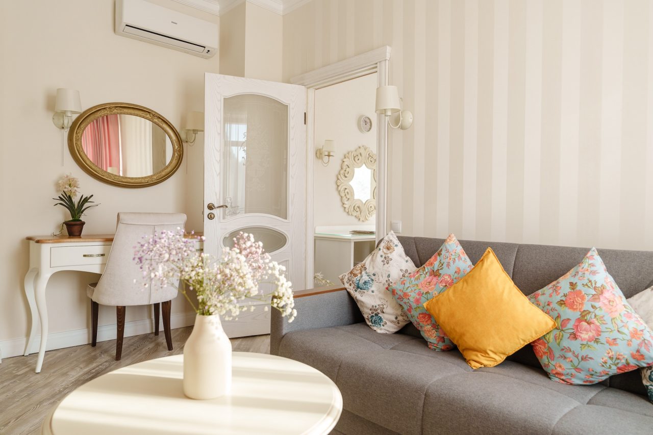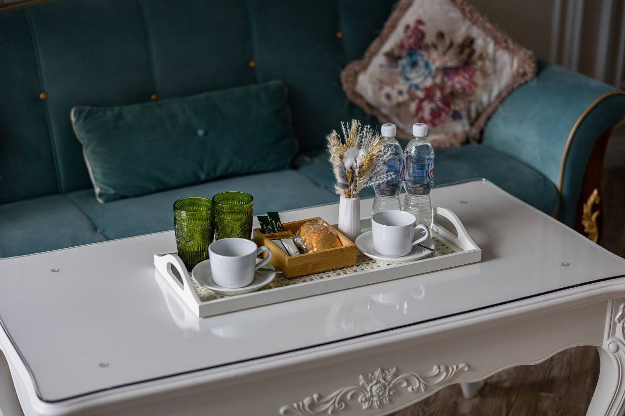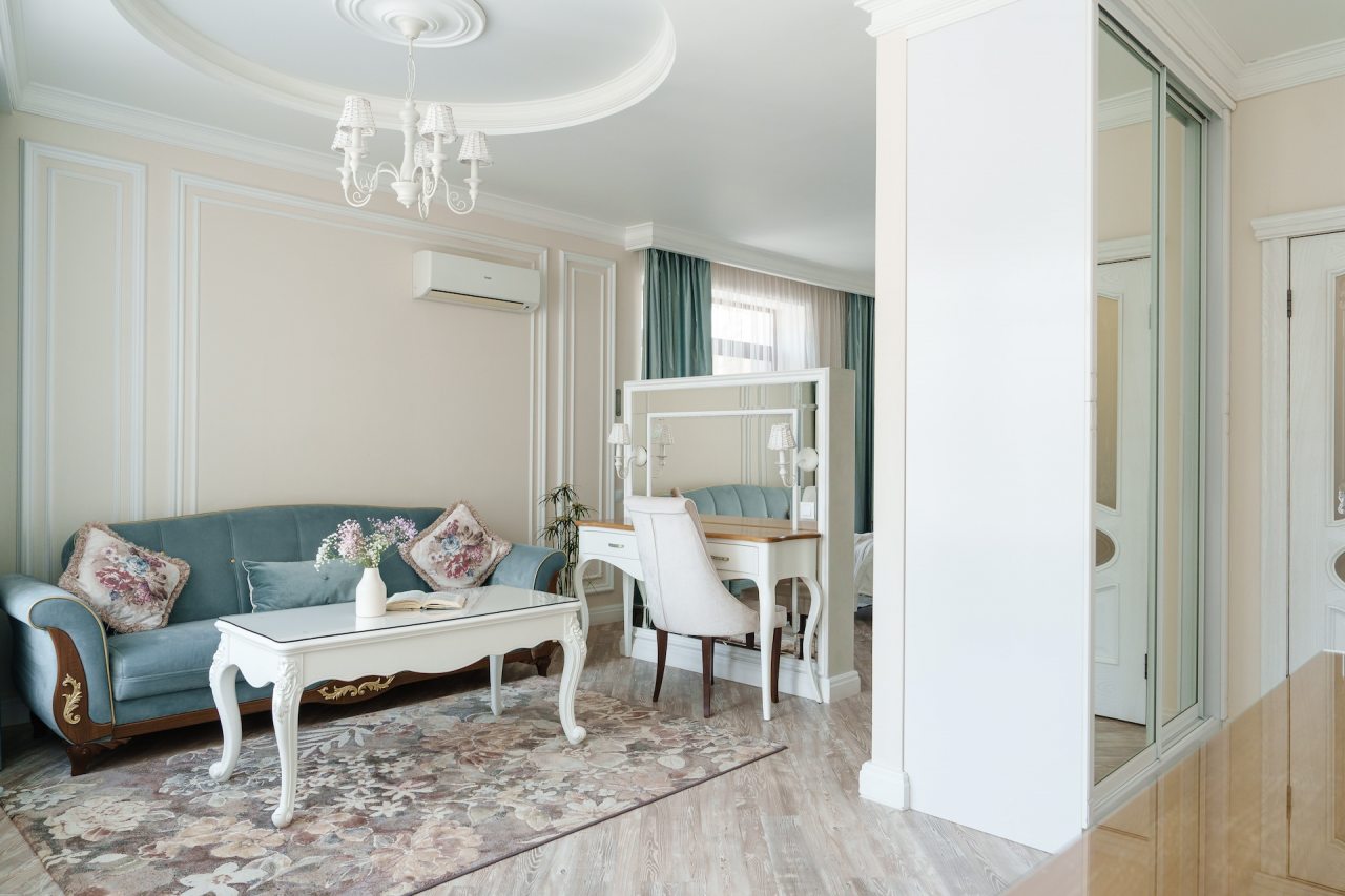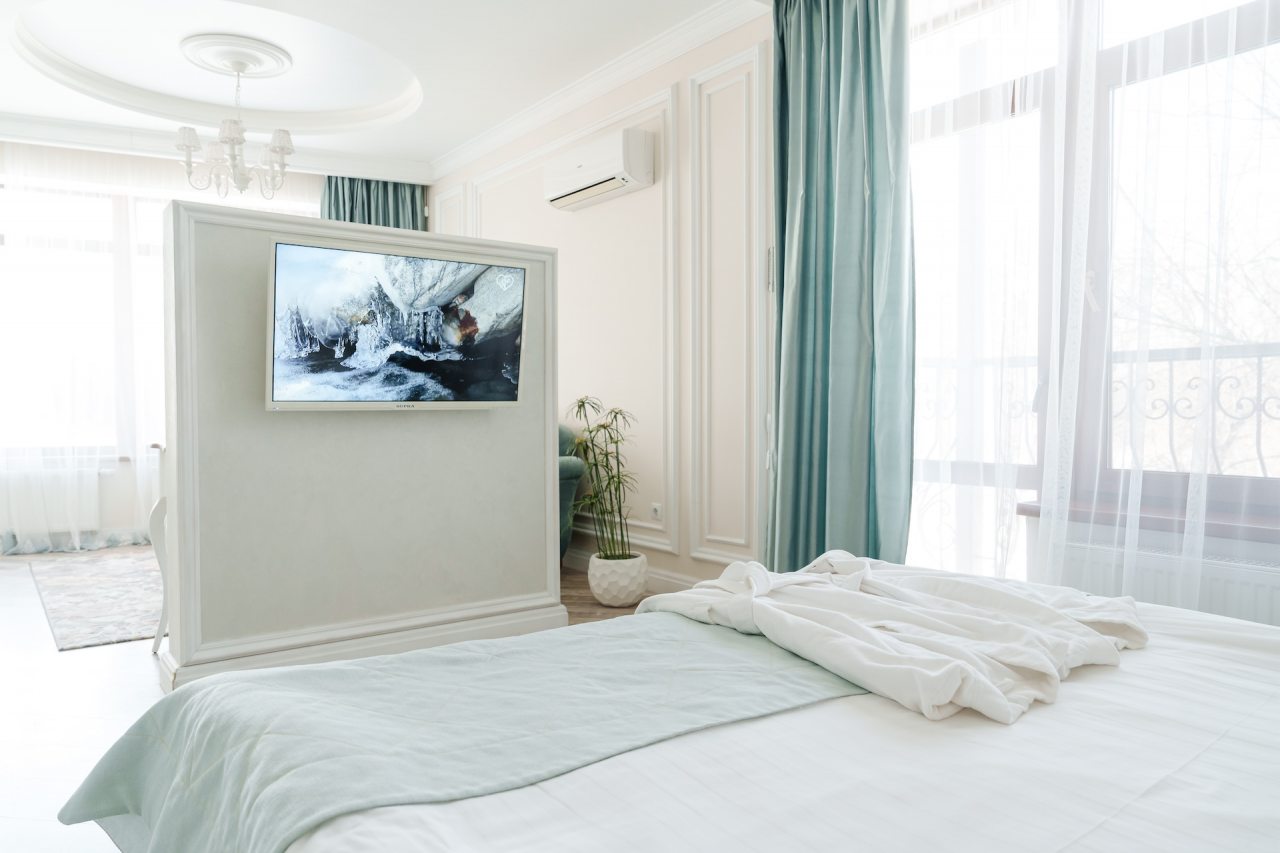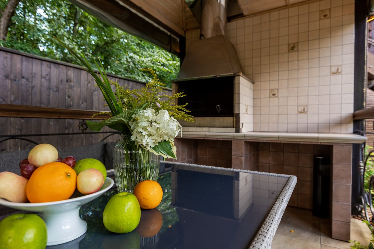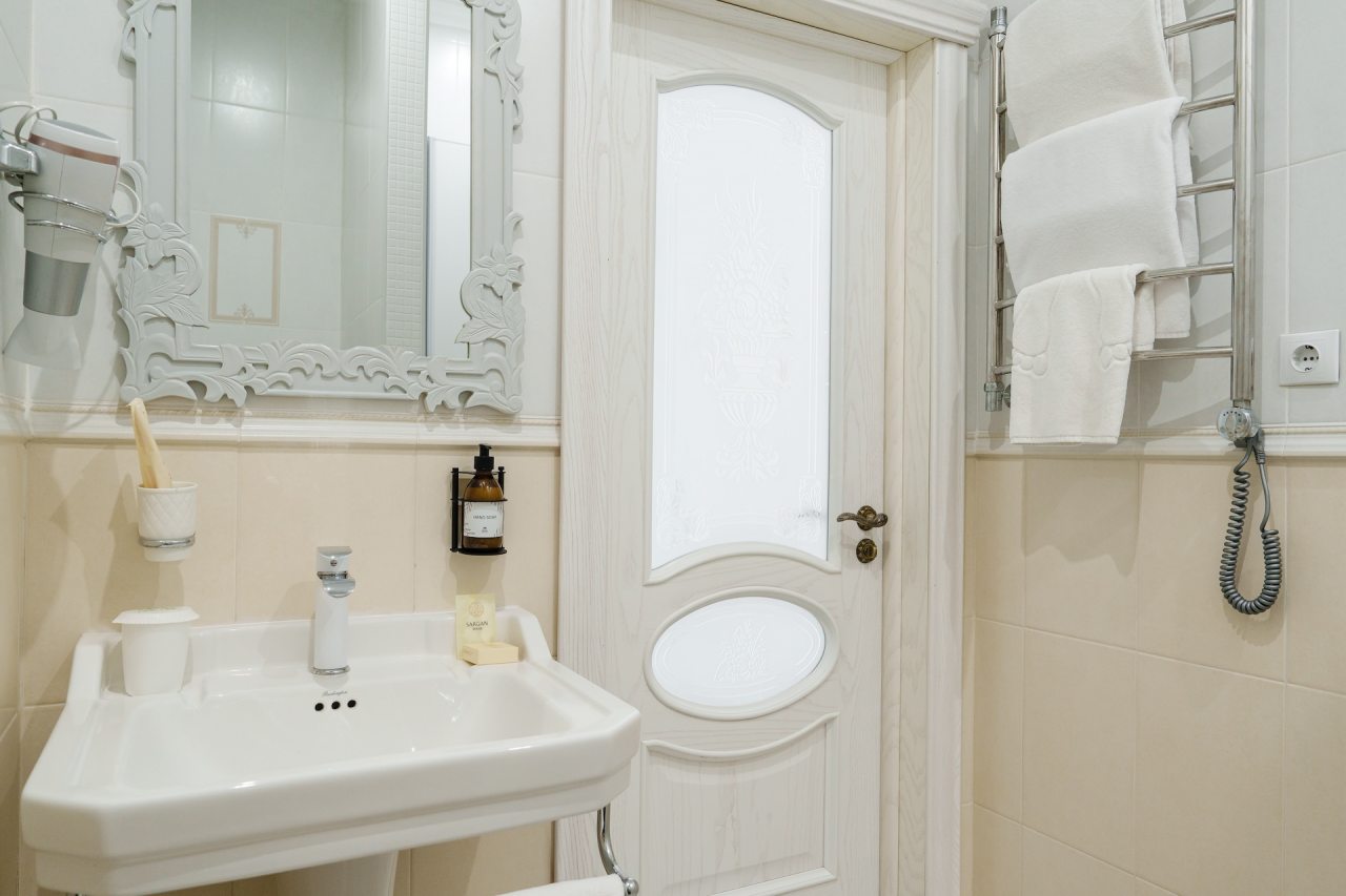 В малом отеле 12 просторных дизайнерских номеров с видом на реку и лес. К услугам: мебель ручной работы из массива дерева, качественные косметические принадлежности, белые махровые полотенца, фен, кондиционер, встроенный шкаф для багажа, утюг с гладильной доской, сейф. Также есть уютные спальные места с ортопедическим матрасом, шкаф для бережного хранения личных вещей, спутниковое телевидение, письменный стол, мягкое кресло, ванная комната.