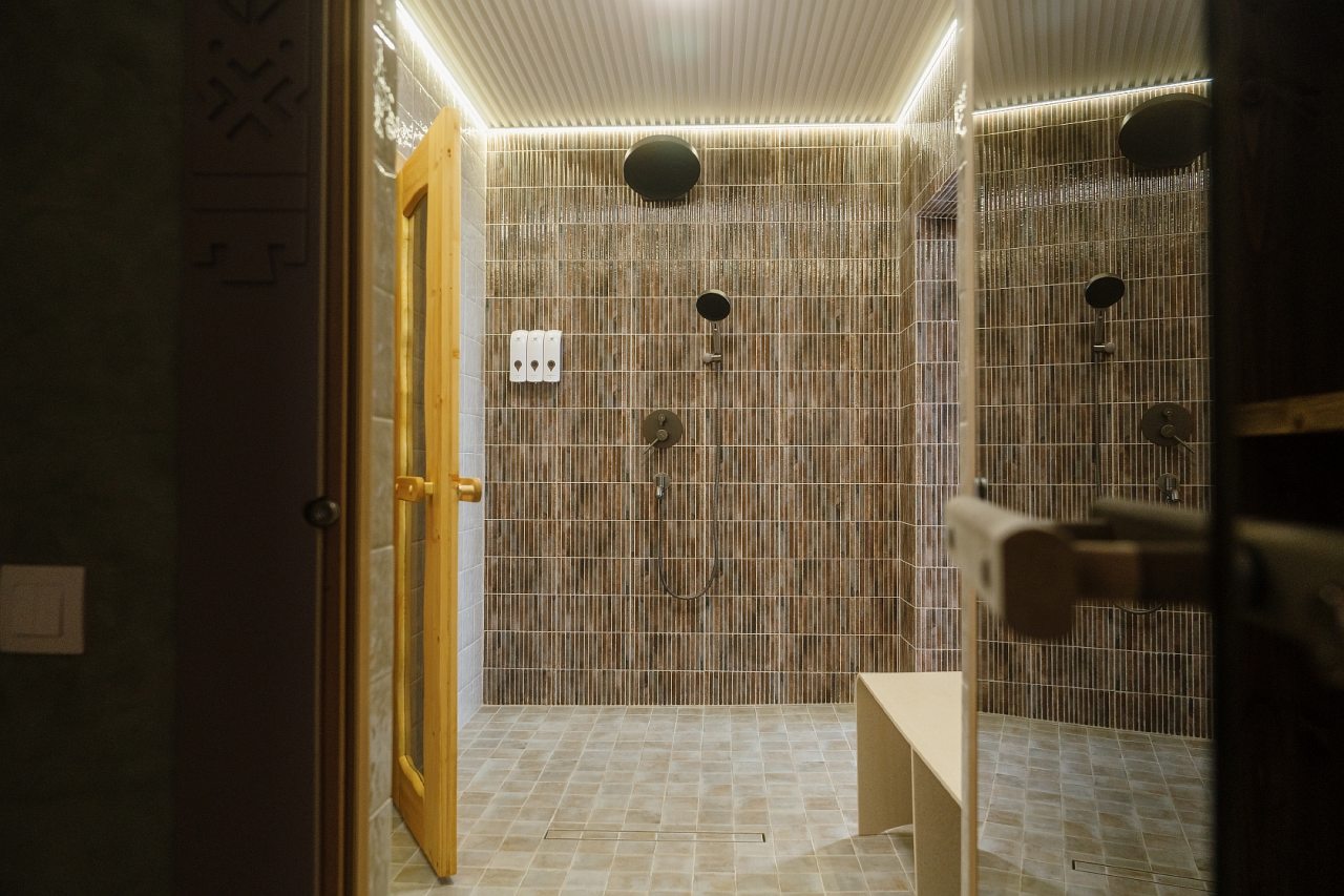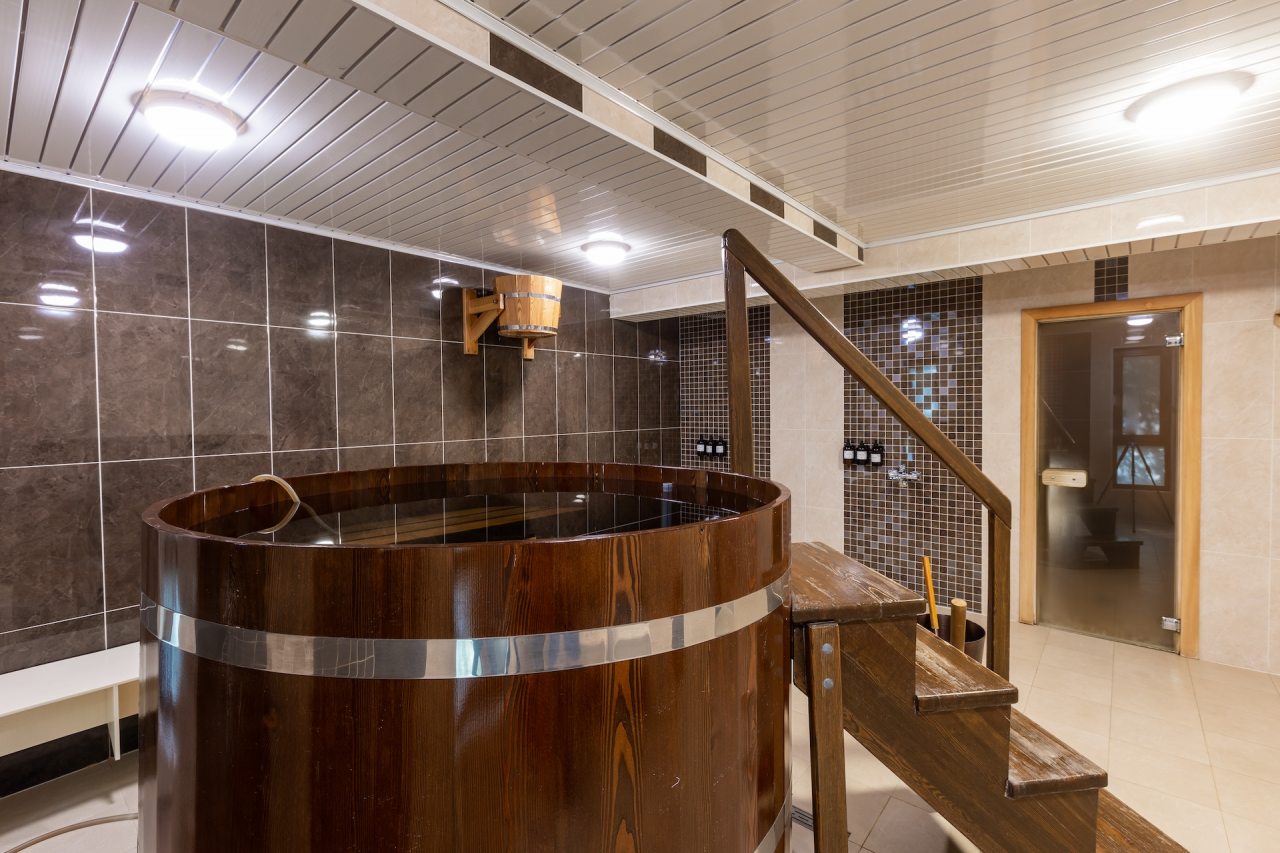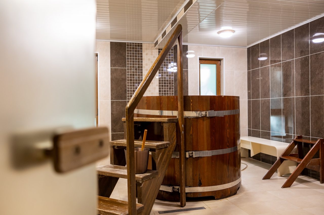 На территории предоставлены боярские усадьбы, в которых имеется русская баня с бассейном и дровяной купелью под открытым небом. Здесь гости смогут попариться и насладиться воздухом, насыщенным гималайской солью, что способствует очищению и поможет глубокому дыханию.