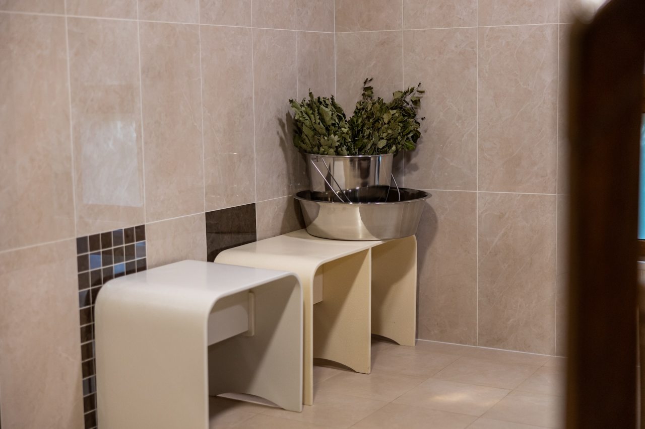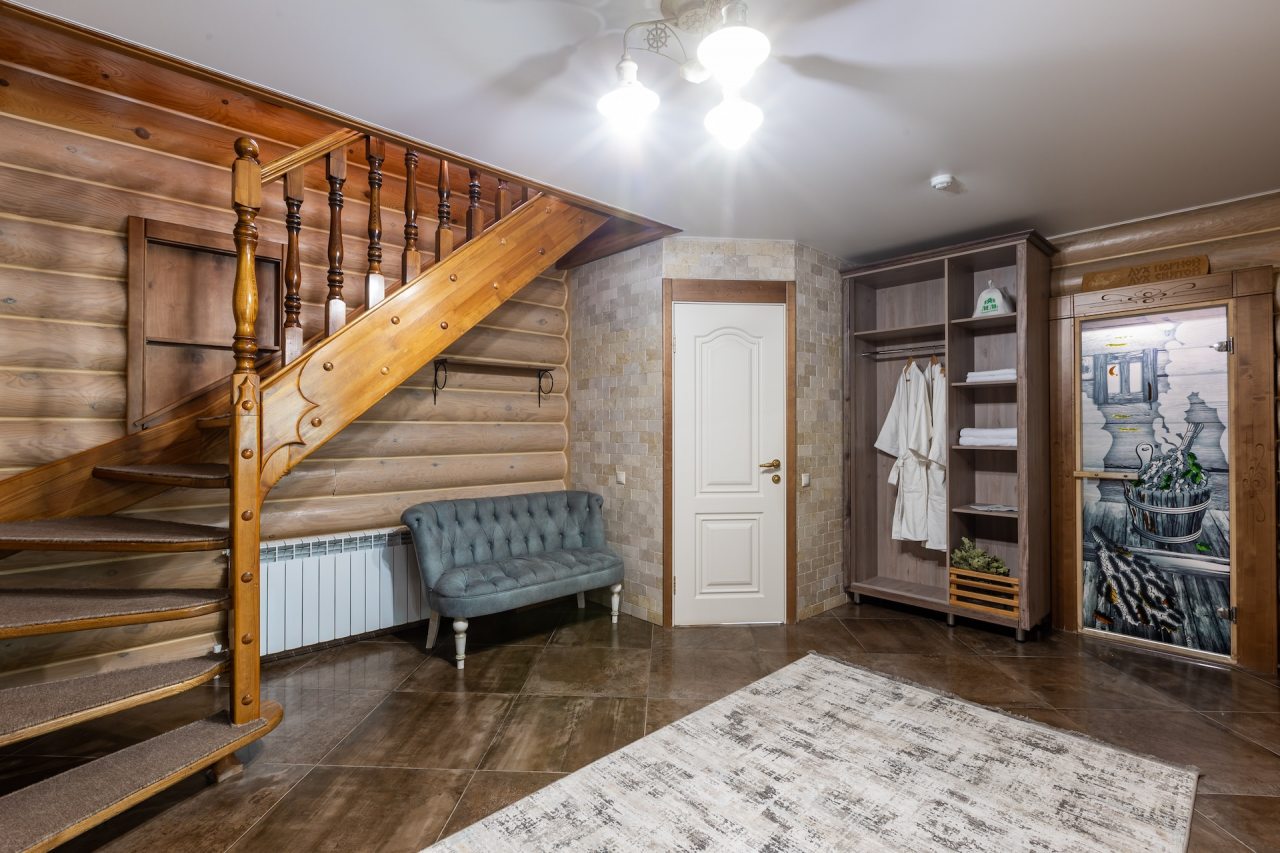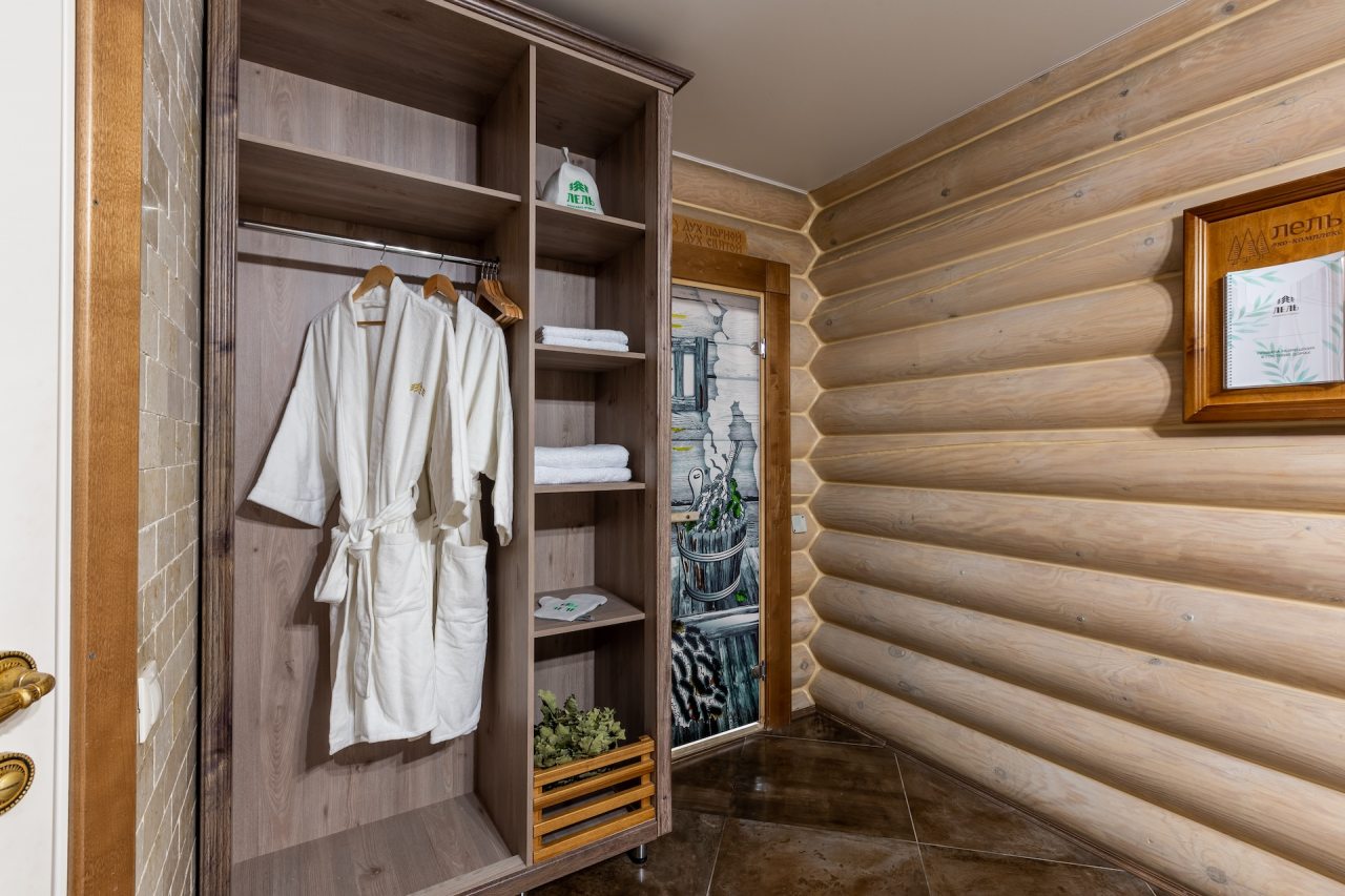 На территории предоставлены боярские усадьбы, в которых имеется русская баня с бассейном и дровяной купелью под открытым небом. Здесь гости смогут попариться и насладиться воздухом, насыщенным гималайской солью, что способствует очищению и поможет глубокому дыханию.