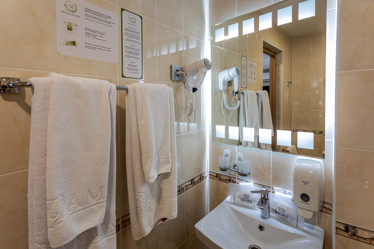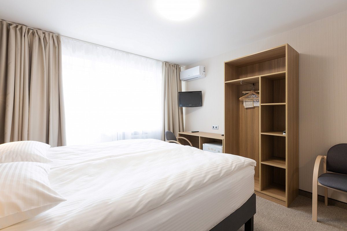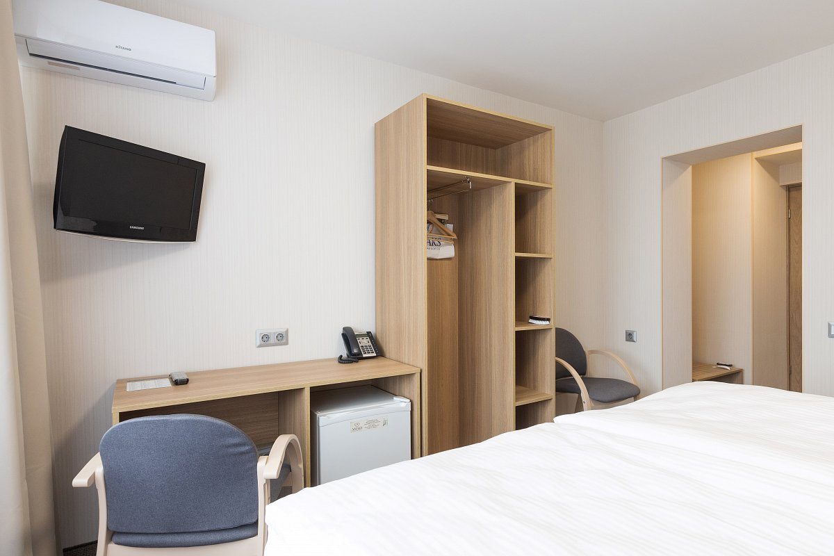 Номерной фонд представлен комфортными номерами категориями «Люкс», «Бизнес», «Стандарт» и «Студио» рассчитанные как на одного человека, так и на пару. Все они выполнены в теплой цветовой гамме и наполнены домашним уютом. В каждом гостей ожидает удобная кровать, стол, стулья, прикроватные тумбочки и светильники, телевизор и кондиционер. В собственно ванной комнате установлена душевая кабина или ванна, имеется средства личной гигиены, набор полотенец. На всей территории предоставляется бесплатный Wi-Fi. Также на территории предоставляются услуги прачечной, экскурсионного обслуживания, камеры хранения, трансфера. Привести себя в порядок возможно посетив салон красоты. Приобрести небольшие сувениры можно в магазине, который работает в отеле. Стойка регистрации работает круглосуточно. При согласовании с администрацией отеля возможно проживание с домашними питомцами.