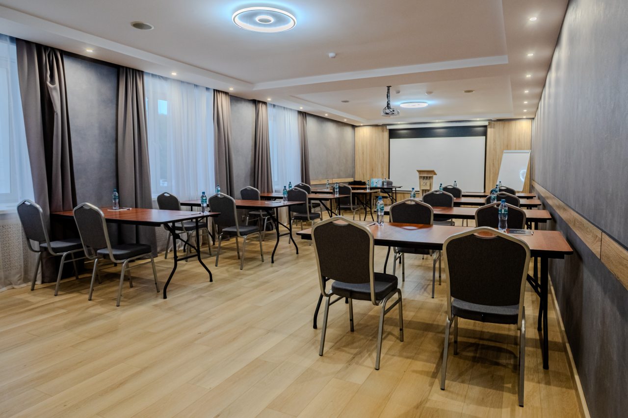 Отель предоставляет услуги организации и проведения деловых мероприятий. Светлые и просторные конференц-залы рассчитаны вместимость до 80 человек и полностью оснащены эргономичной мебелью, современной аудио и видеоаппаратурой и прекрасно подойдут для проведения совещаний, тренингов и конференций. Также имеется большой банкетный зал для проведения торжественных мероприятий.