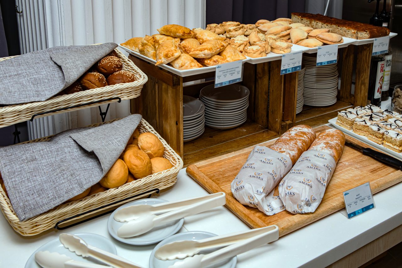 В «Амакс Сити отель» функционирует роскошный ресторан, который предлагает меню блюд европейской и национальной кухни, а также большой выбор вин и напитков. По утрам здесь подается завтрак в формате «шведский стол», обед и ужин можно выбрать за дополнительную плату. Отдохнуть в непринужденной обстановке можно в лобби-баре «Вояж» с чашечкой кофе или другими напитками, также здесь предлагают легкие закуски и выпечку собственного производства.
