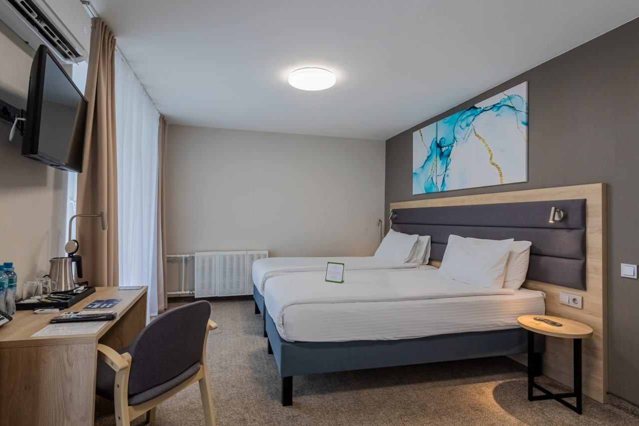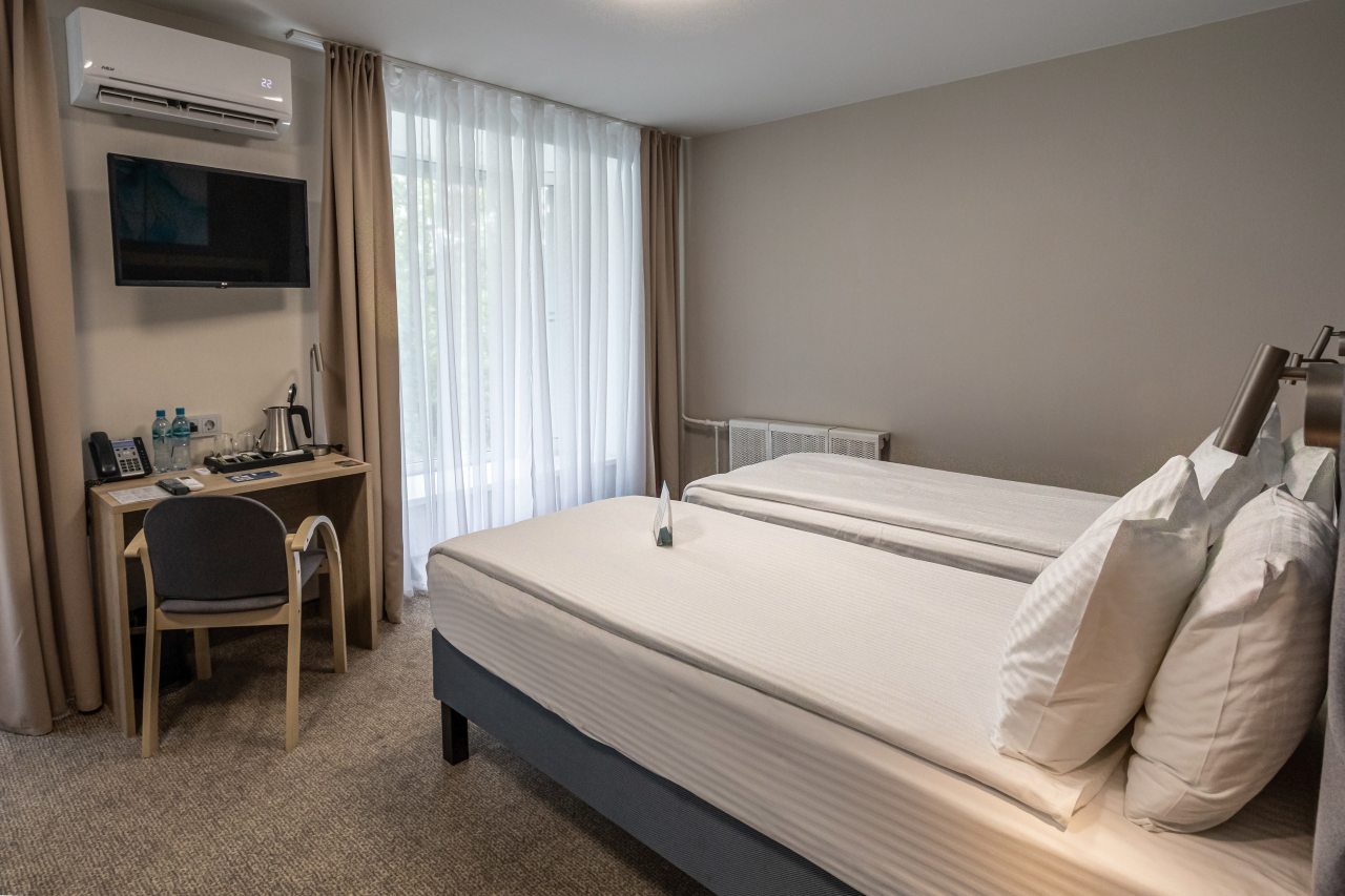 Отель предоставляет разнообразные номера от «Стандарта» до «Люкса», вмещающие до двух человек. В распоряжении гостей удобные кровати, телевизор, прикроватная мебель, светильники. Имеется индивидуальная ванная комната с принадлежностями для душа и комплектом полотенец. На всей территории предоставляется бесплатный Wi-Fi.
