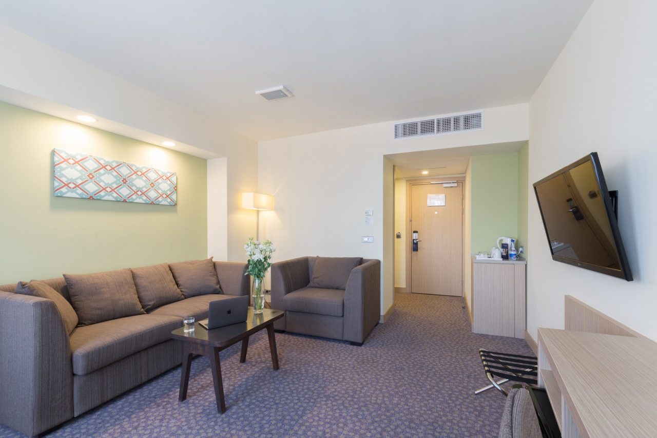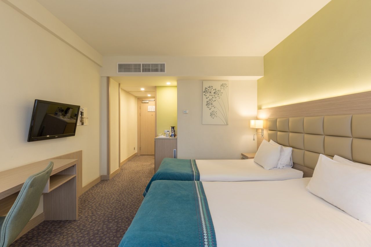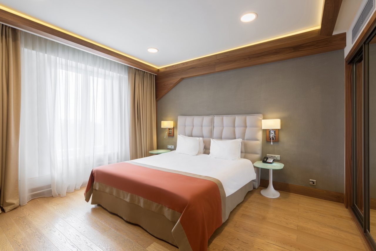 Обширный номерной фонд содержит 193 стильных и уютных номера. Для комфортного отпуска в них есть кондиционер с климат-контролем, спутниковое телевидение, сейф и мини-бар. Заниматься работой и учёбой гораздо легче с рабочей зоной — письменным столом, стулом и лампой.