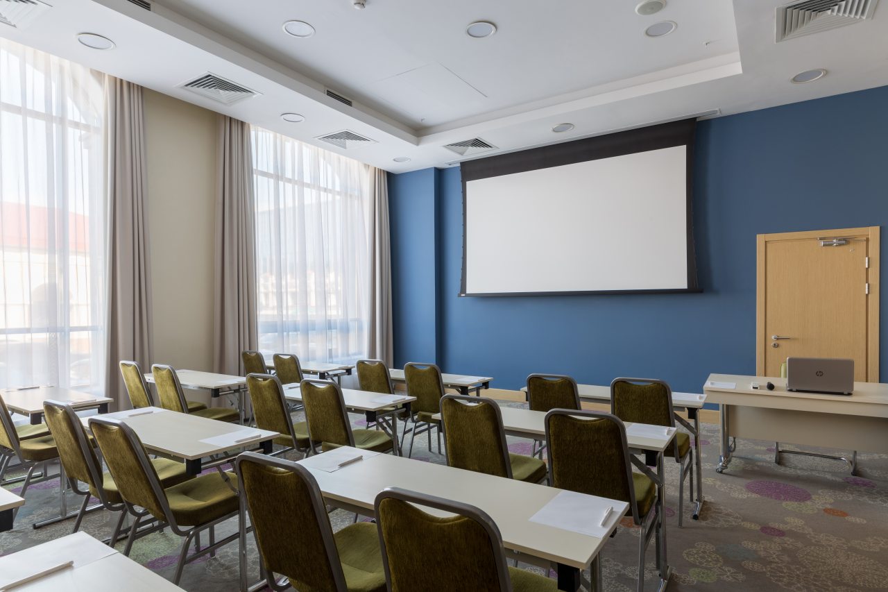 Площадь конференц-зала — 52 кв.м., размещение — до 50 человек.