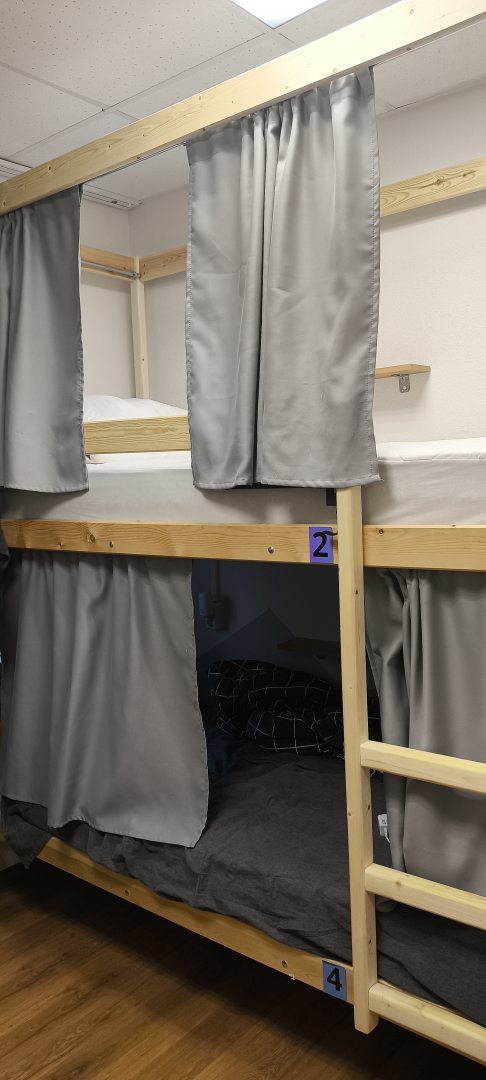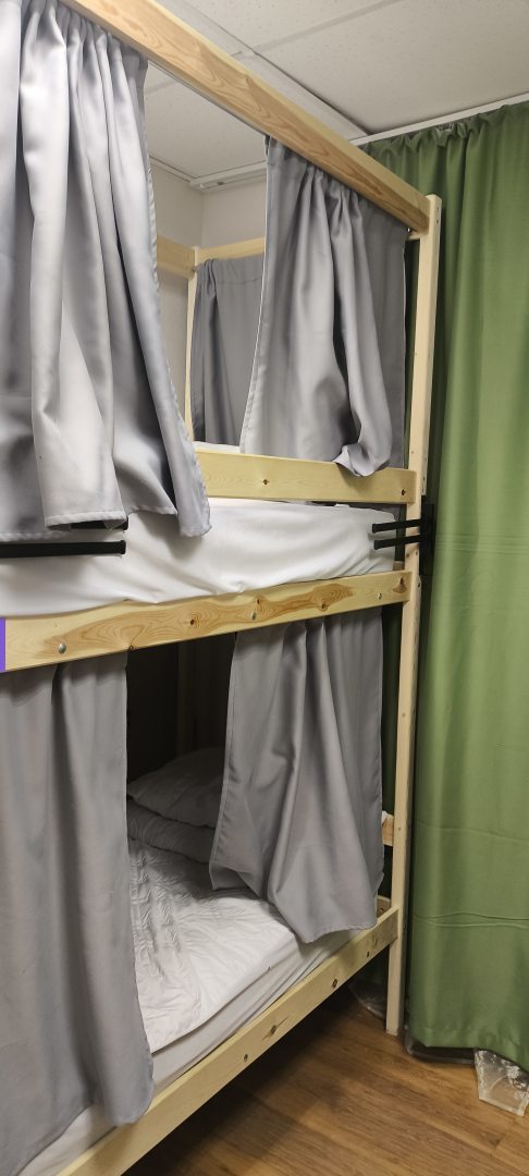 Для размещения гостей предложены койко-места в различных номерах: «Четырехместный общий», «Женский шестиместный» и «Десятиместный общий». Все они выполнены в одинаковом современном стиле и укомплектованы: удобным спальным местом с комплектом свежего белья, индивидуальными занавесками, полочкой.