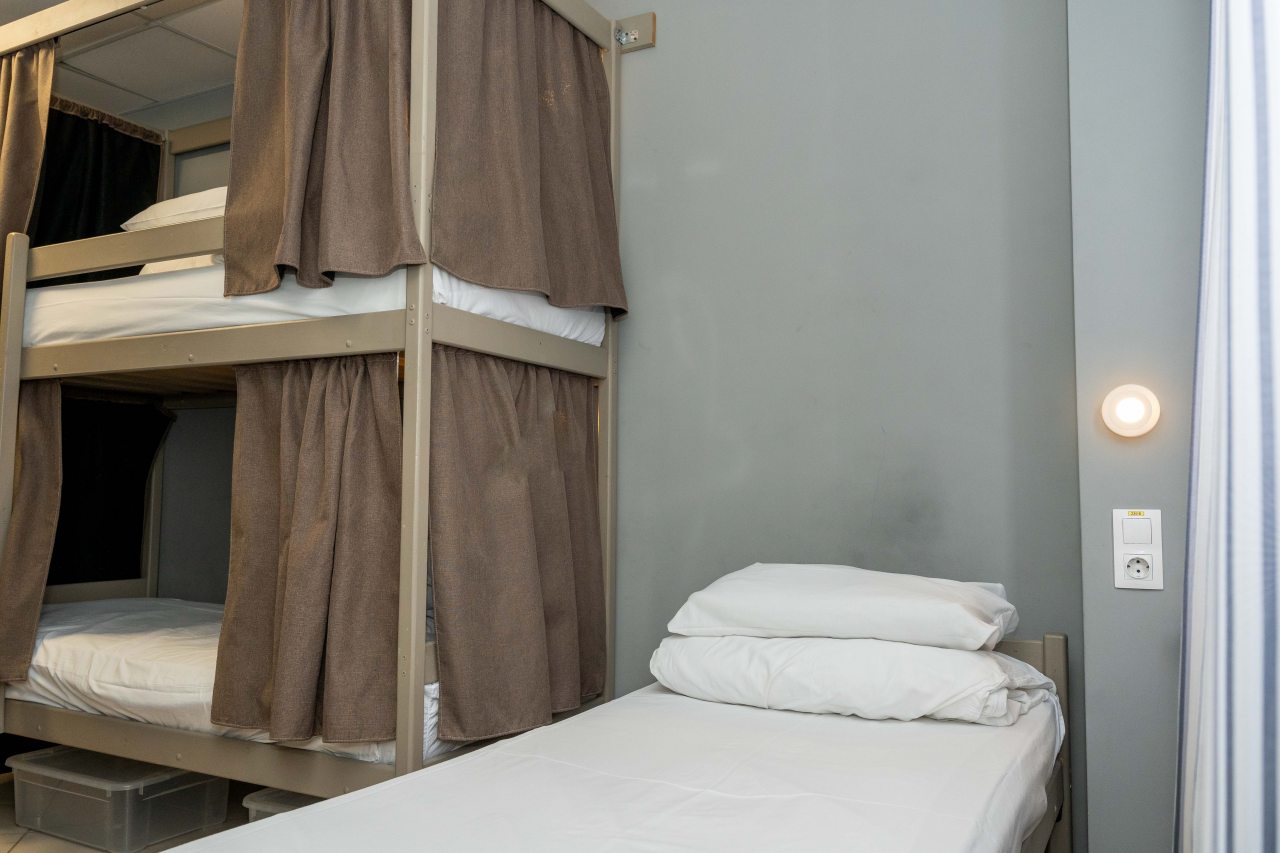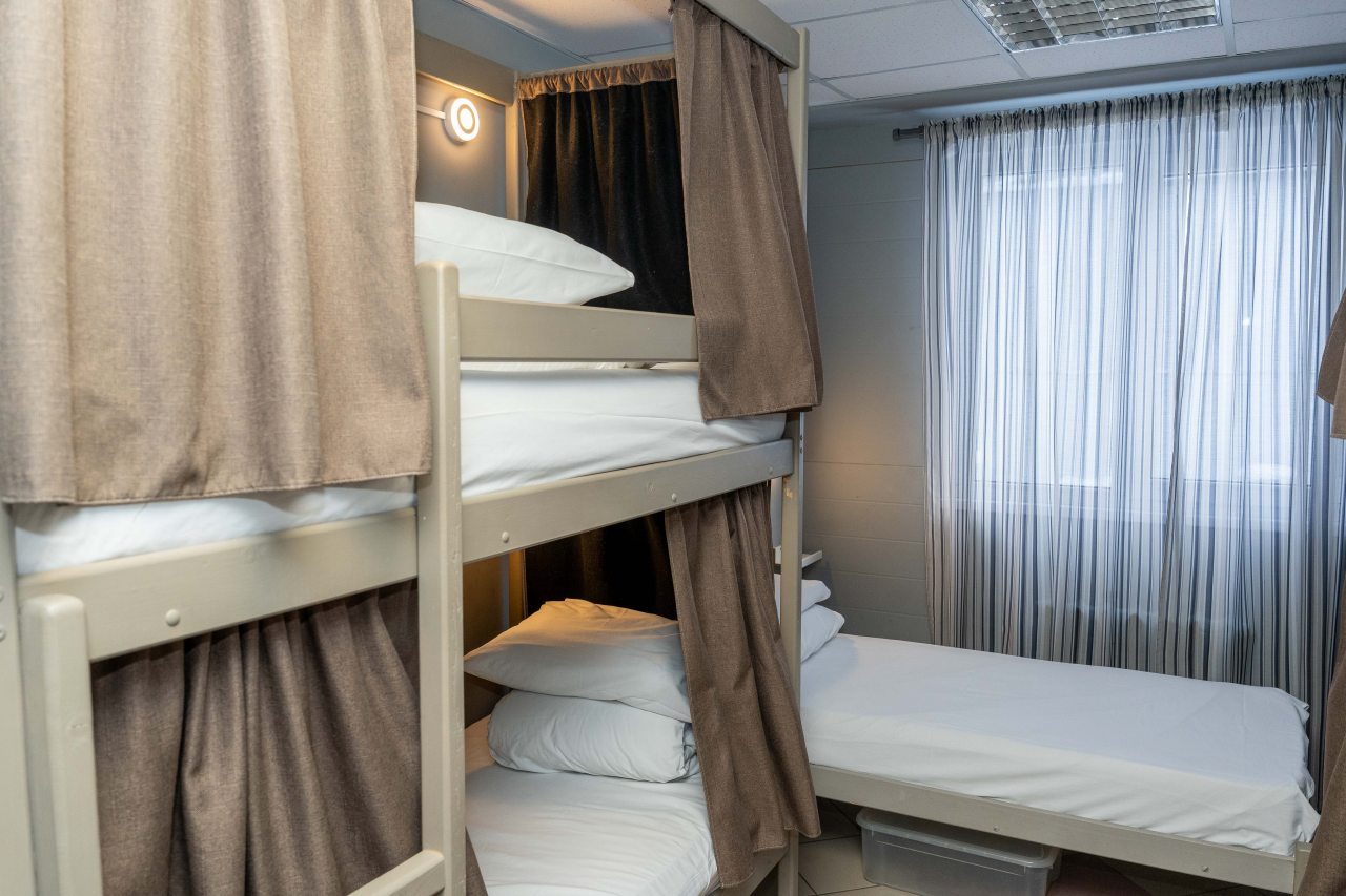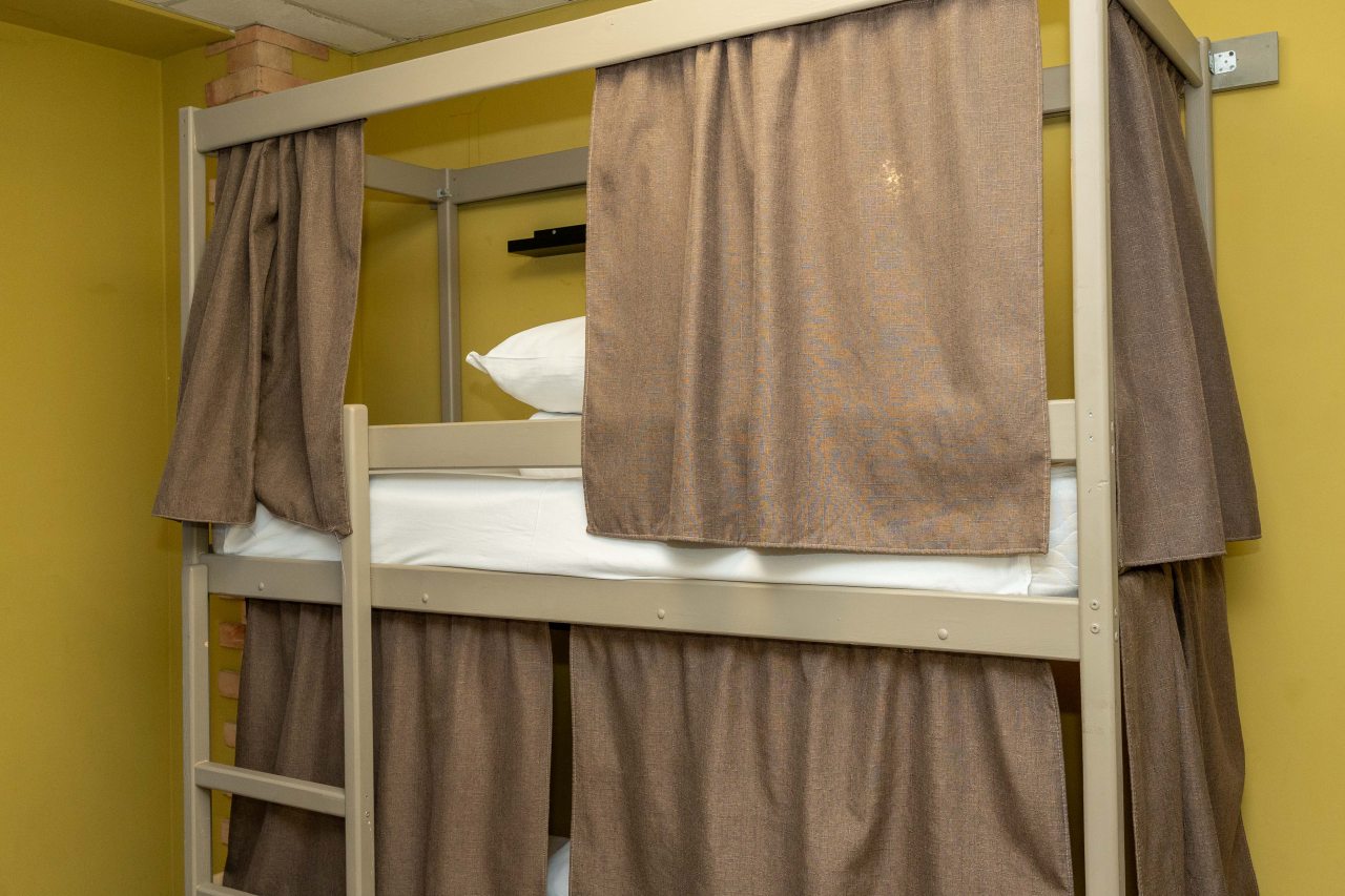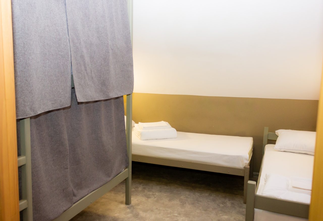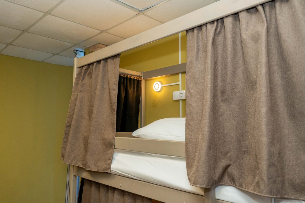 К размещению представлены двухместные и общие номера с современной обстановкой. Они обустроены двухъярусными кроватями со шторками, около каждого спального места имеются розетки и настенные светильники. Удобства находятся на этаже. На всей территории работает Wi-Fi.