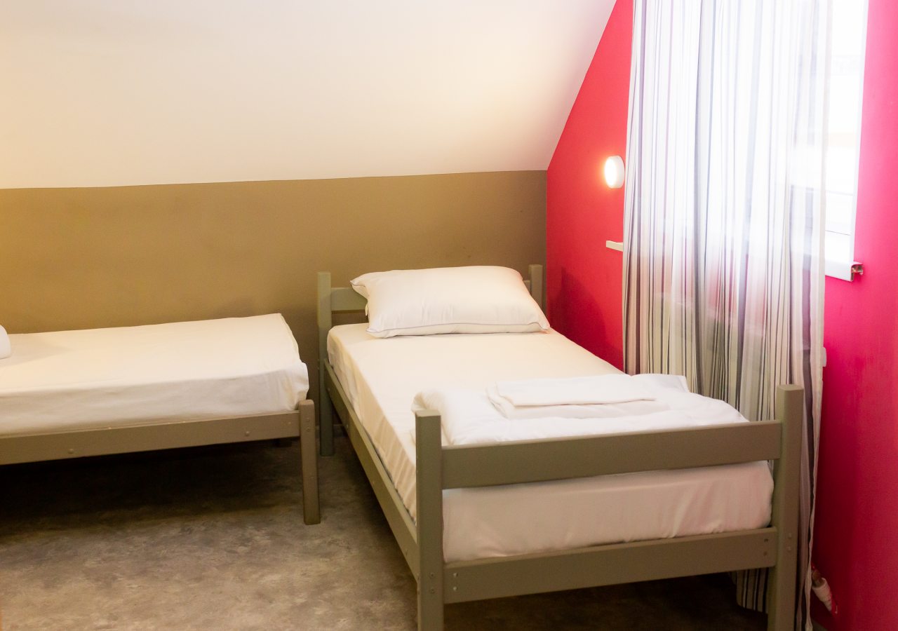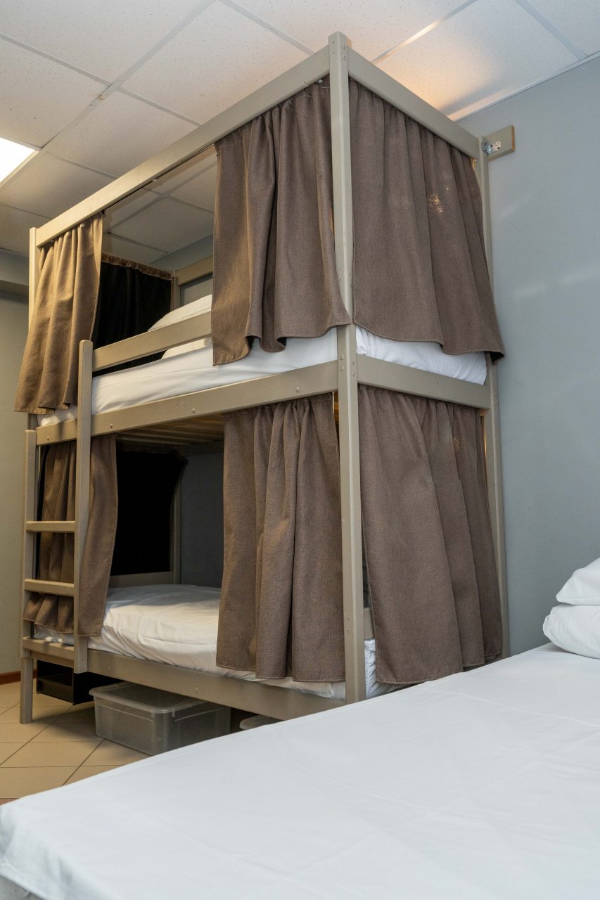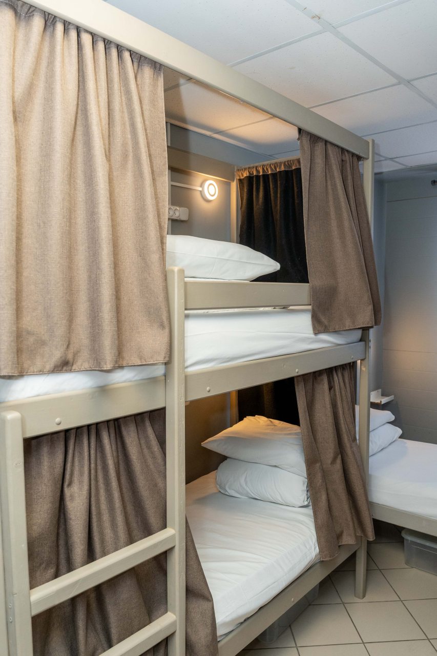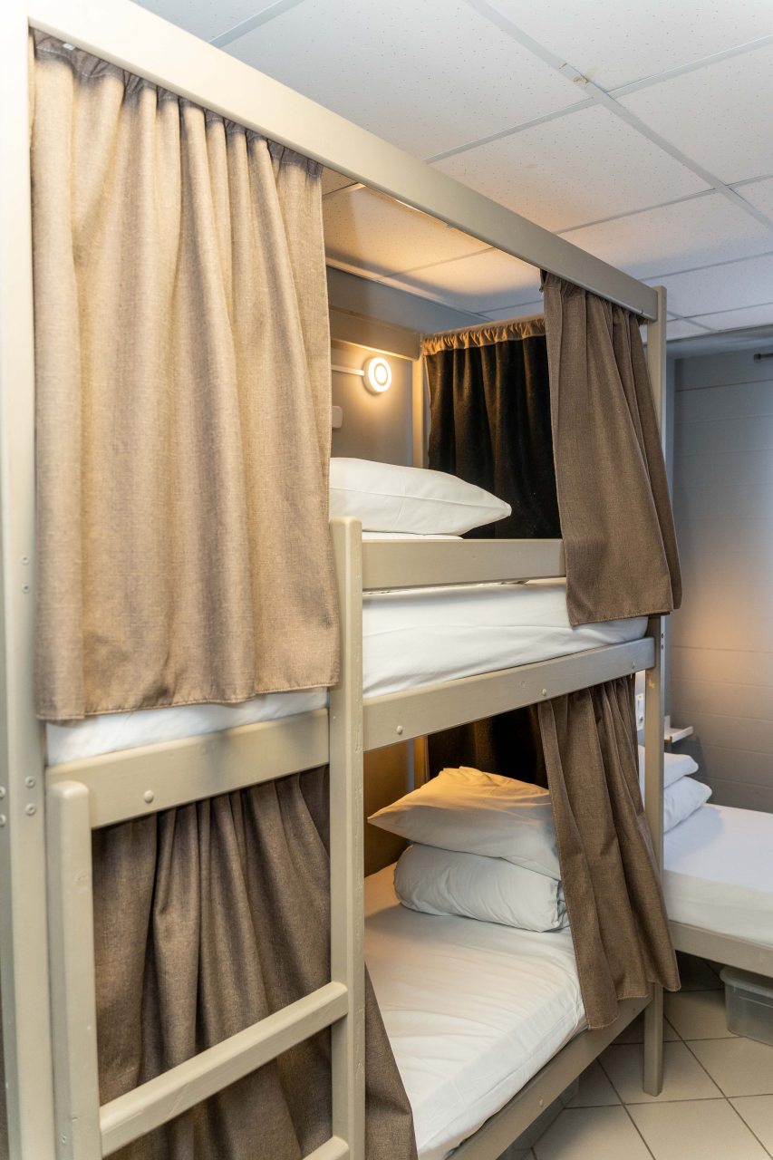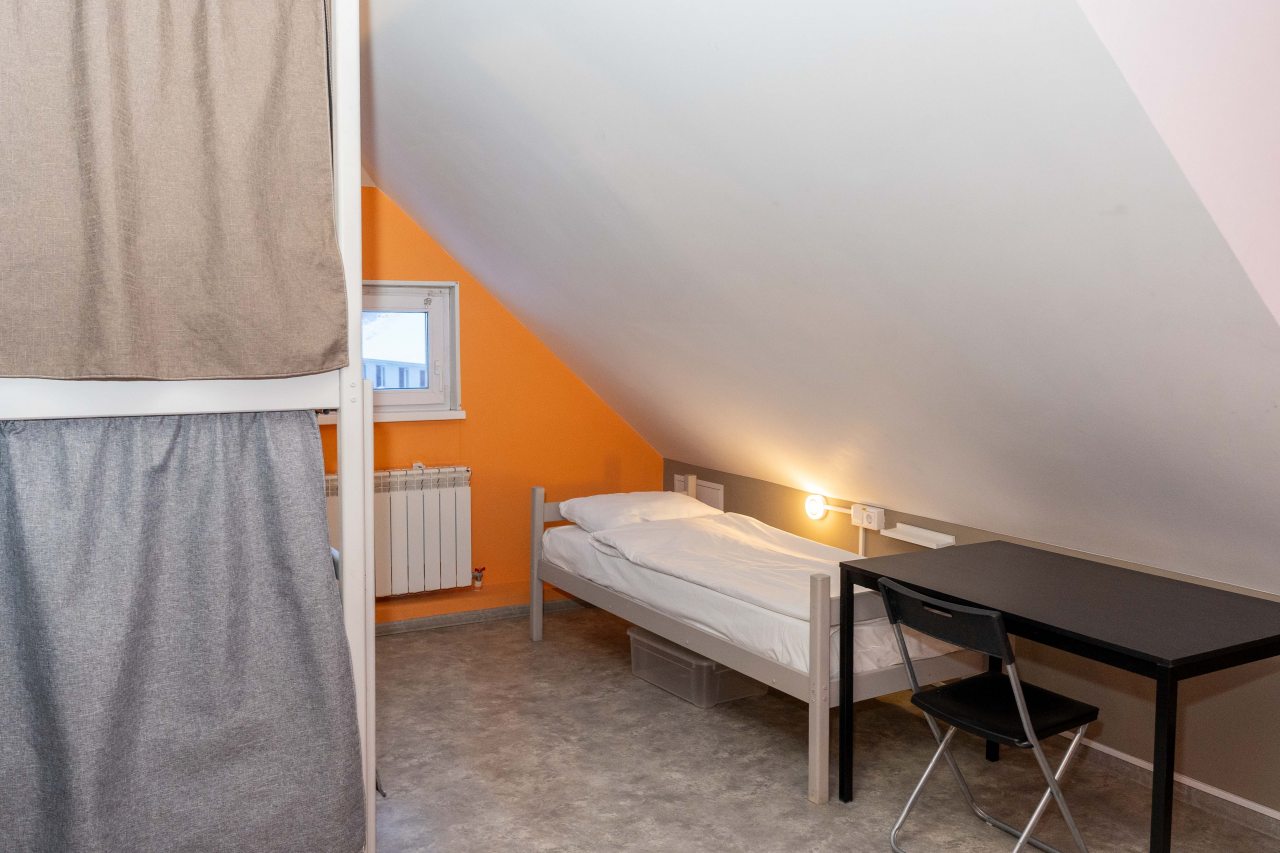 К размещению представлены двухместные и общие номера с современной обстановкой. Они обустроены двухъярусными кроватями со шторками, около каждого спального места имеются розетки и настенные светильники. Удобства находятся на этаже. На всей территории работает Wi-Fi.