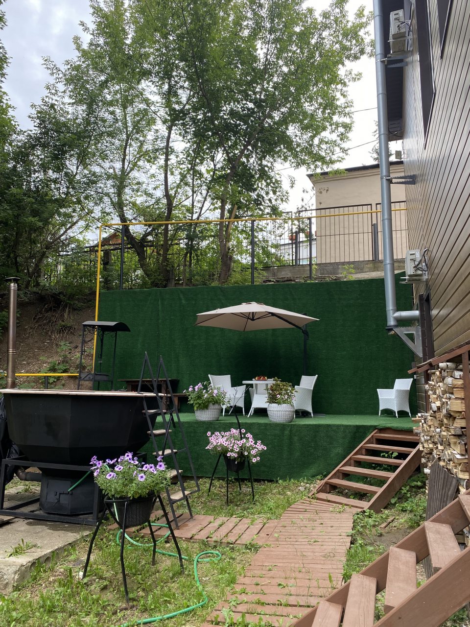 Для парковки места нет, так стояли две машины возле окон.
