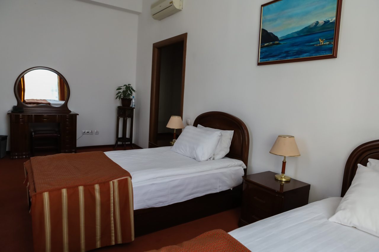 Добрый день. Я с подругами была впервые в вашем городе. Гостиницу выбрала, честно говоря, наугад))))))Понравилось абсолютно все. Приветливые администраторы на рессепшен, номер был чистым, очень понравился завтрак - было действительно вкусно. В отель мы пришли рано, так как наш поезд прибыл в начале седьмого утра, с ранним заездом не получилось, но нам разрешили оставить свои сумки на ресепшене(чему мы были очень рады, так как в планах было посетить Ринпоче Багша и Иволгинский Дацан), так же нам оформили поздний выезд. В цоколе находится замечательная сувенирная лавка из которой мы долго не могли выйти)))) по причине того, что многое хотелось купить)))))) Вообщем, все остались очень довольны. в номере было все, что указано на сайте и цена очень приемлема, учитывая все то, что было включено в эту оплату. Фото в номере и вид из окна, извините, нету)))))) Удобное месторасположение!