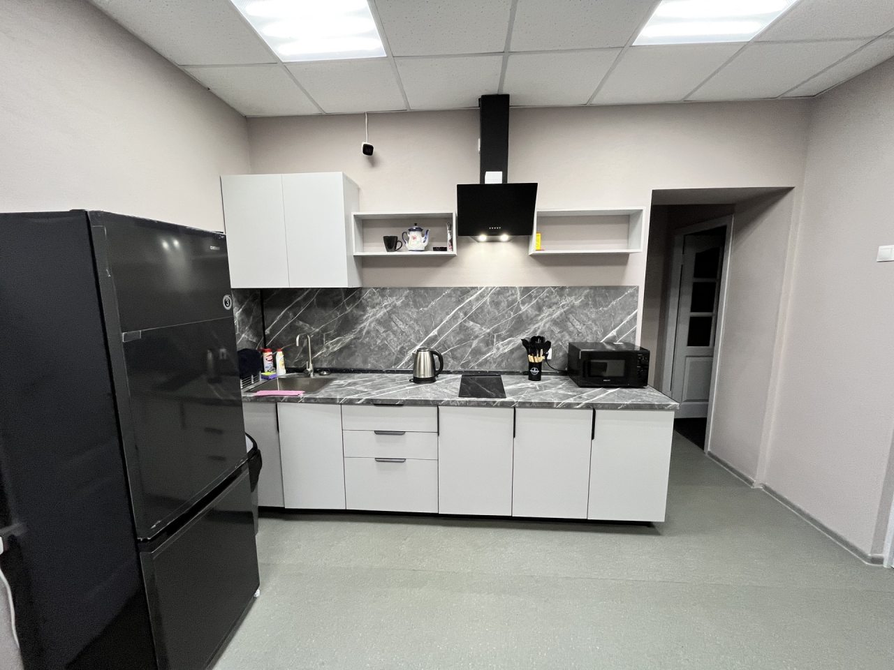 Для дополнительного комфорта предусмотрена общая кухня с варочной панелью, СВЧ, посудой, холодильником, чайником, обеденной зоной, чтобы вы могли в любой момент порадовать себя любимой едой и напитками.