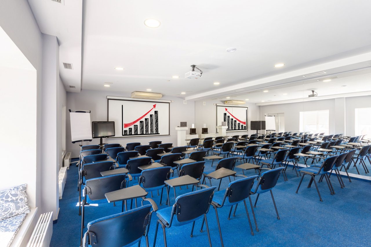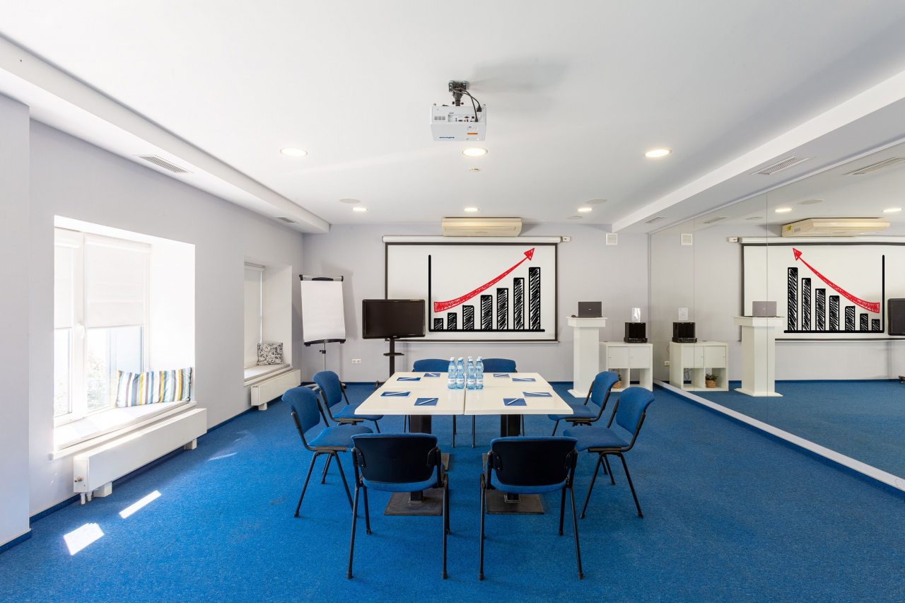 В гостинице для проведения деловых мероприятий, бизнес - встреч и конференций предоставляется конференц-зал на 40 человек площадью 60 кв. м. Из оборудования имеется: ноутбук, мультимедийное оборудование и демонстративные доски.