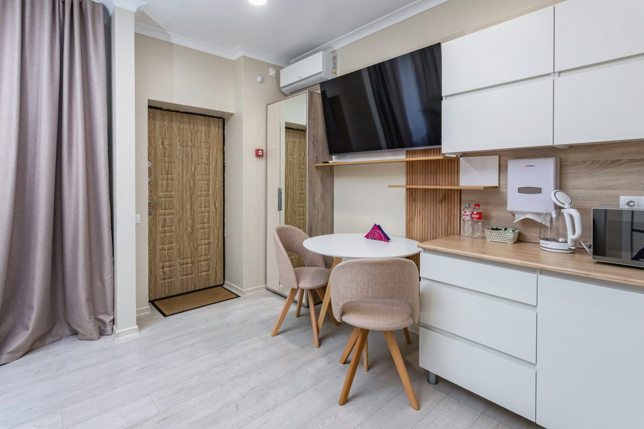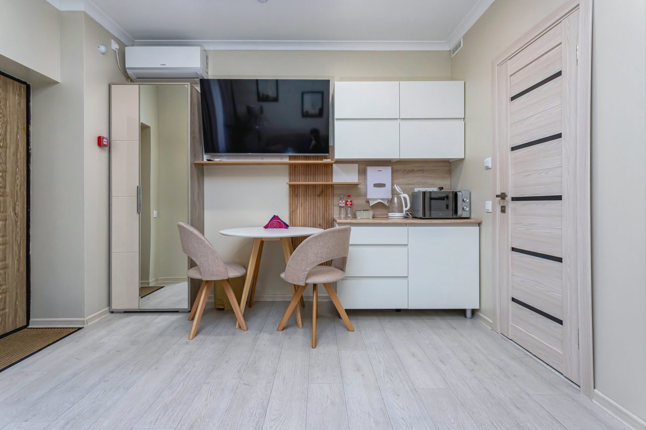 Ольга добрый день! Благодарим вас за выбор нашего отеля и ваш честный отзыв! Микроволновку на кухне осмотрели, она действительно поржавела вверху, обязательно заменим.