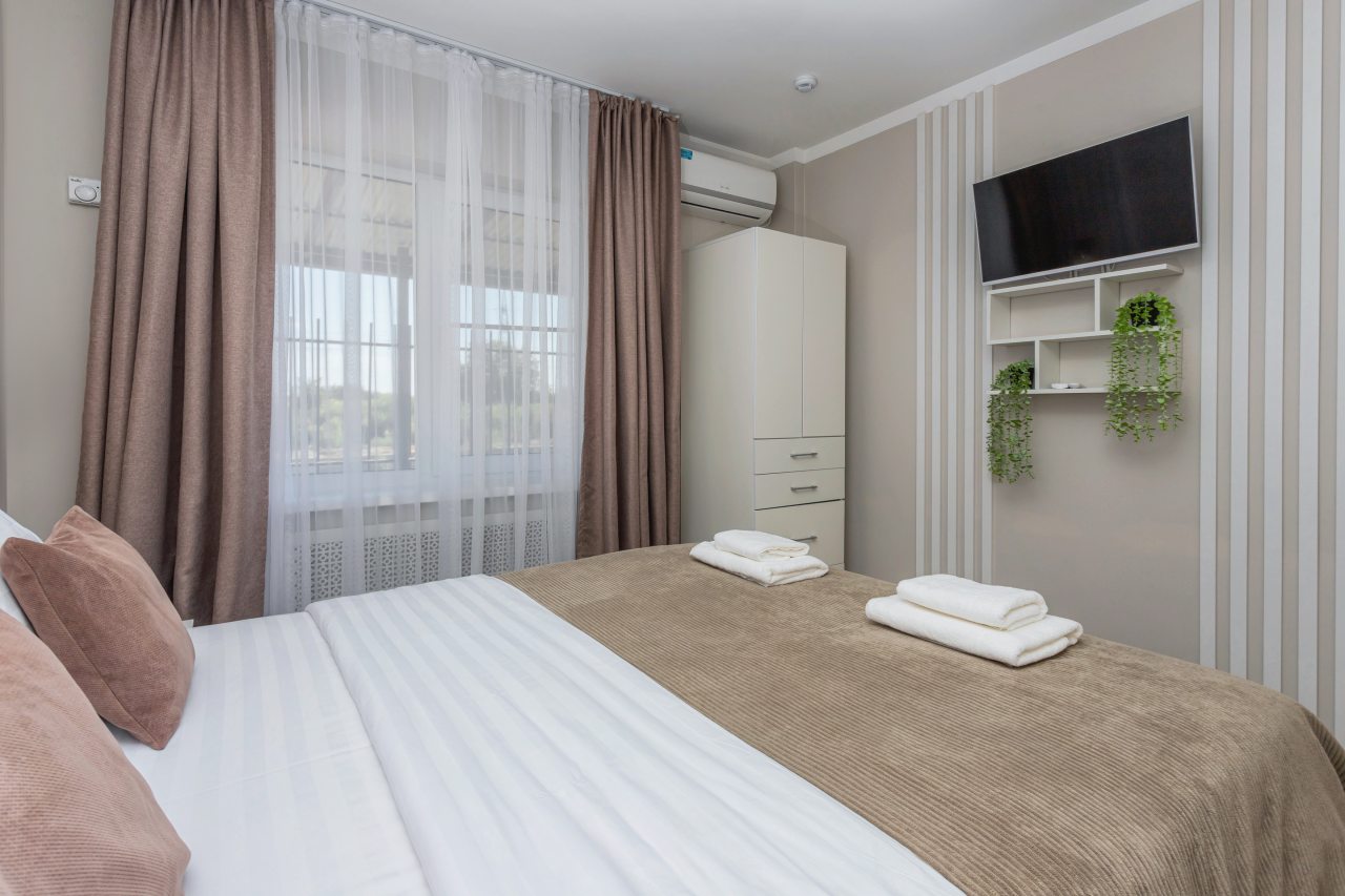 Расположение радует — всё рядом: и аптека, и кафе, и торговый центр. Номера просторные, не ощущаешь тесноты, приятно удивили панорамные окна. Кондиционер работает стабильно, в жаркую погоду это важно. Ресепшн работает чётко, заселение занимает минимум времени. Есть уютная зона с креслами, где можно провести вечер за книгой. На территории в целом тихо, никто не мешает. Подходит как для деловой поездки, так и для семейного визита.