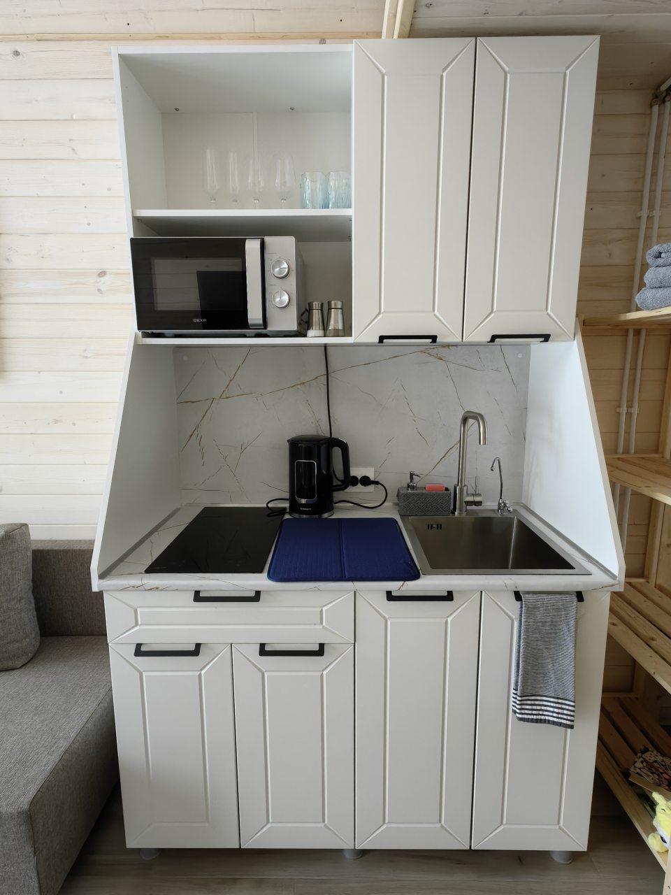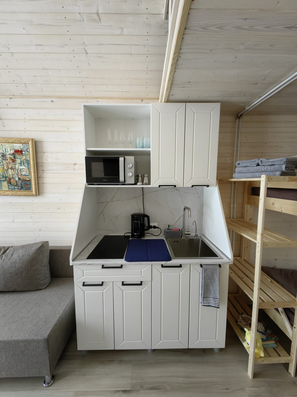 Оборудована кухонная зона со всеми необходимыми приборами. На мангале можете приготовить шашлыки.