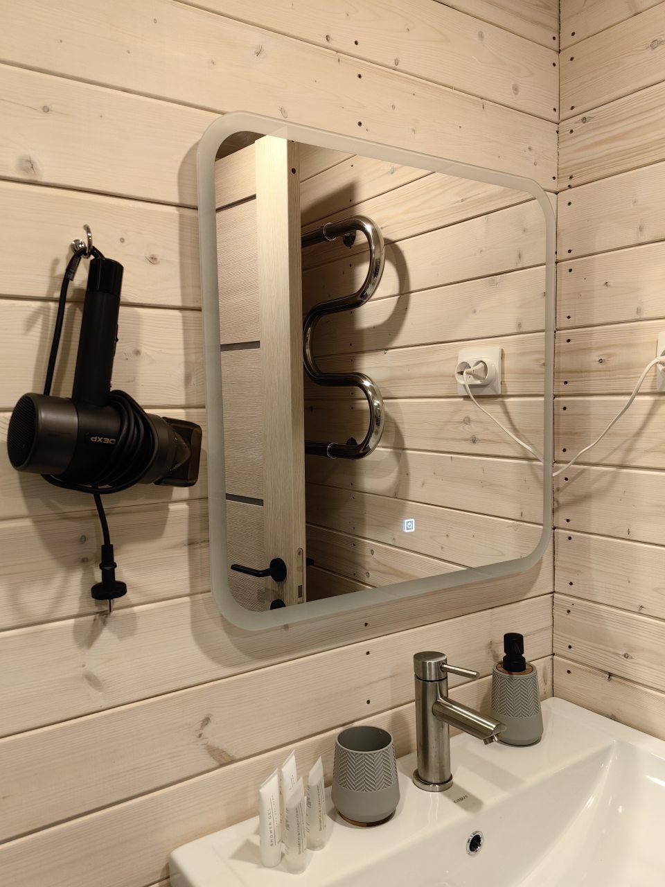 Окошко во весь рост, красивые виды. База недалеко от деревни, но это не мешает, вокруг замечательная природа и привлекательные пейзажи. Внутри тепло и чисто, много дерева. Все условия для отдыха созданы на 100 балов. Будем приезжать еще, конечно!