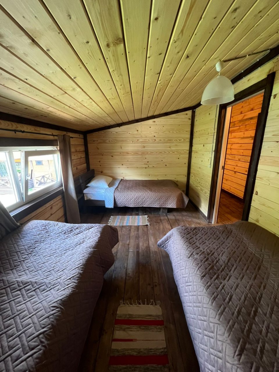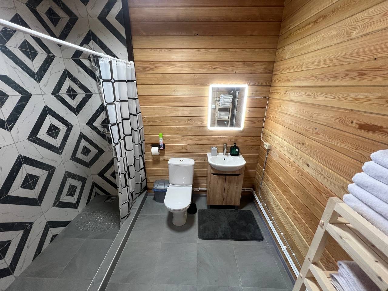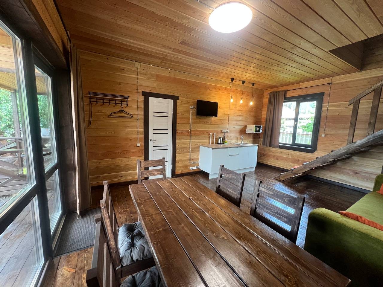 На территории оборудованы две бани с купелью в каждой и верандой, откуда открывается вид на речку, а также беседки с мангалом и зоной отдыха, детский городок, спортивная и детская площадки, бассейн с подогревом, автостоянка. Расстояние до железнодорожного вокзала — 123,9 км, а до аэропорта — 50,1 км.