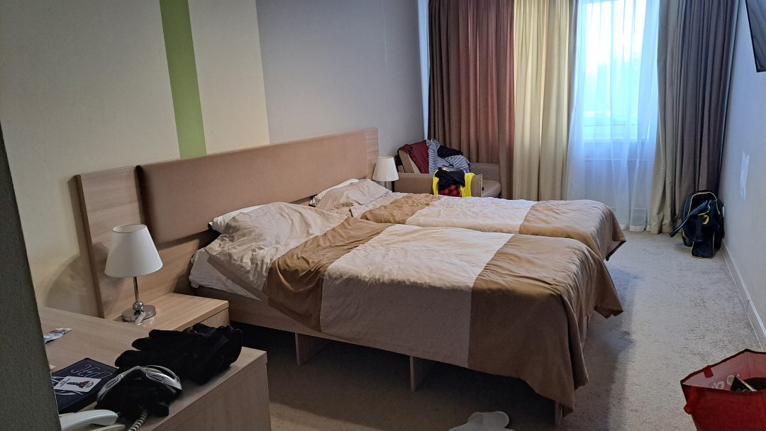 Проживали на Новогодних каникулах большой компанией. Заселили поздно, не были готовы номера у них. Три номера были без шкафов для одежды, очень не удобно, только один номер на 4 этаже был хороший. Остальные были плохо убраные. Питались в кафе шведский стол. Очень вкусно. Расположение удобное, всё рядом. Есть комната для сушки горнолыжных ботинок и лыж.