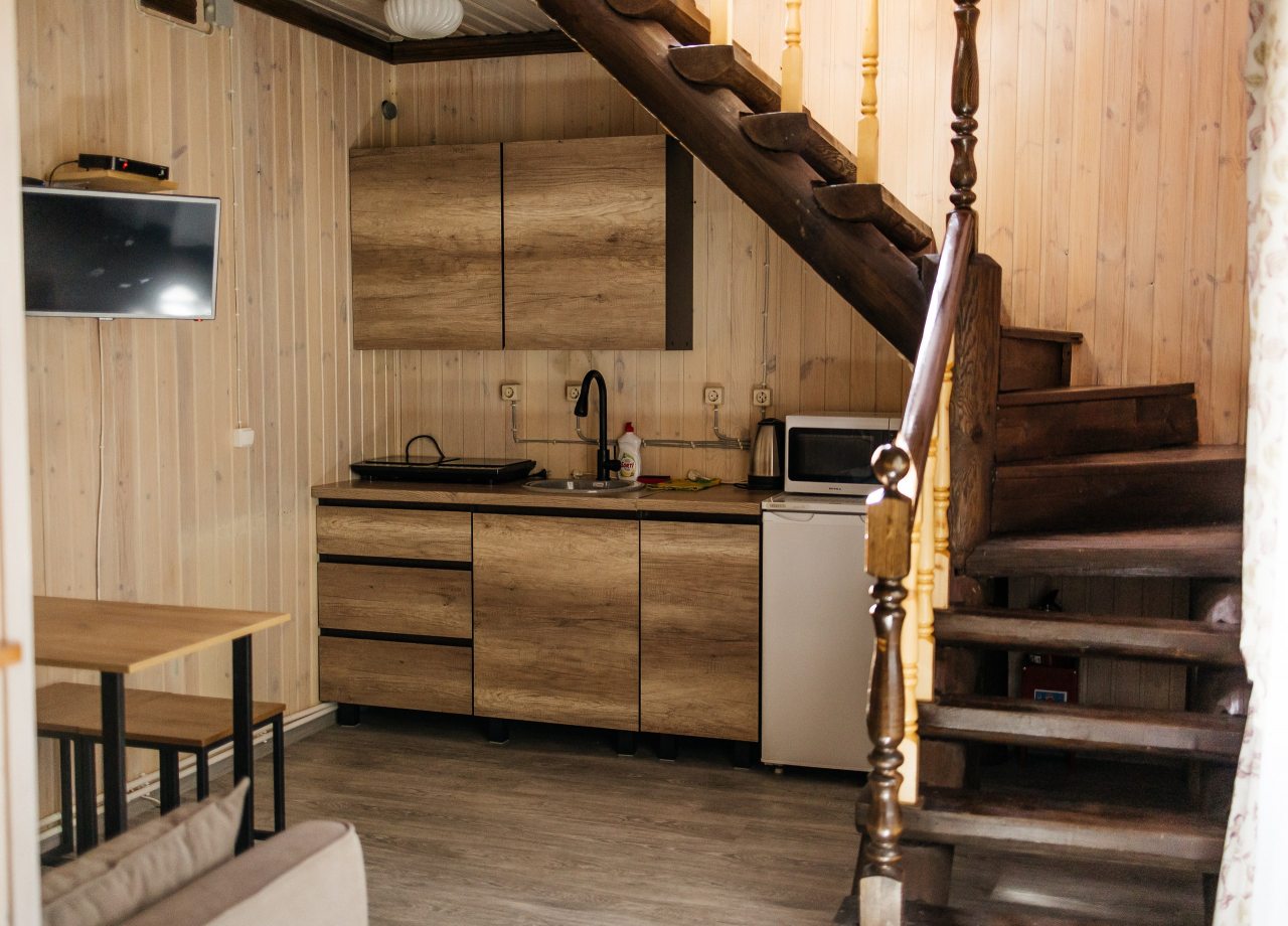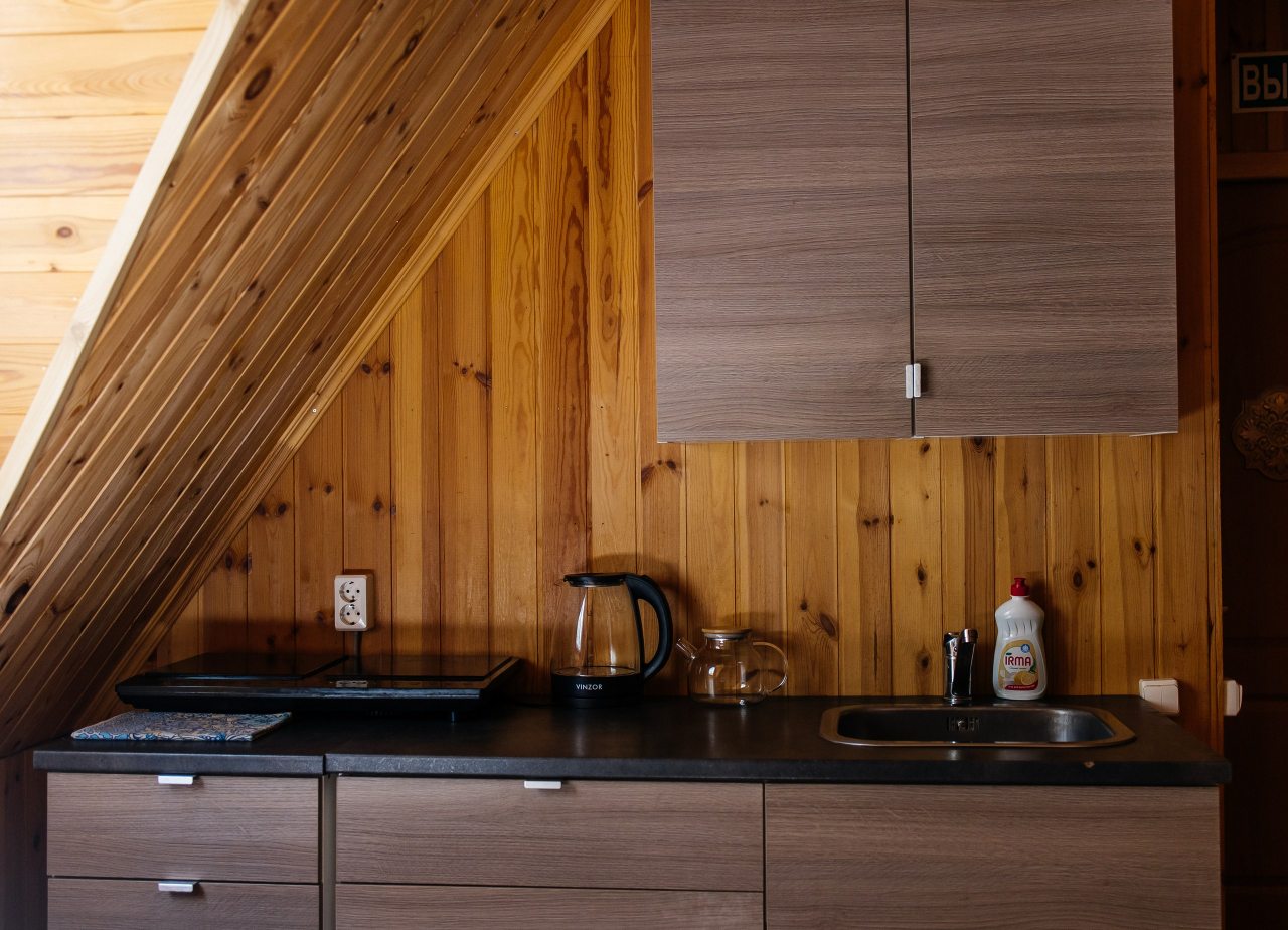 На кухне имеется разнообразная бытовая техника, включая чайник, плиту и холодильник, чтобы вы могли готовить любимые блюда и напитки. Также предусмотрена мангальная зона.