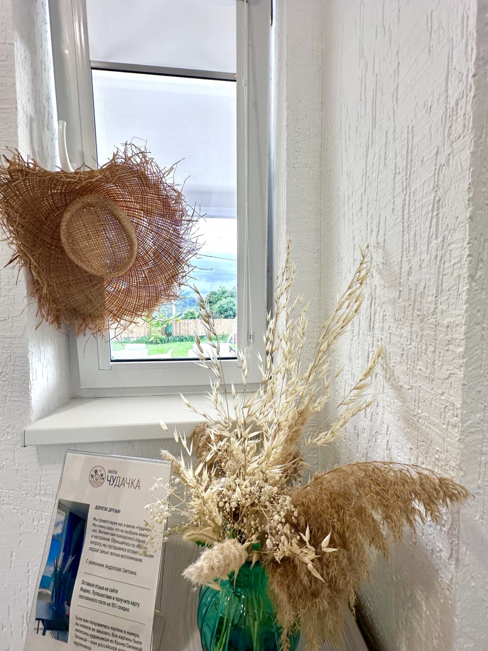 Гостевой дом «Вилла Чудачка» — идеальное место для отдыха, которое станет вашим пристанищем от гула городских улиц и поможет восстановиться в окружении зеленых холмов и чистейшего воздуха. Особый характер интерьеру придают работы художницы Татьяны Синяевой. До моря 10 минут прогулочным шагом. Здесь вы можете найти уединенные пляжные места, где можно с комфортом провести время, наслаждаясь морским бризом.