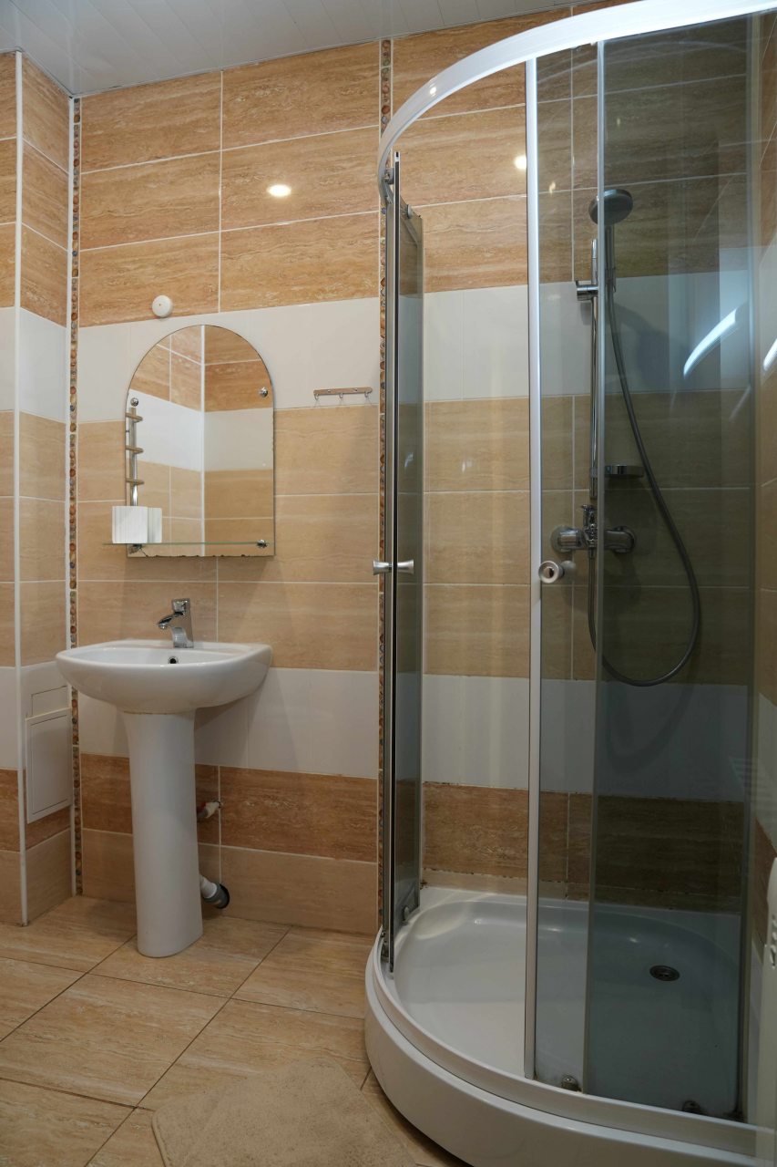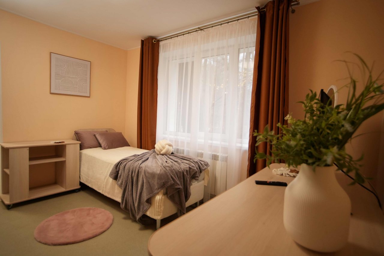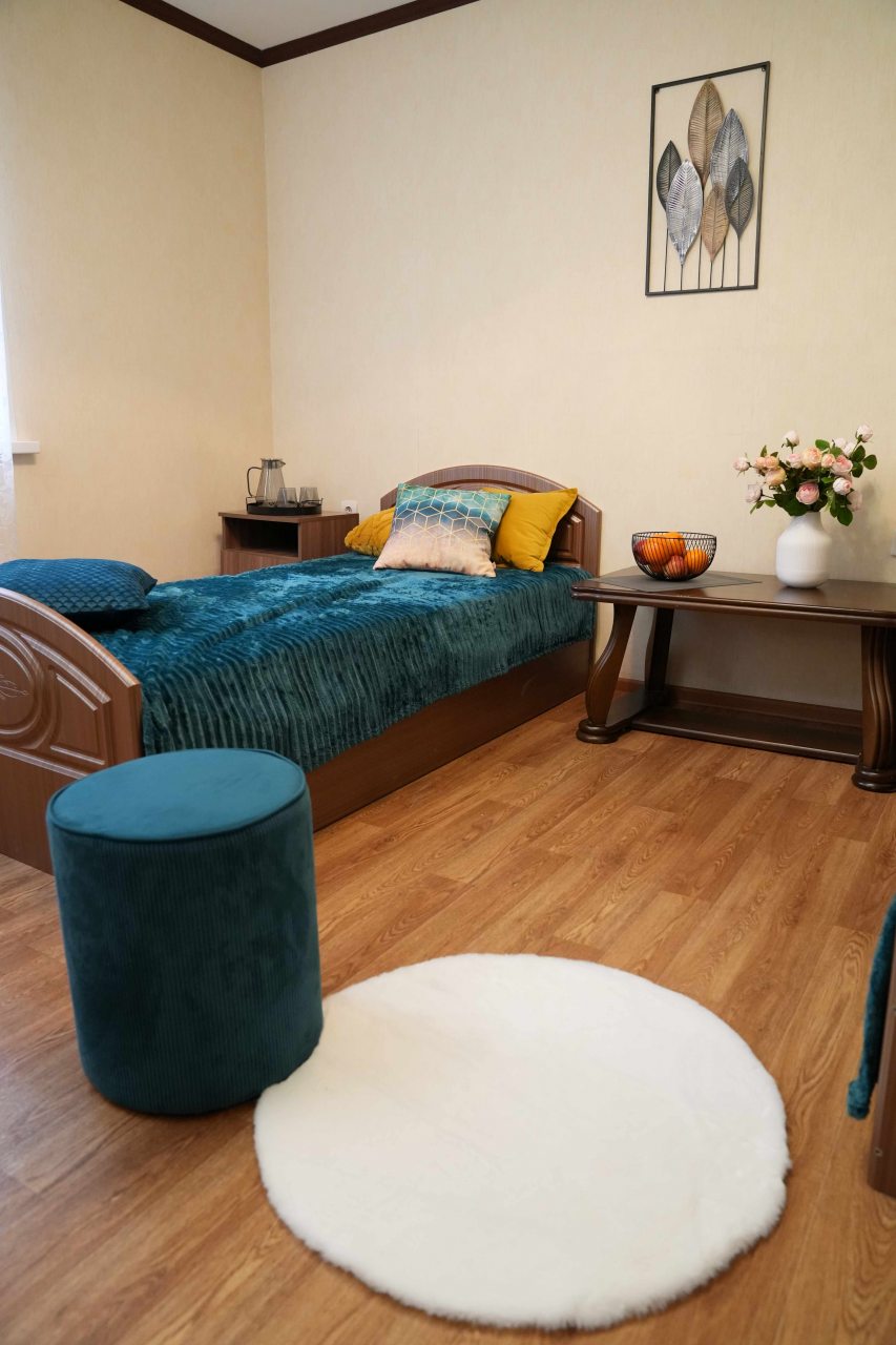 Для проживания доступны номера различные по вместимости, поэтому этот вариант подойдет как для индивидуального, так и для семейного отдыха. Внутри каждого — удобная кровать, мебель для хранения вещей и санузел с душем и необходимой сантехникой.
