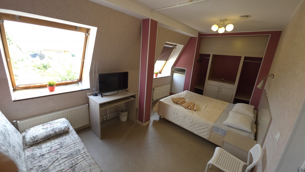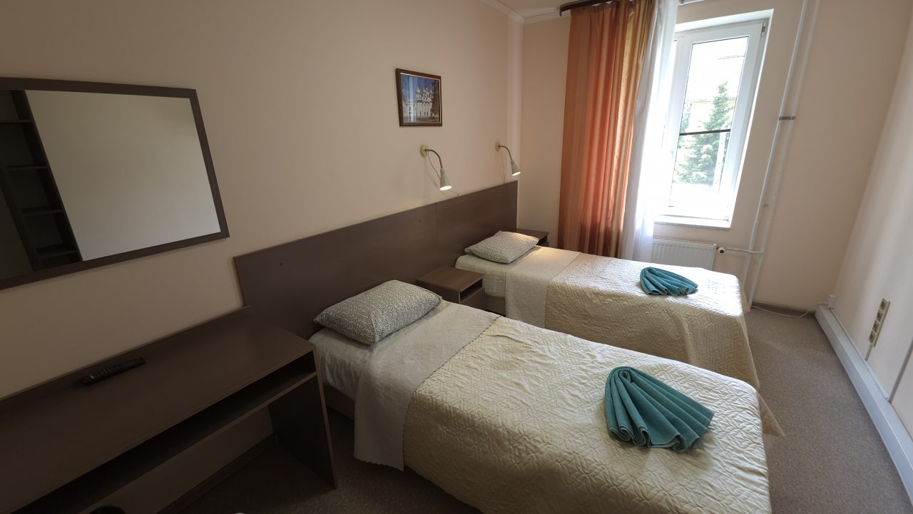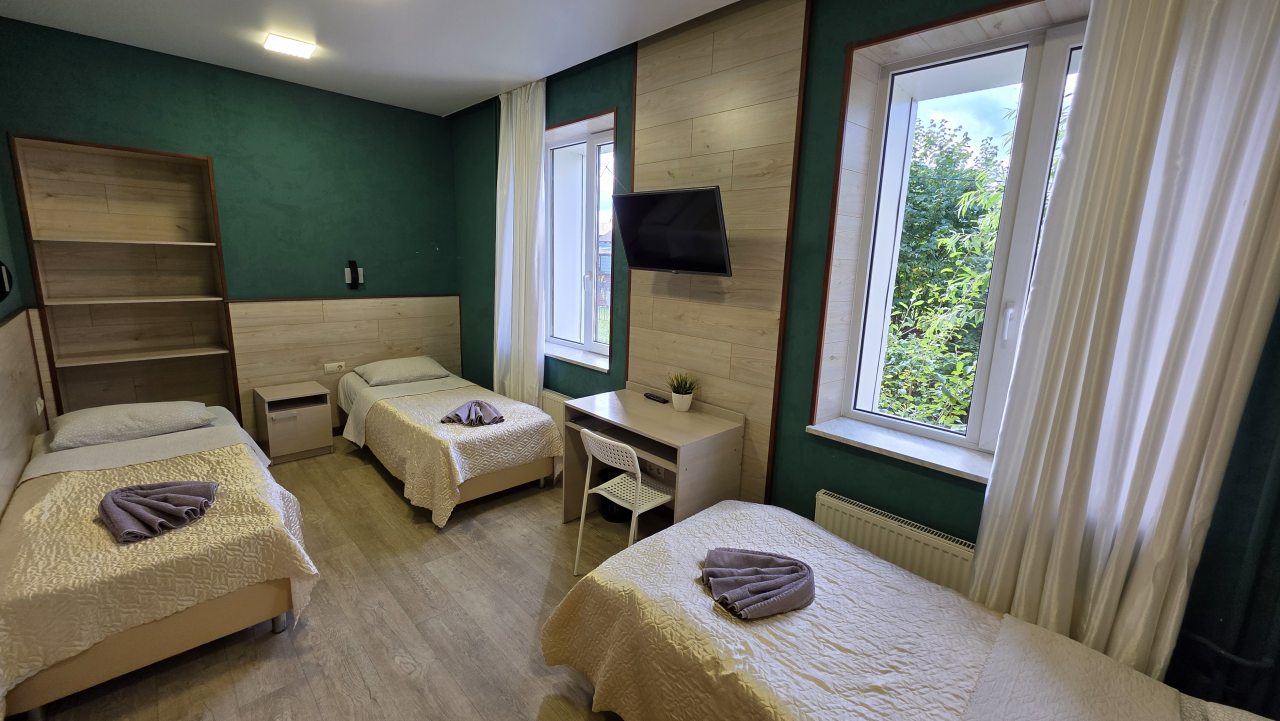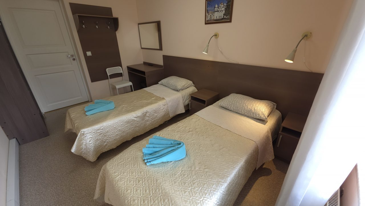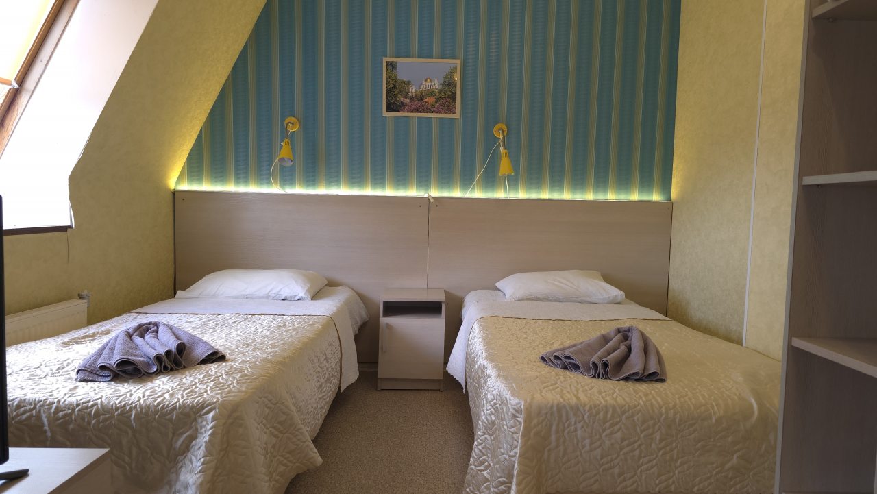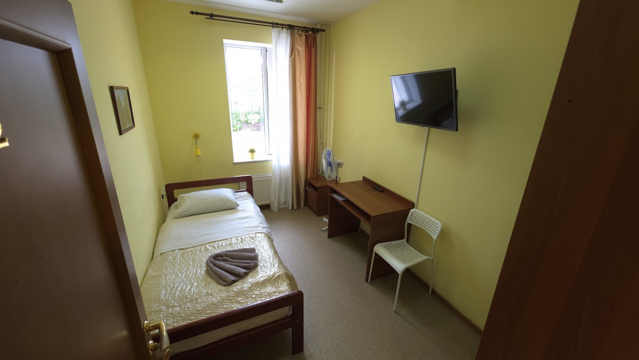 К размещению гостей представлены комнаты разной вместимости и уровня комфорта. Они оформлены в классическом стиле и оснащены всей необходимой мебелью для комфортного времяпровождения и отдыха. Комнаты имеют общие удобства на этаже, что позволит сэкономить бюджет во время поездки.