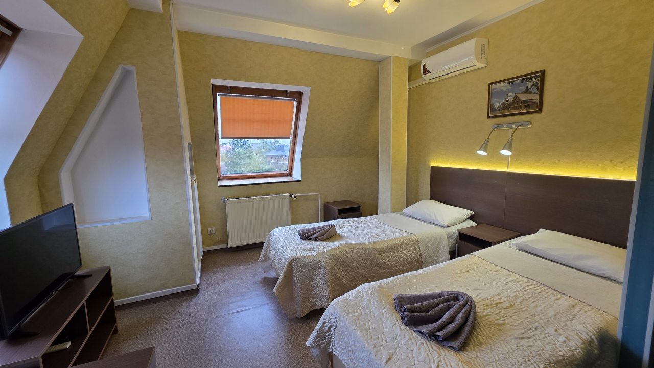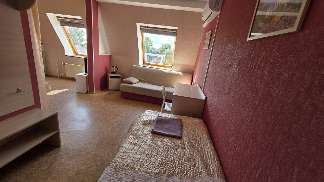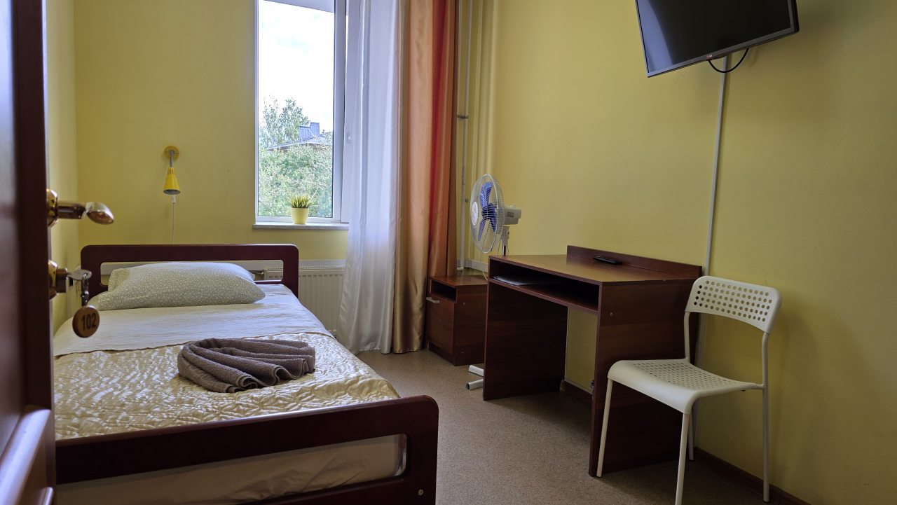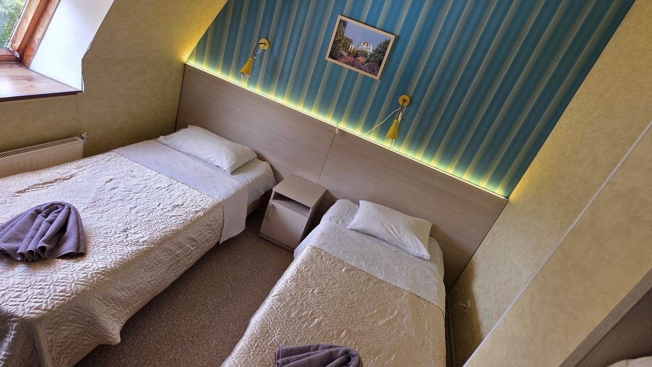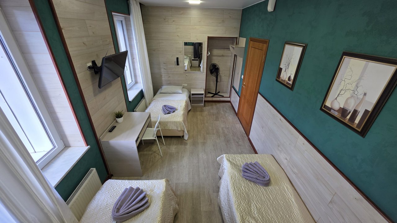 К размещению гостей представлены комнаты разной вместимости и уровня комфорта. Они оформлены в классическом стиле и оснащены всей необходимой мебелью для комфортного времяпровождения и отдыха. Комнаты имеют общие удобства на этаже, что позволит сэкономить бюджет во время поездки.