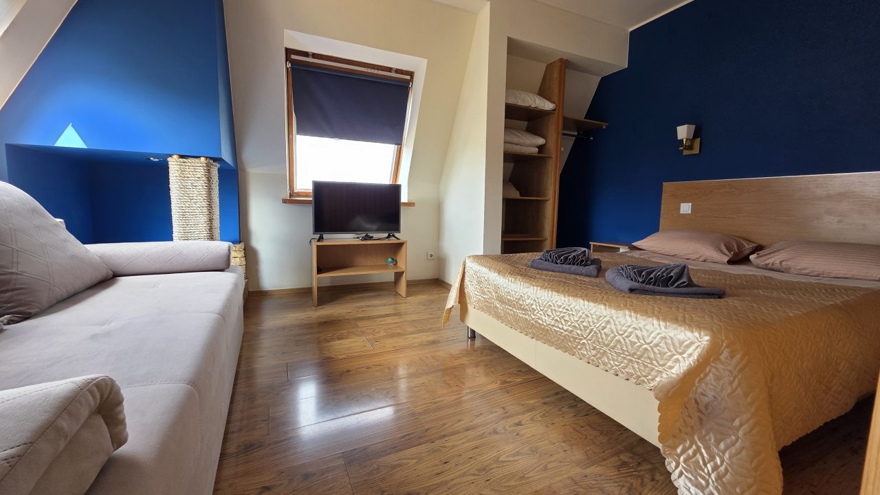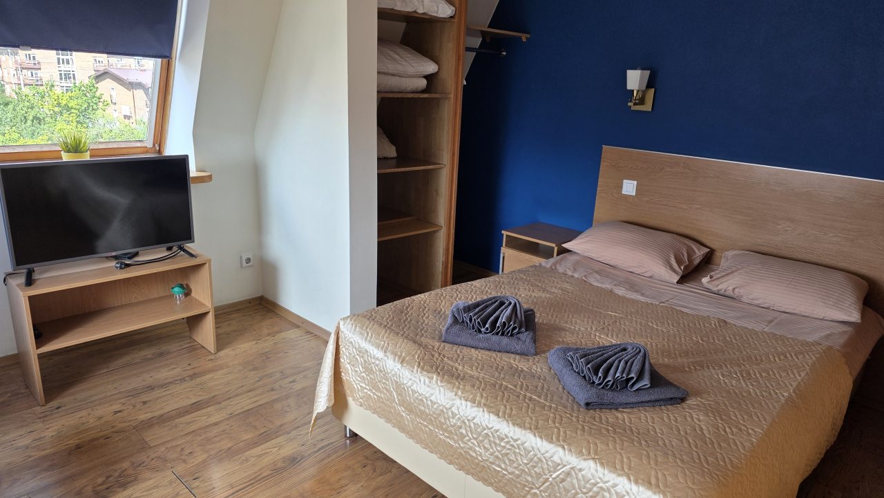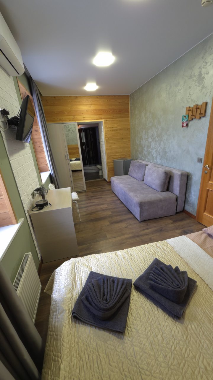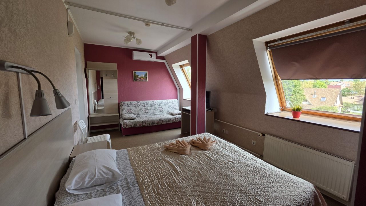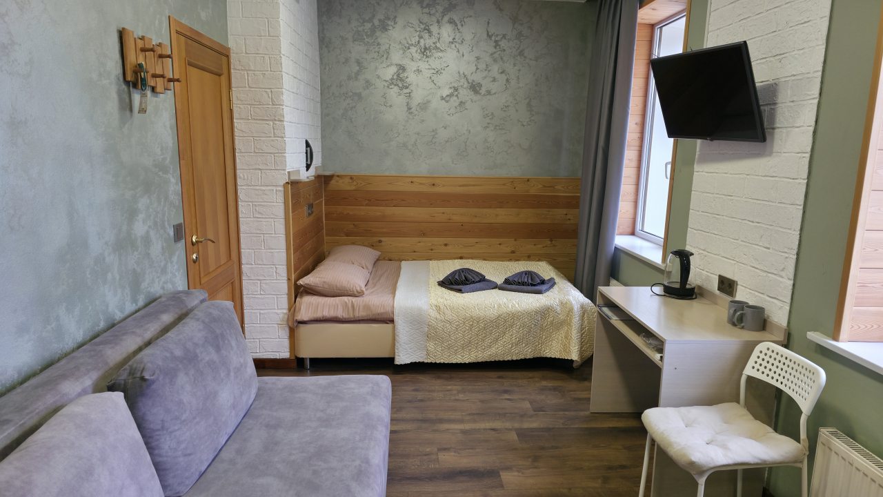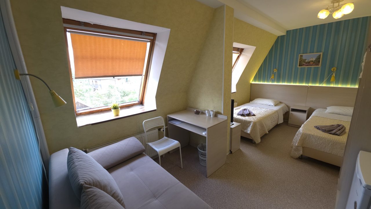 К размещению гостей представлены комнаты разной вместимости и уровня комфорта. Они оформлены в классическом стиле и оснащены всей необходимой мебелью для комфортного времяпровождения и отдыха. Комнаты имеют общие удобства на этаже, что позволит сэкономить бюджет во время поездки.