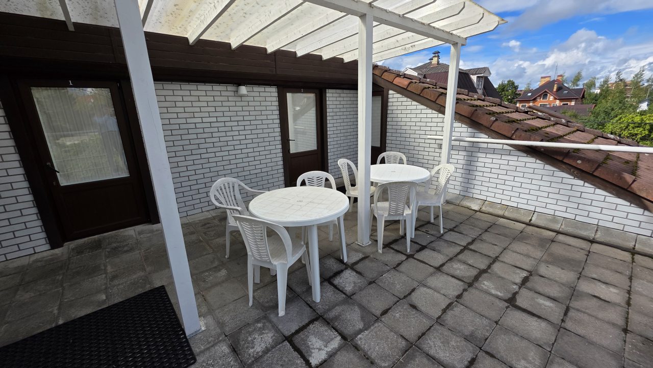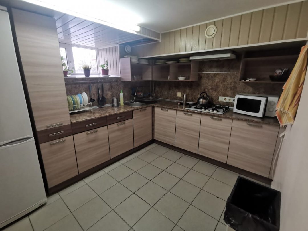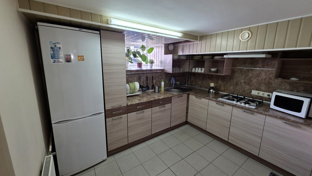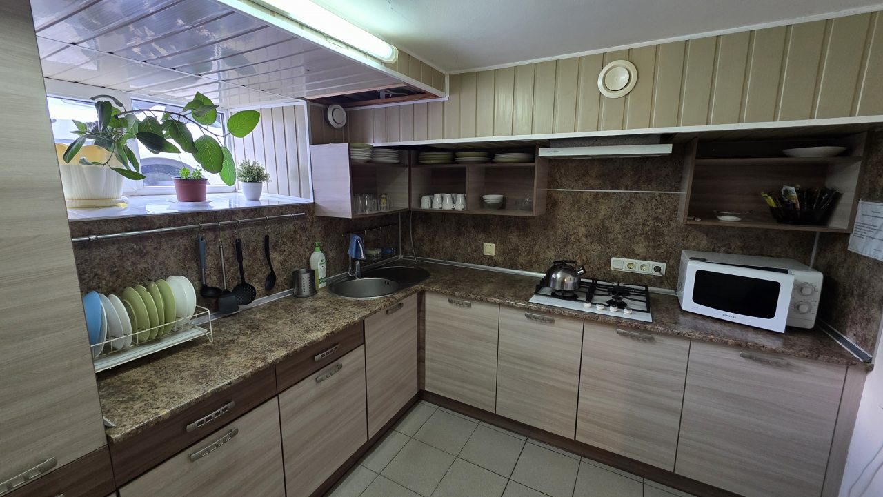 Общая кухня оснащена необходимой техникой, обеденными зонами и телевизором для просмотра любимых передач. В пешей доступности находятся продуктовый магазин и кофейня.