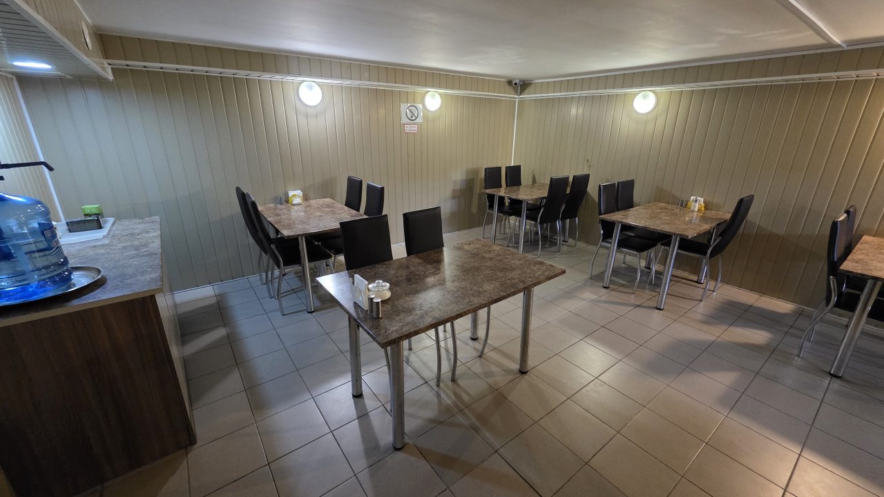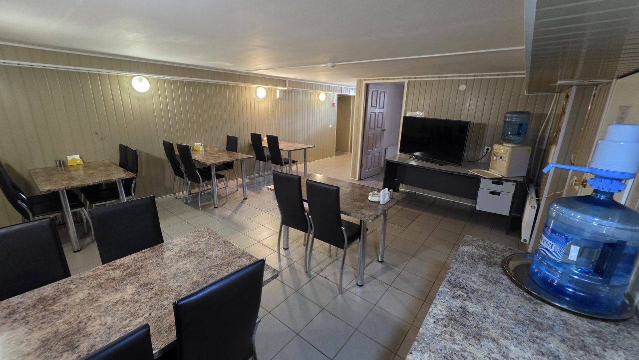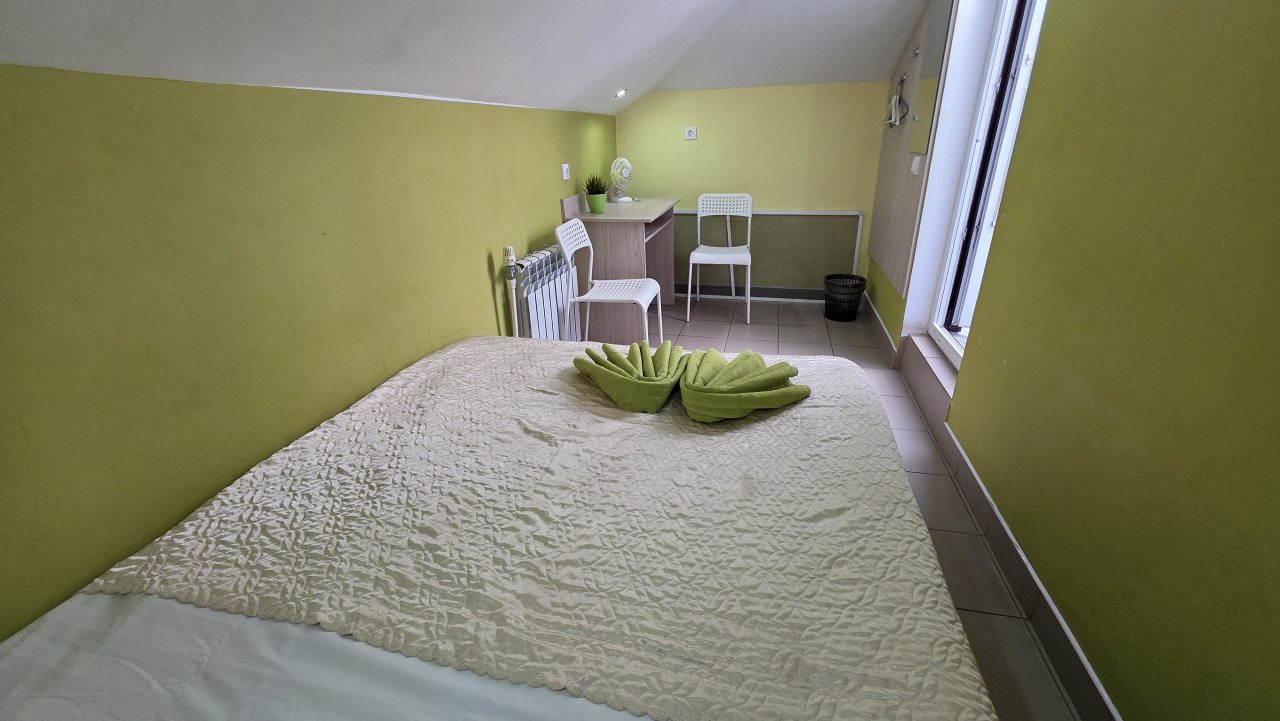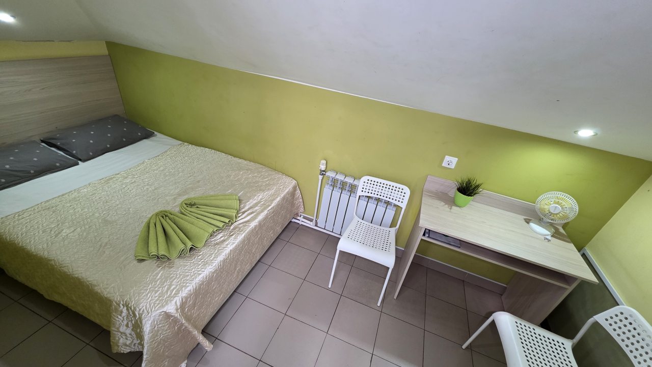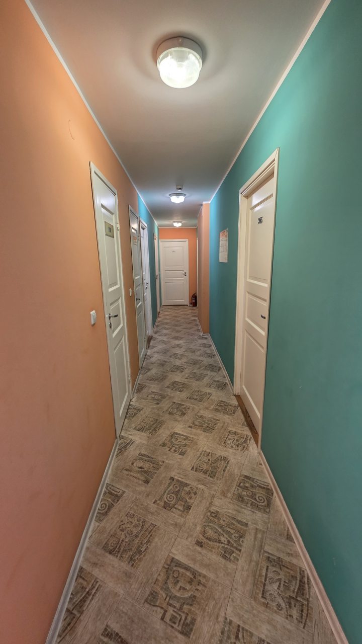 бесконтактное заселение, в номере есть всё необходимое для того, что бы переночевать. На нижнем этаже большая кухня с плитой, микроволновой и всевозможной посудой. Удобства на этаже. Все чисто.