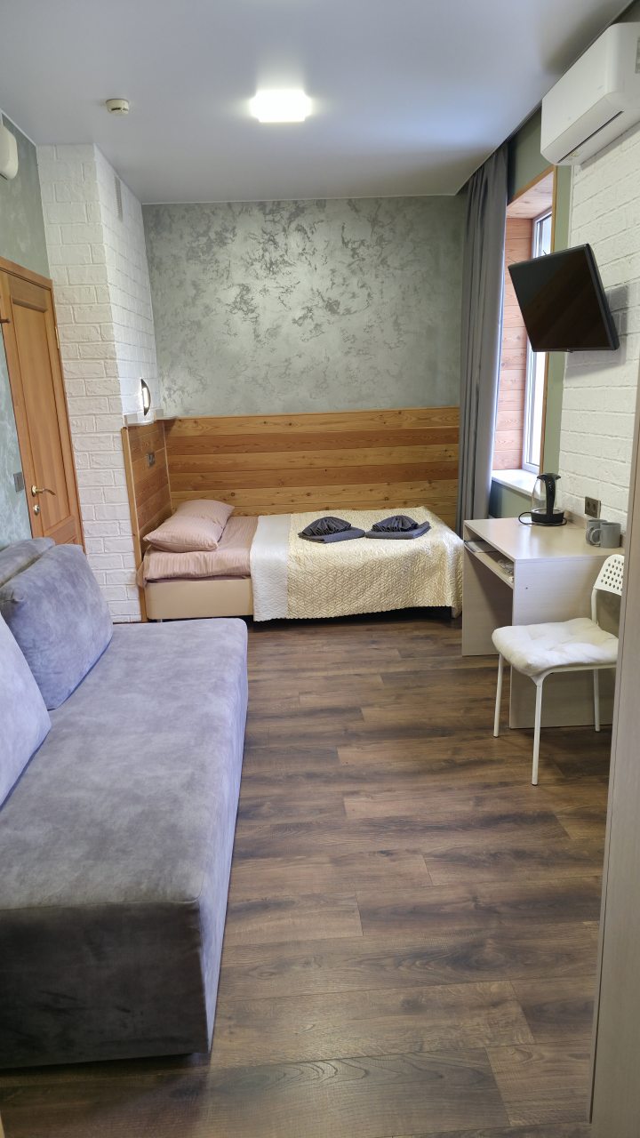 Здравствуйте! Спасибо за отзыв. Рекомендуем в следующий раз забронировать комнату большей площади. В нашем доме есть комнаты разного уровня комфорта с собственным санузлом, а также душевыми и туалетами на этаже. Будем рады видеть Вас снова!