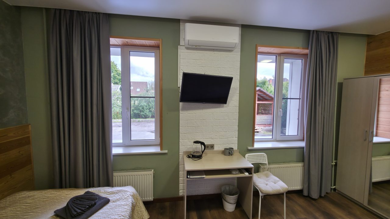 Ночевали в Орловском доме,2-3 ноября 2025 года.Первый раз столкнулись с бесконтактным заселением.Все нормально,администратор утром на ватцап прислал все коды от дверей,код для стоянки автомобиля,код Wi-Fi. Номер взяли бюджетный,на террасе.Очень маленький и без окна.Но нас это особенно не напрягло,хотя при бронировании не указано,что номер без окна.Понравилось расположение дома,до Кремля шли пешком минут 15-20.В принципе за такие деньги все устроило.Кому нужны более комфортные и шикарные номера,можно забронировать.Комнаты на любой вкус и кошелек.