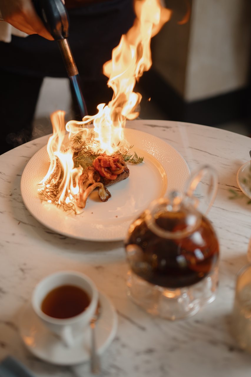 В ресторане гостям предлагается авторское меню в стиле фьюжн и качественное обслуживание.