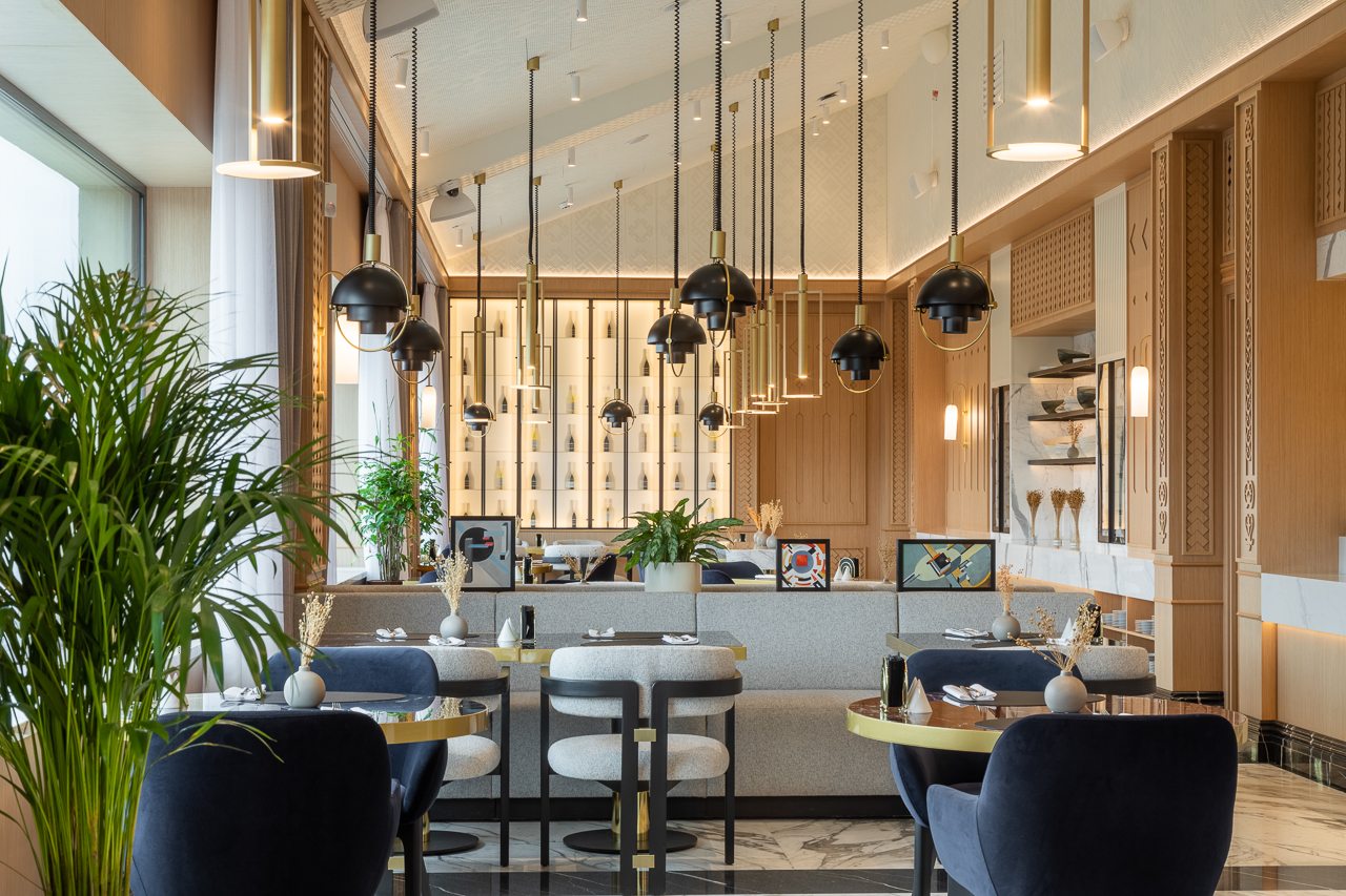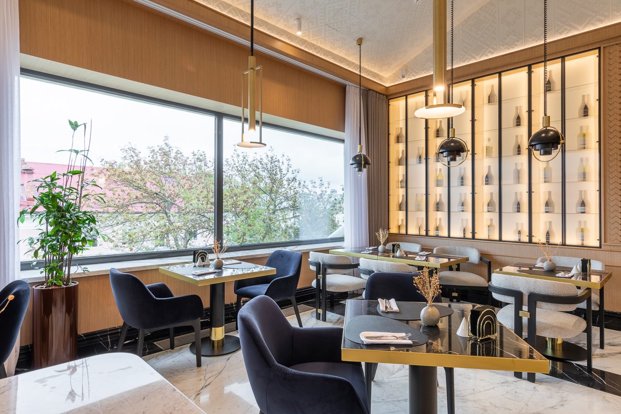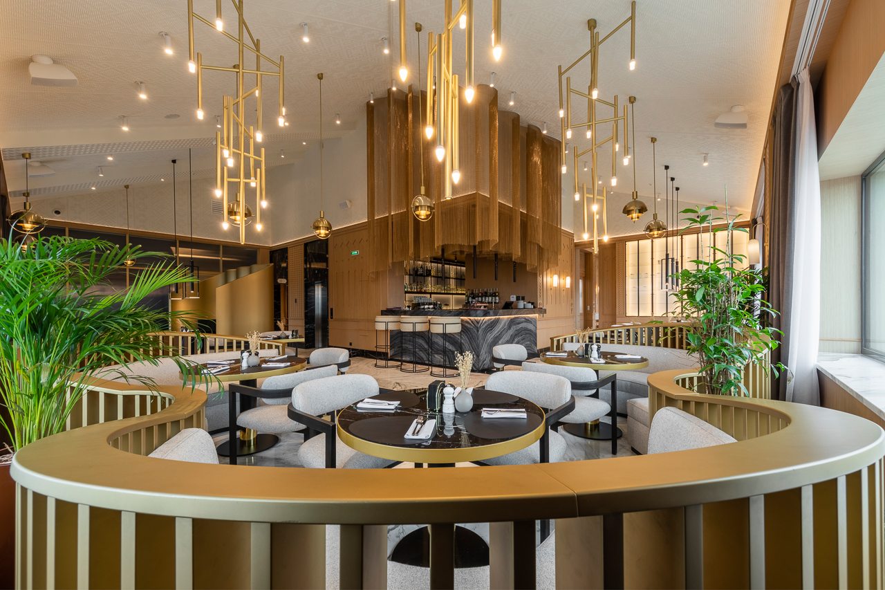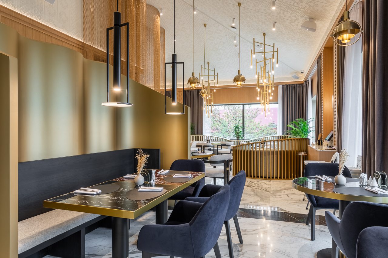 Попробовать изысканные блюда и напитки, а также насладиться панорамным видом на город можно в ресторане «Проун». Также при отеле есть лобби-бар.