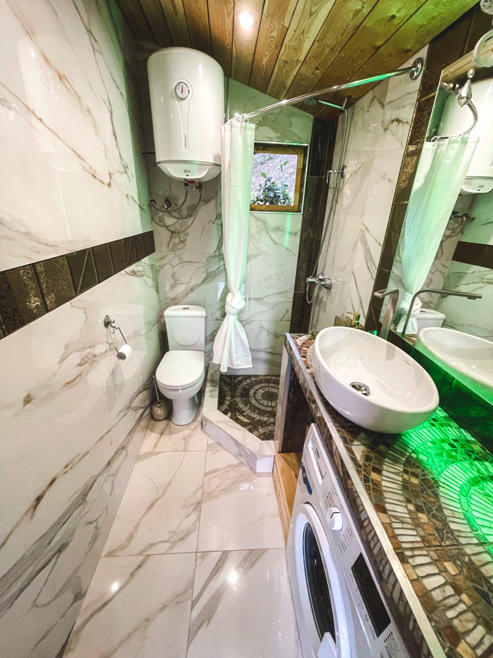 Одно из самых лучших мест для отдыха на природе, где я была. Здесь очень красивая природа и открываются пейзажи, которые тяжело передать словами. Домики классно выполнены и снаружи, и внутри. Интерьер приятный для глаз и в доме приятно находиться. Рекомендую!