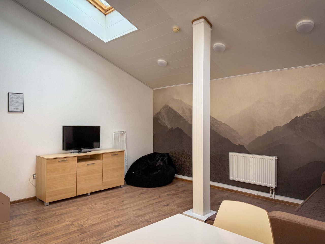 Чистый номер, есть возможность приготовить что то самим- для этого Эл плитка, микроволновка, есть холодильник, элчайник. Окна выходят в тихий дворик, от центра буквально в двух шагах.
